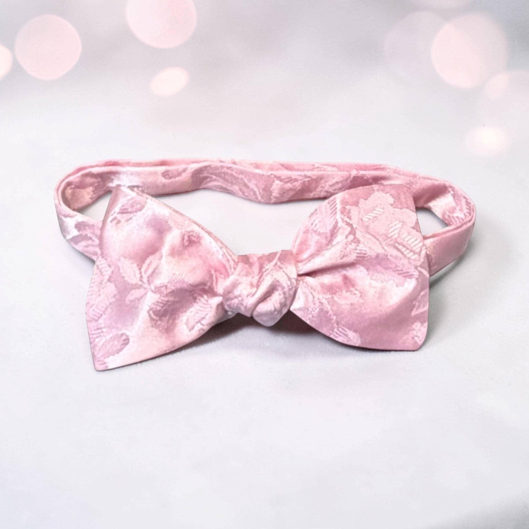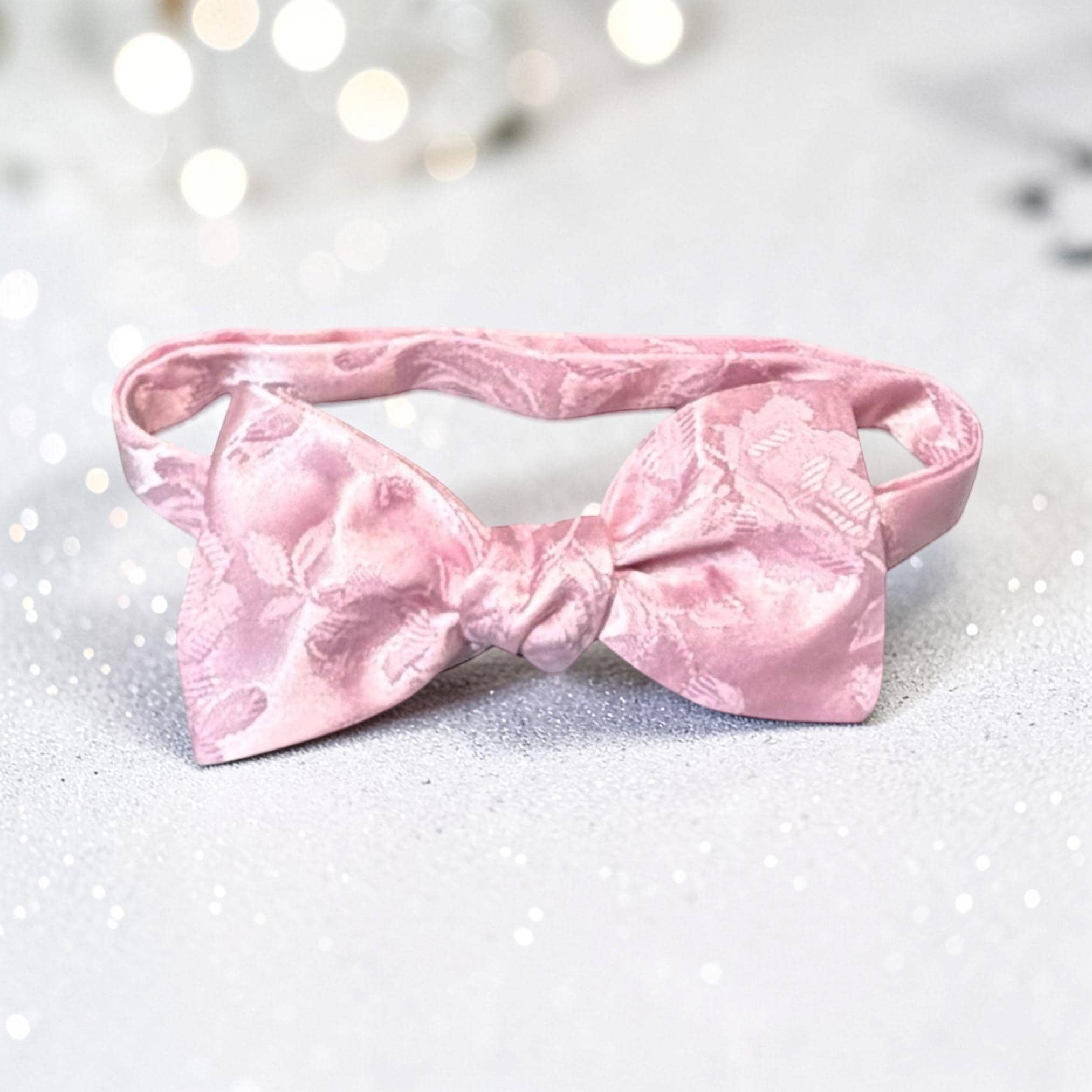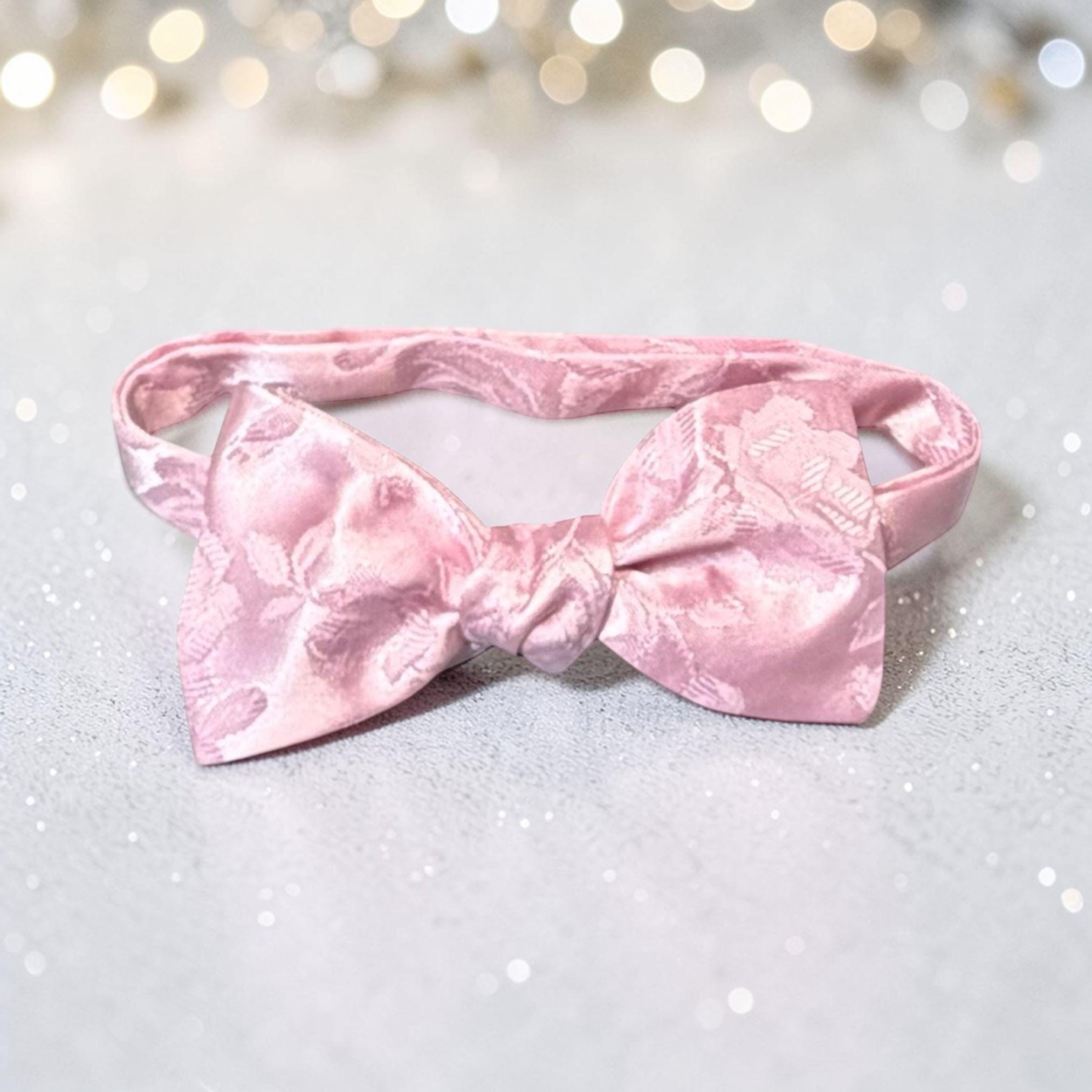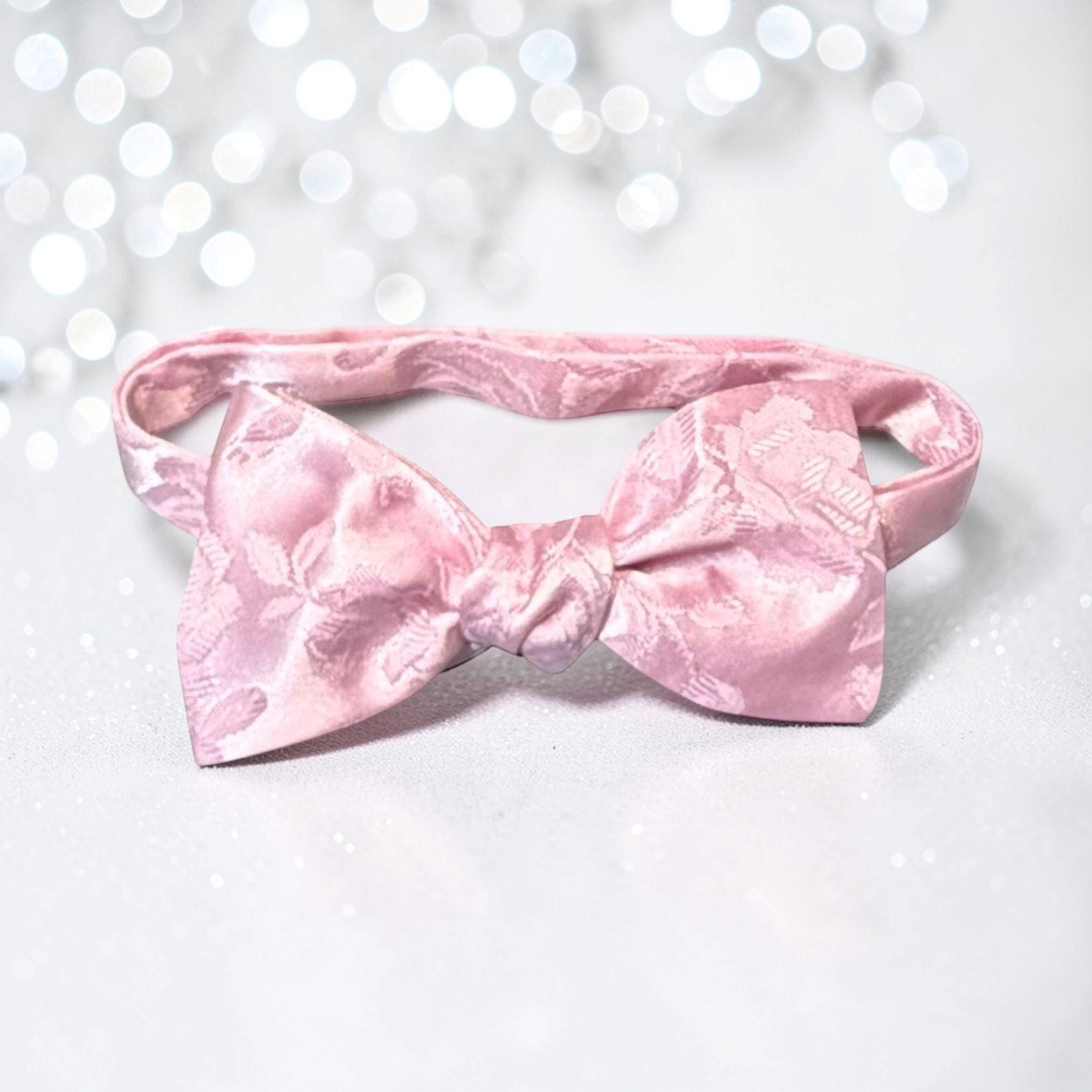 Wedding Self-Tie or Pretied - Pink Rose Satin Jacquard - Adult Men's Sizing - Wedding Elegance and Prom Style - Handcrafted in the USA by Holiday Bow Ties, llc - The "Lee" Bow Tie