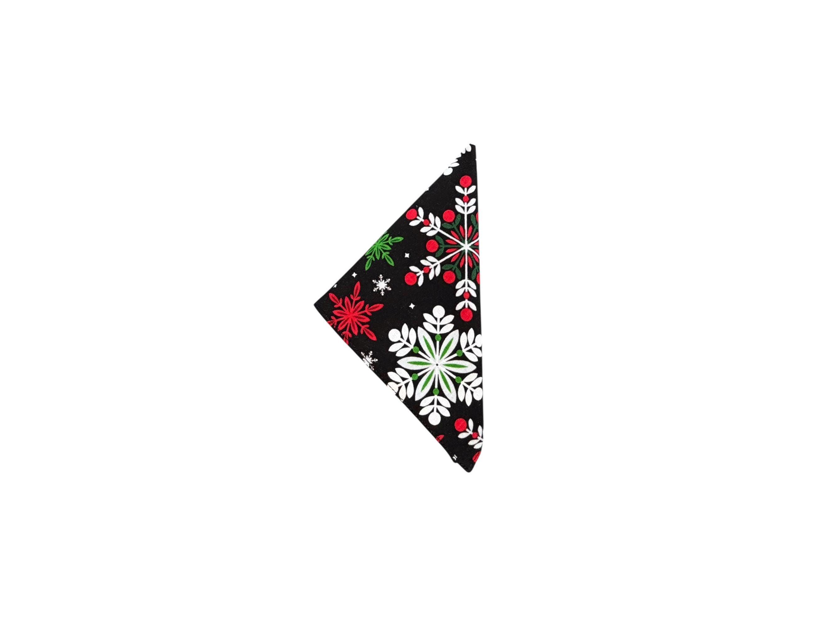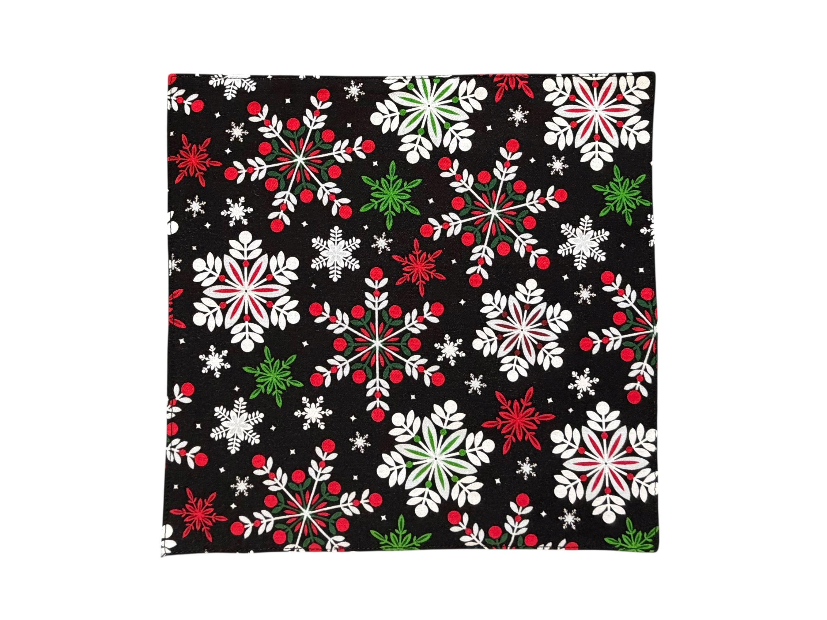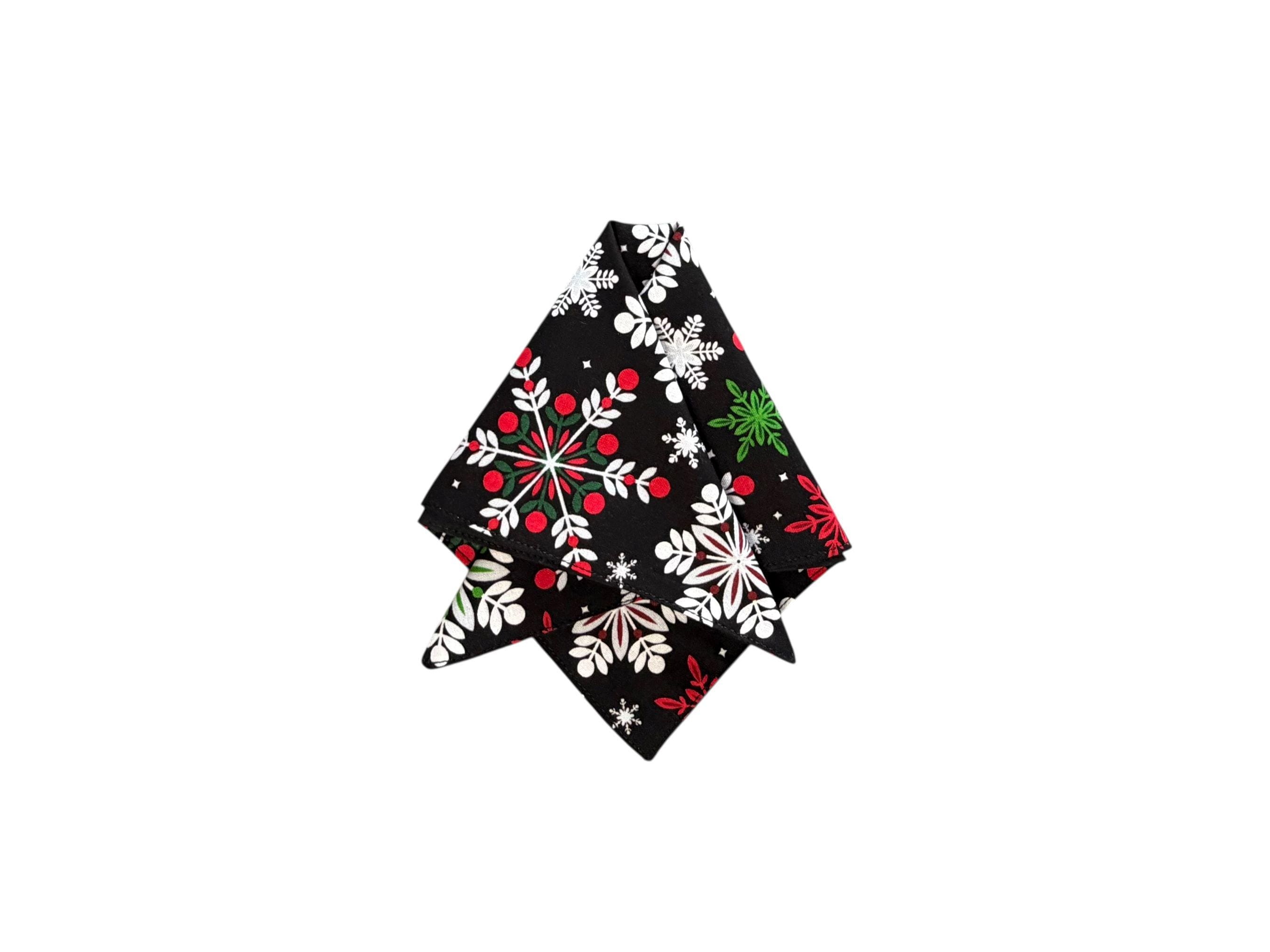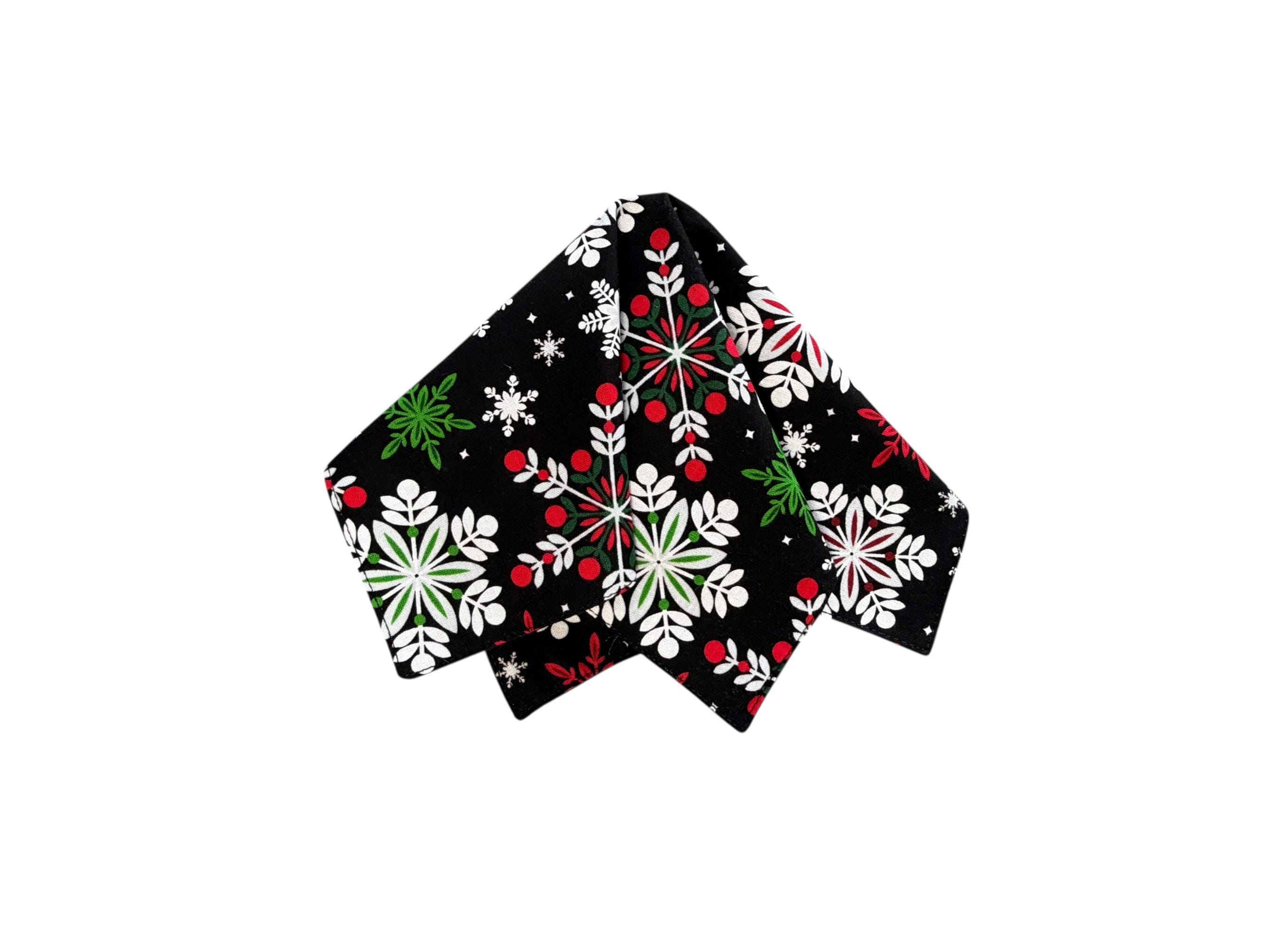 Holiday Pocket Square - Black, Red, White, Grey & Green Snowflakes - Cotton Handkerchief - Adult Men's Sizing - Handcrafted in the USA by Holiday Bow Ties, llc - The "Cole"