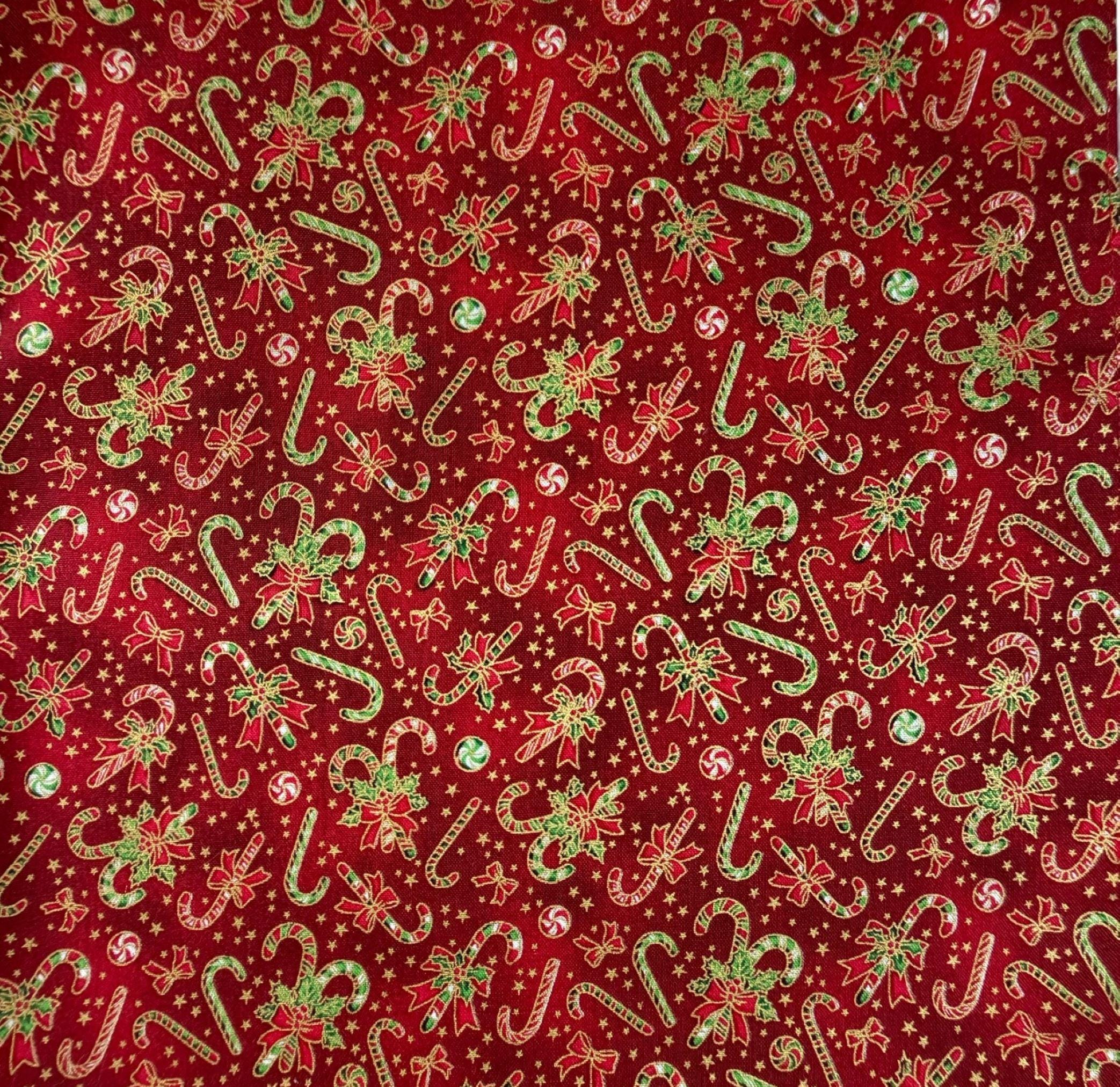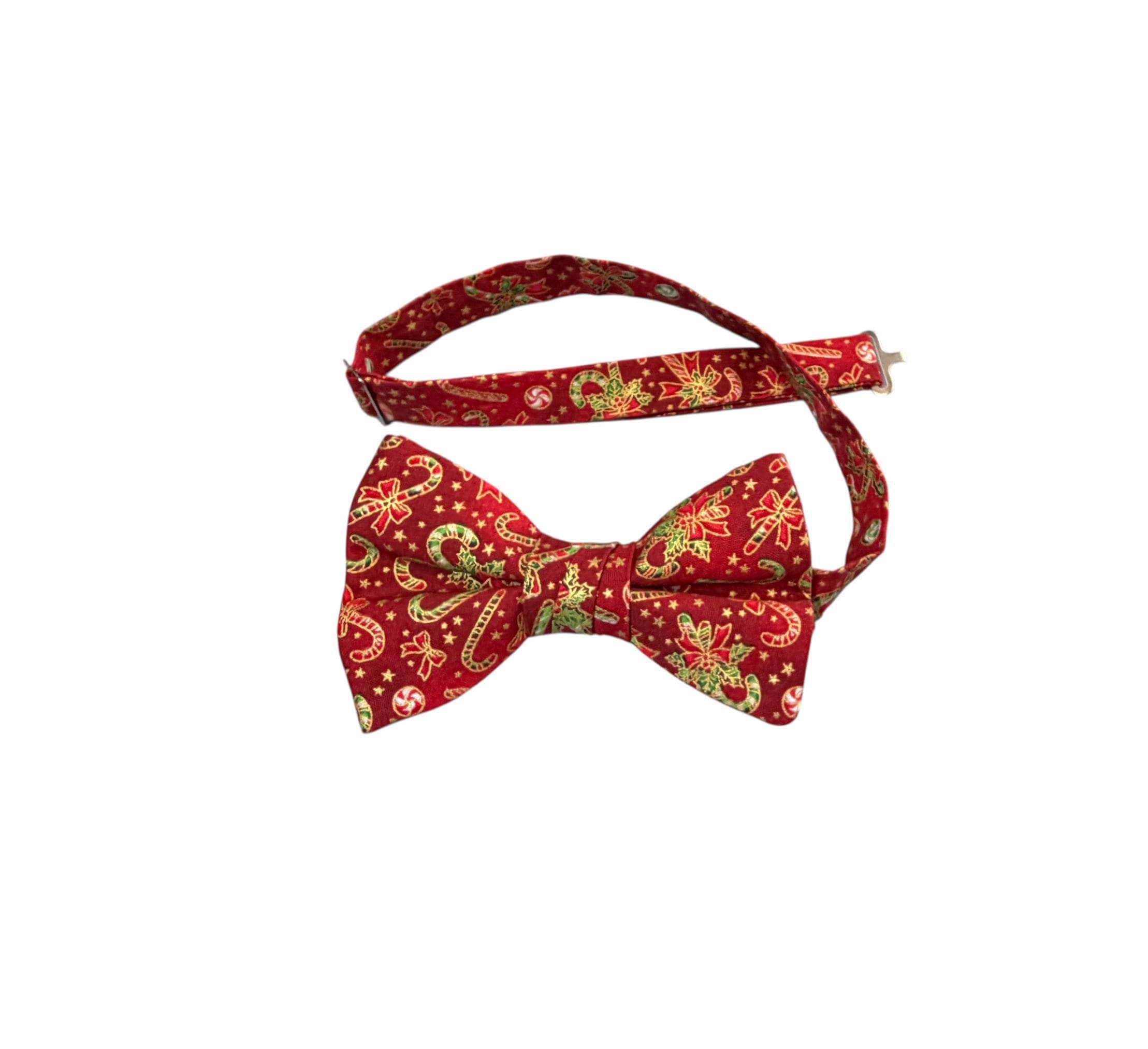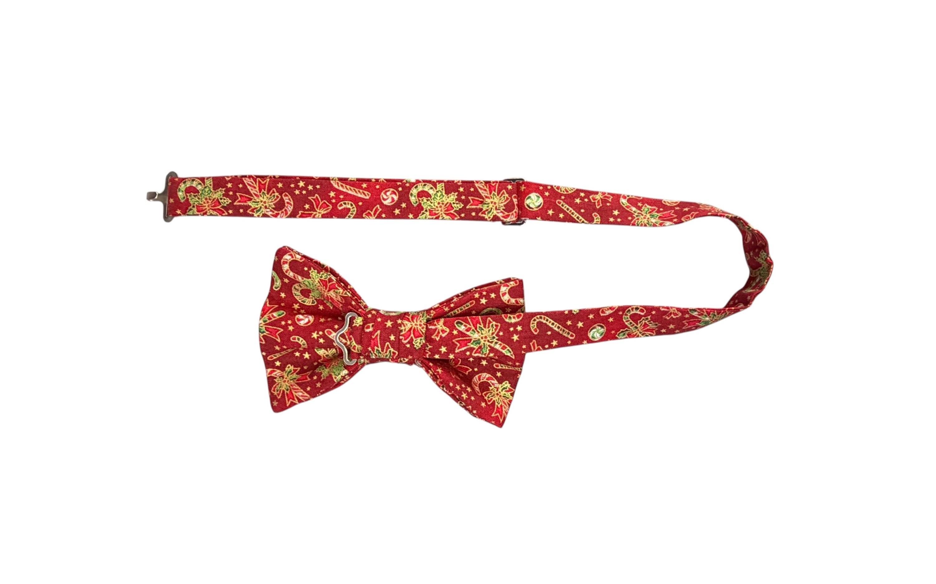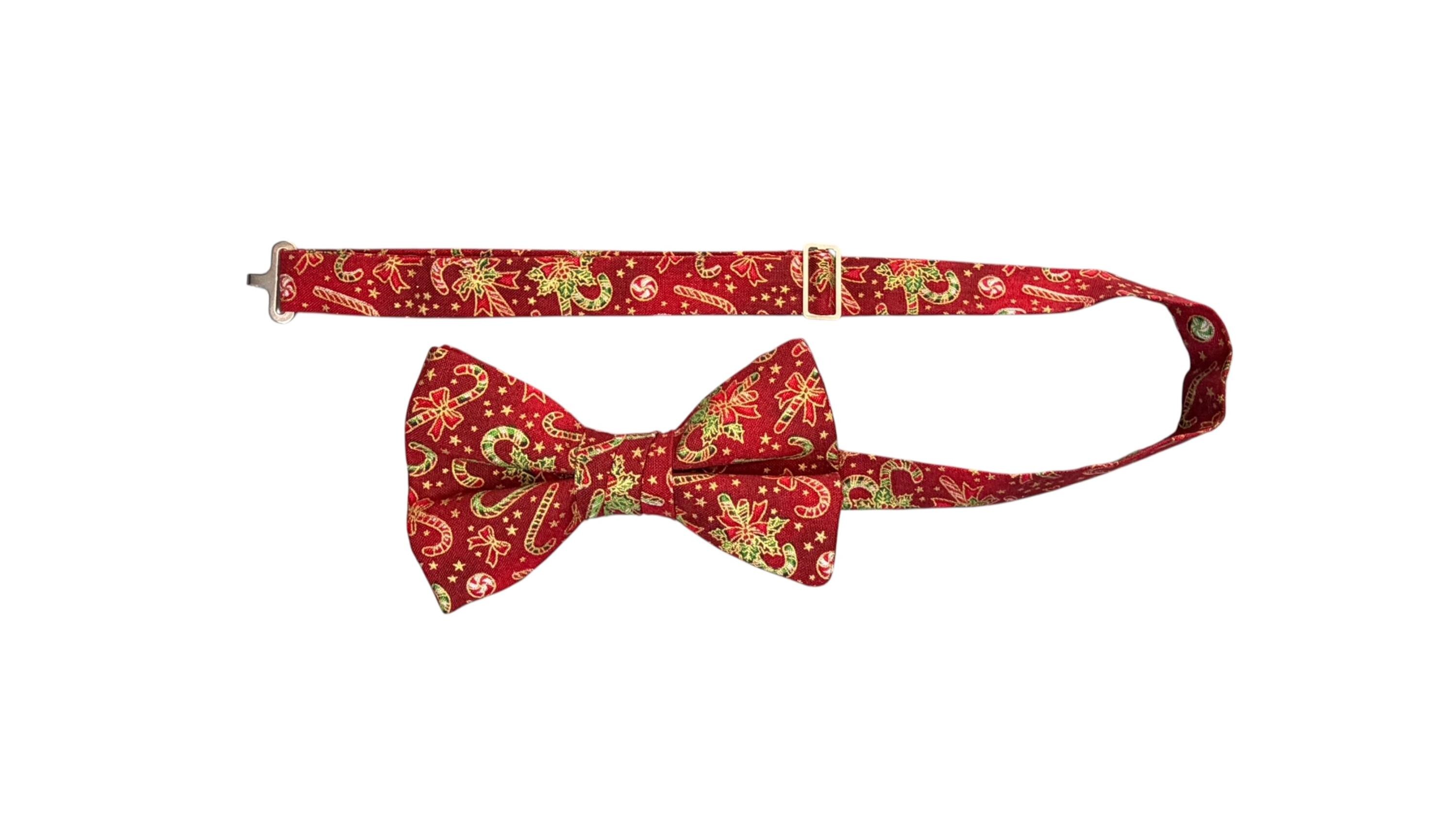 Candy Cane Handmade Pre-tied Bow Tie - Christmas Red and Green Accented with Gold Metallic - Premium Cotton - Adult Men's Sizing - Crafted in the USA by Holiday Bow Ties, LLC - The "Emmanuel"