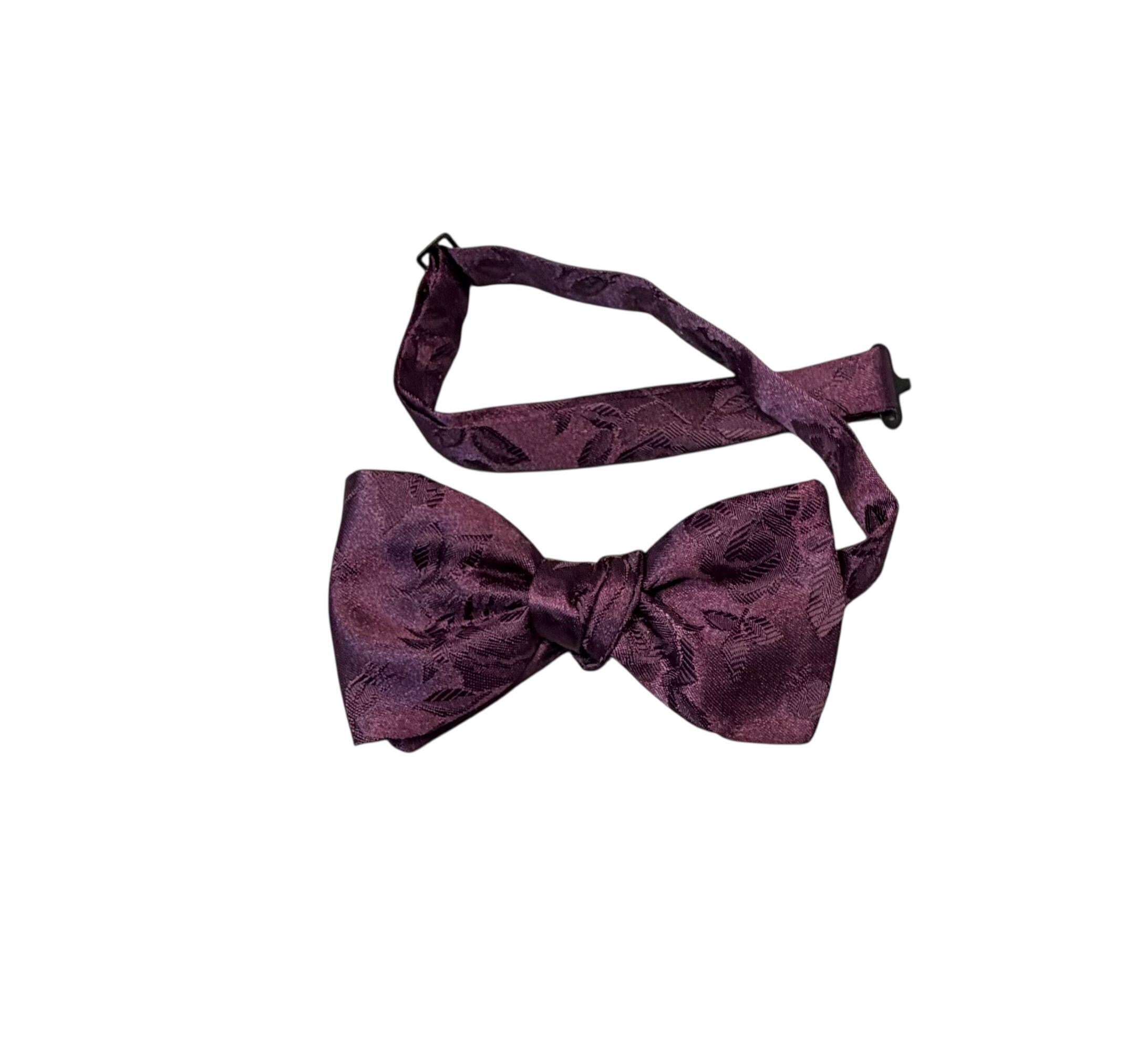 Handmade Pre-tied Bow Tie - Berry Rose Satin Jacquard - Adult Men's Sizing - Crafted in the USA by Holiday Bow Ties, llc - The "Lee" Bow Tie