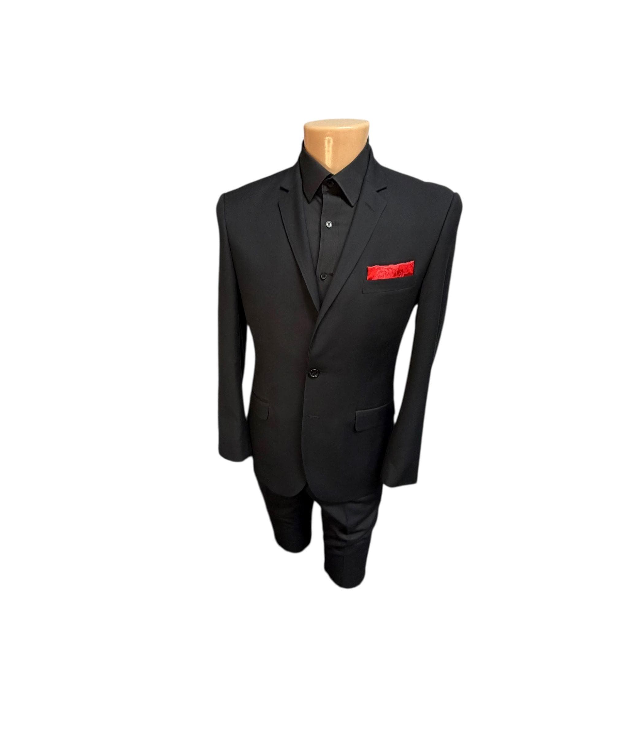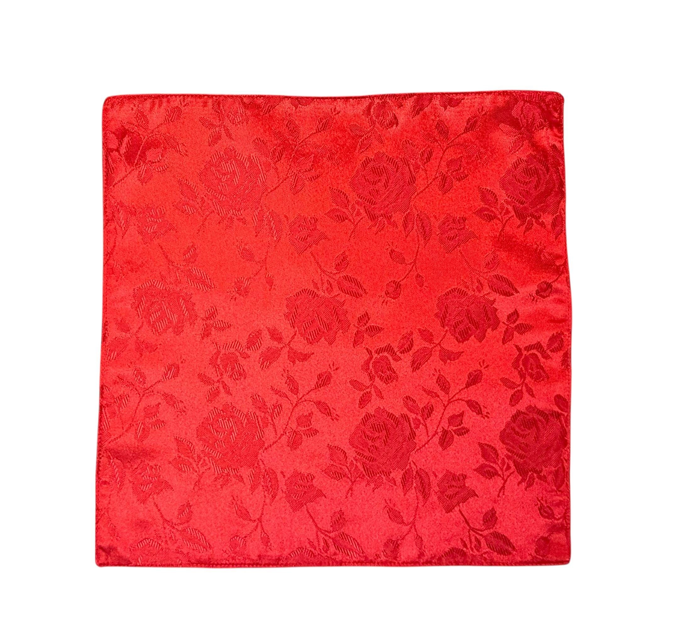Pocket Square - Red Rose Satin Brocade Wedding Handkerchief - Adult Men's Sizing - Handcrafted in the USA by Holiday Bow Ties, llc - The "Lee"