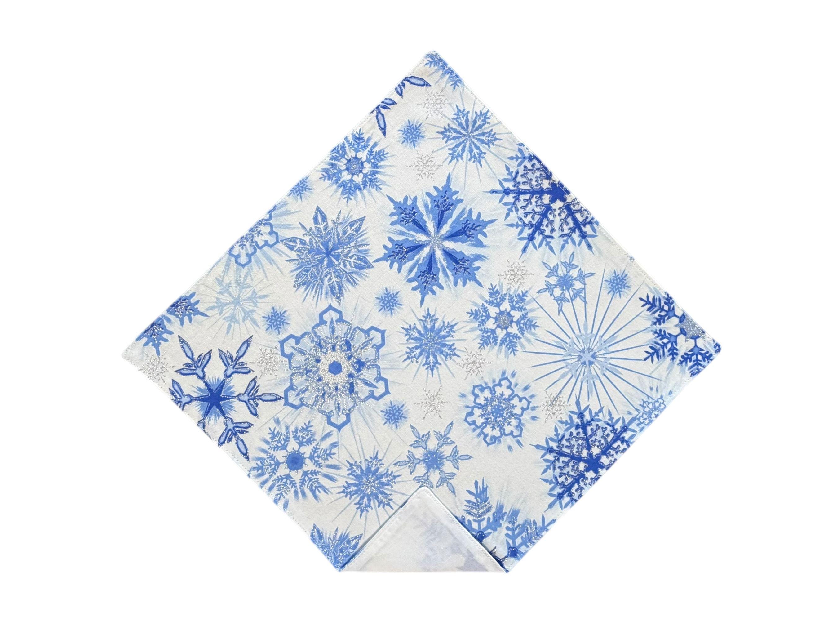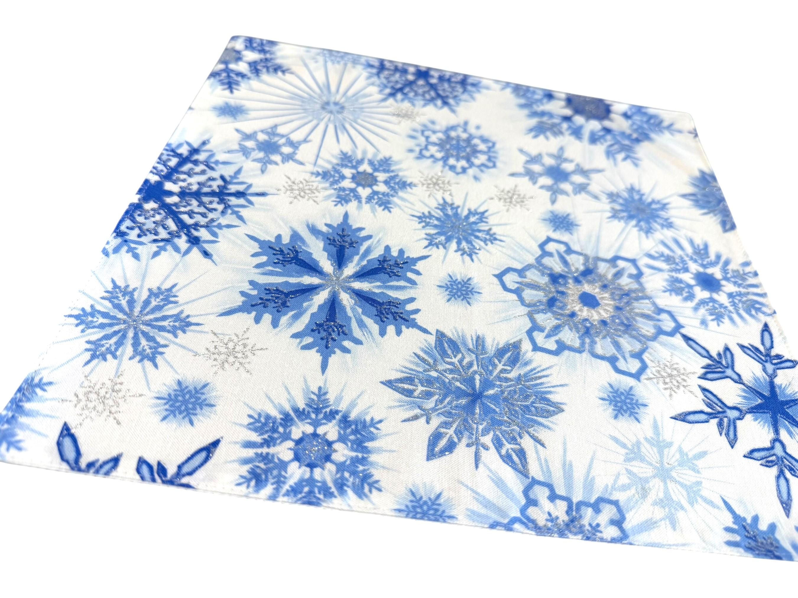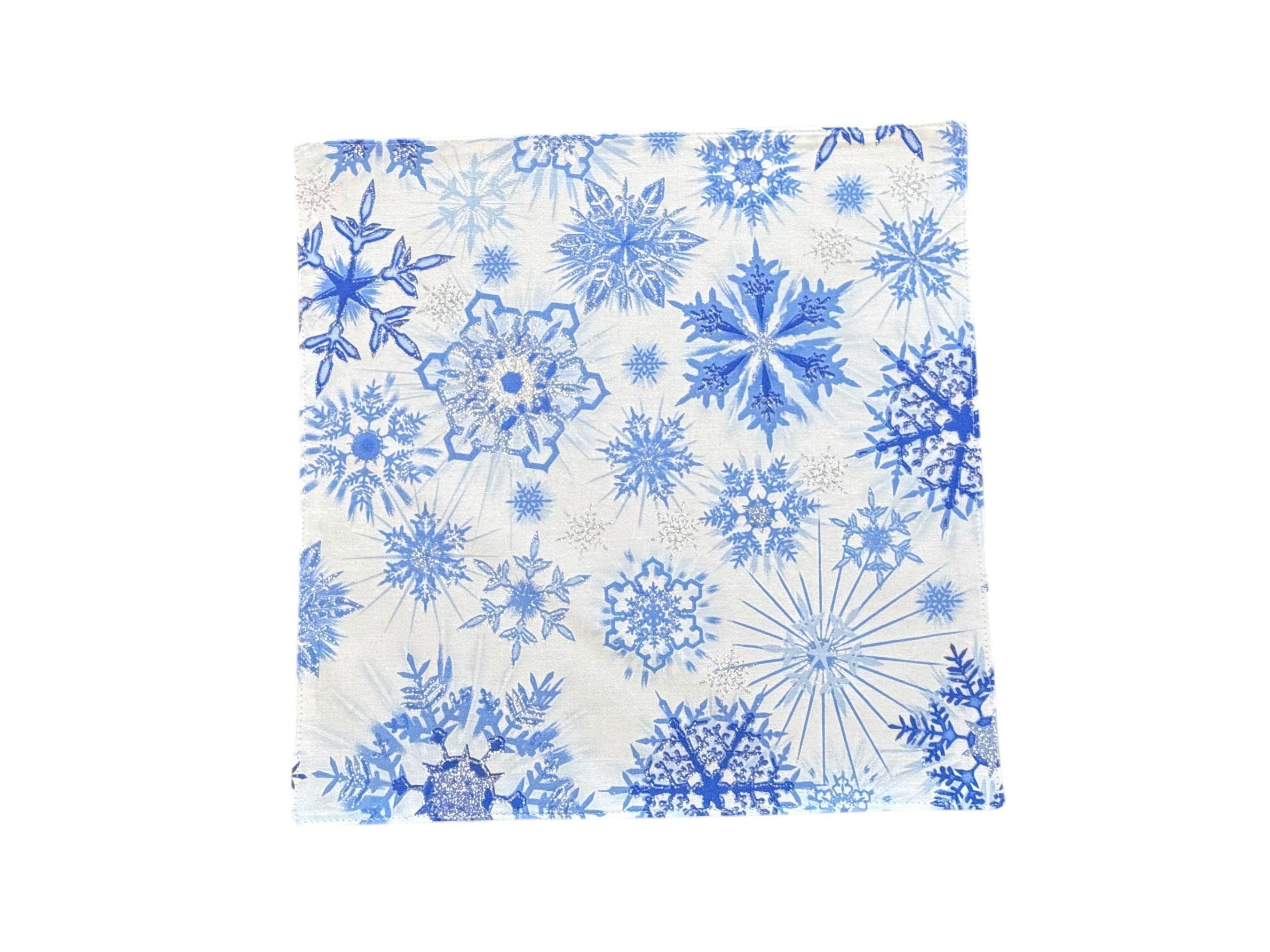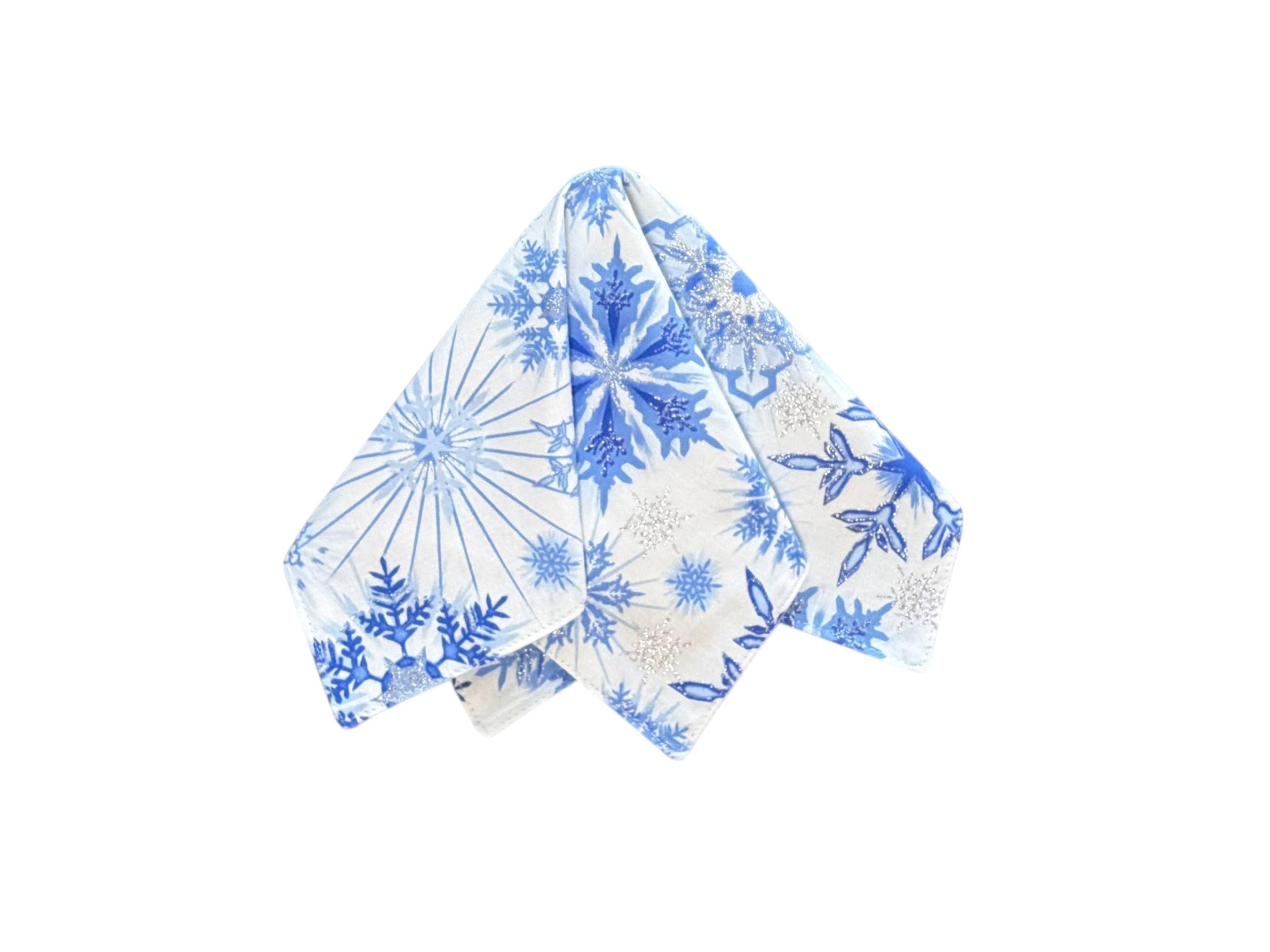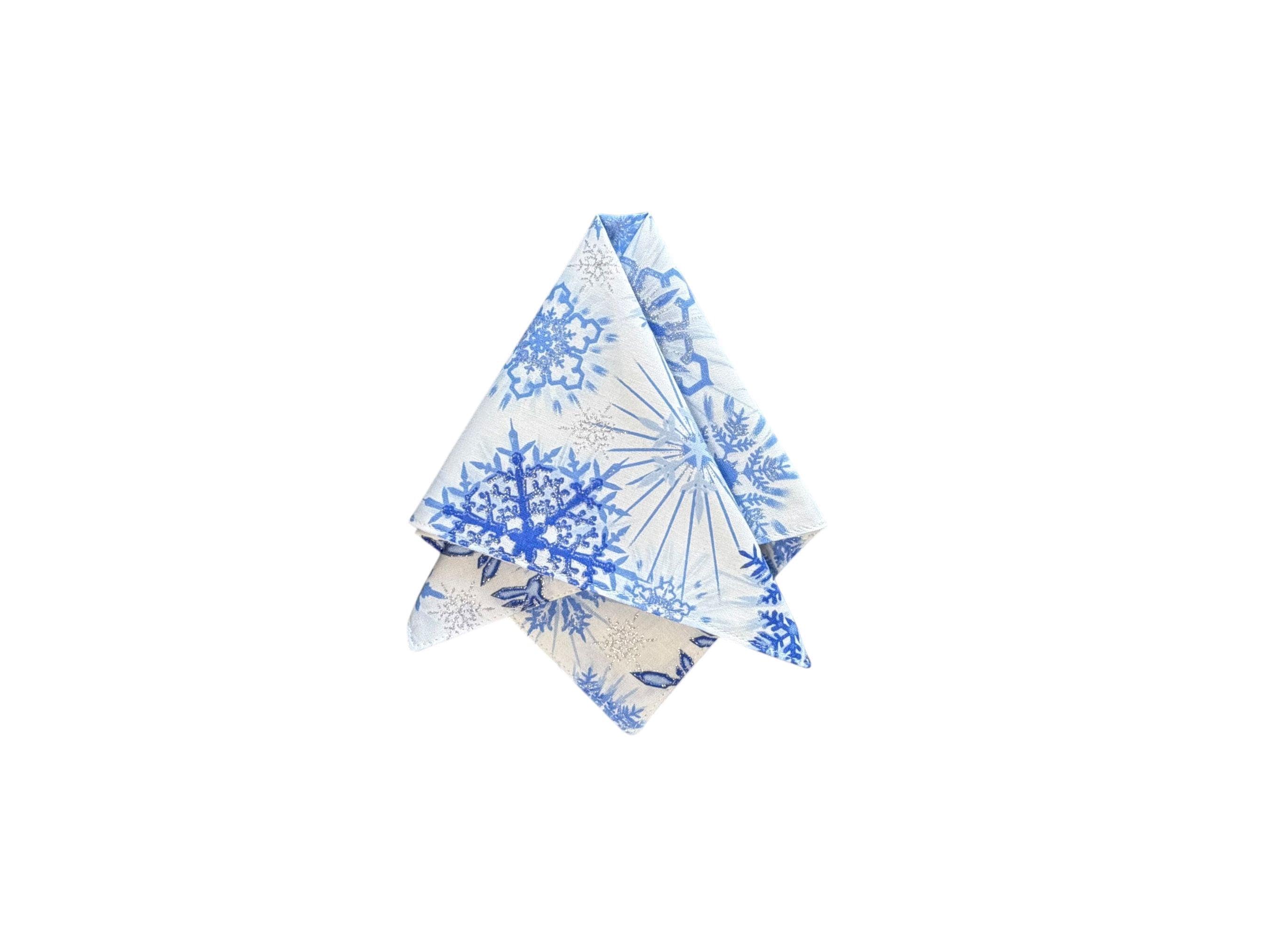 Holiday Pocket Square - White with Blue Snowflakes Design Accented with Silver Metallic - Cotton Handkerchief - Adult Men's Sizing - Handcrafted in the USA by Holiday Bow Ties, LLC - The "Aspen"