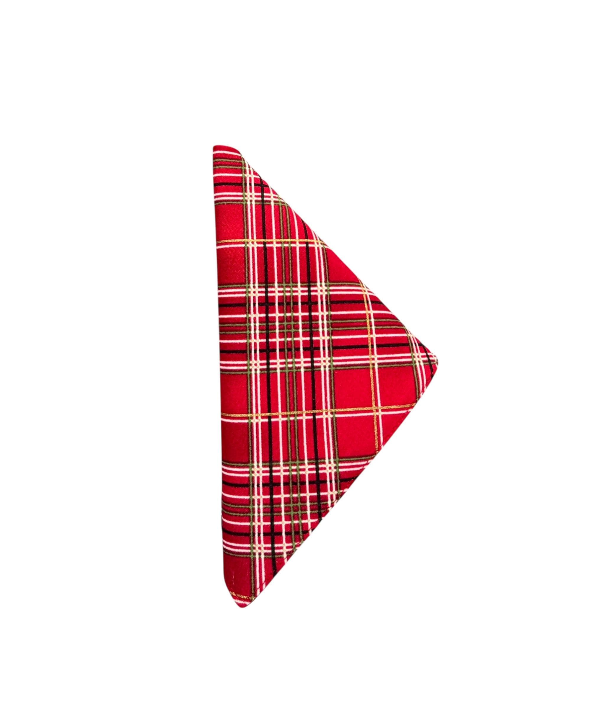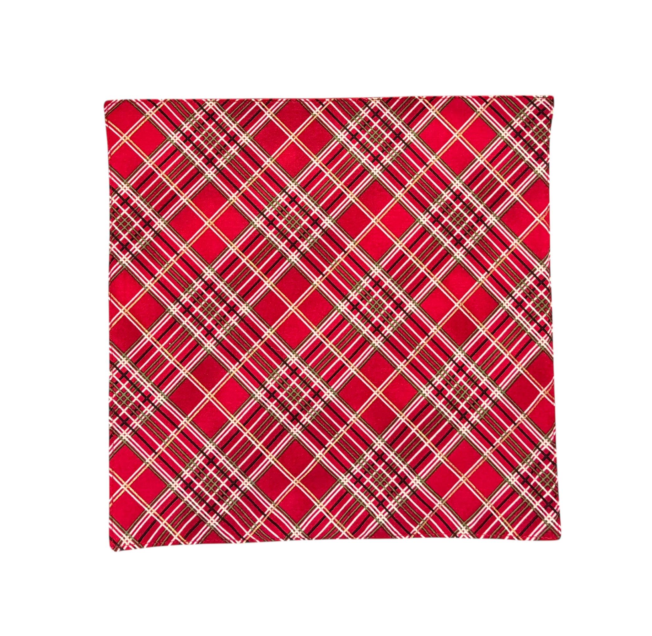 Holiday Pocket Square - Christmas Red Plaid with Gold Metallic Accents - Cotton Handkerchief - Adult Men's Sizing - Handcrafted in the USA by Holiday Bow Ties, llc - The "Pearce"