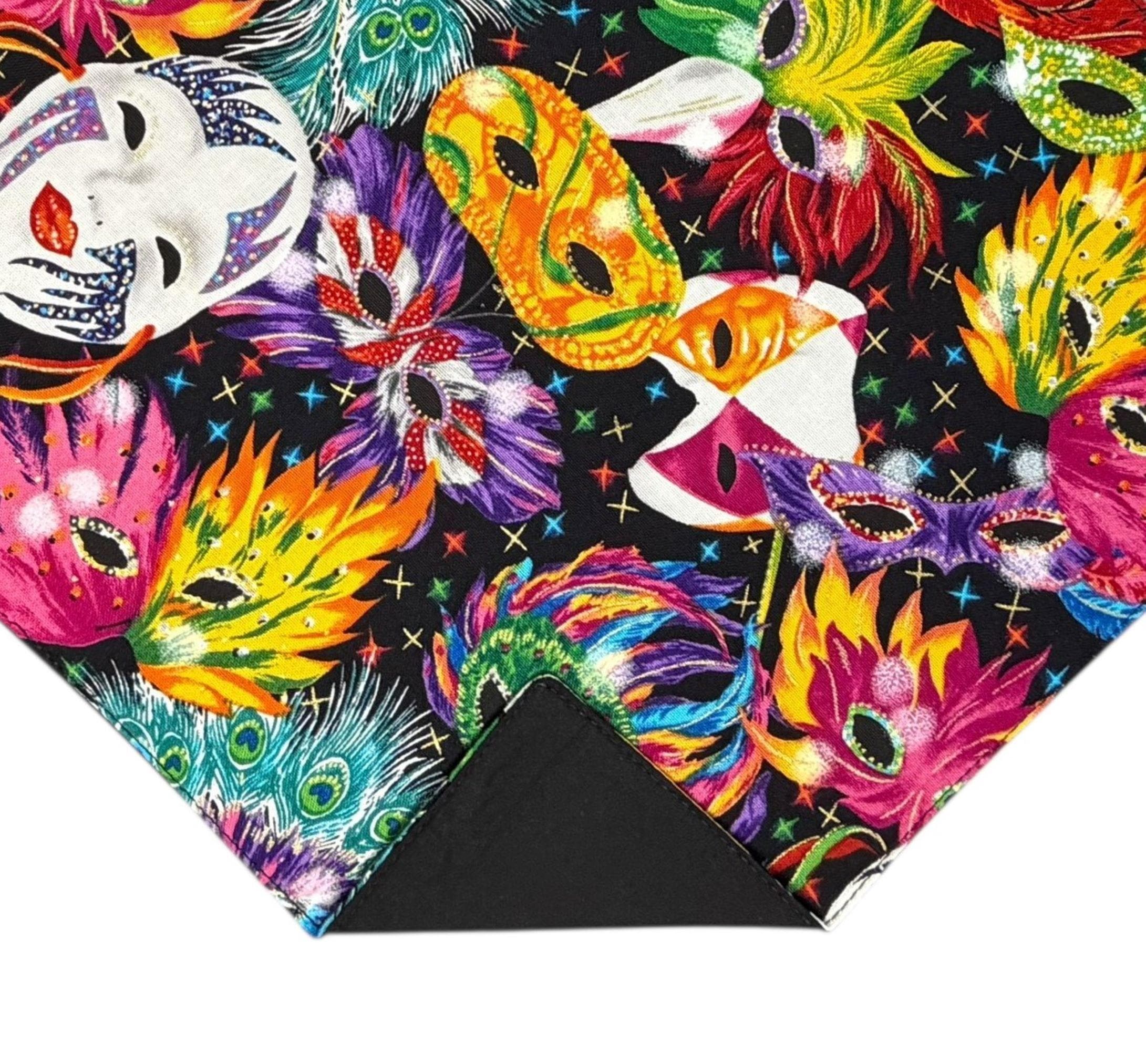 Mardi Gras Pocket Square - Multi Colored Masquerade Mask Celebration Cotton Handkerchief - Mens Sizing - Crafted in the USA by Holiday Bow Ties, llc - The "Felix"