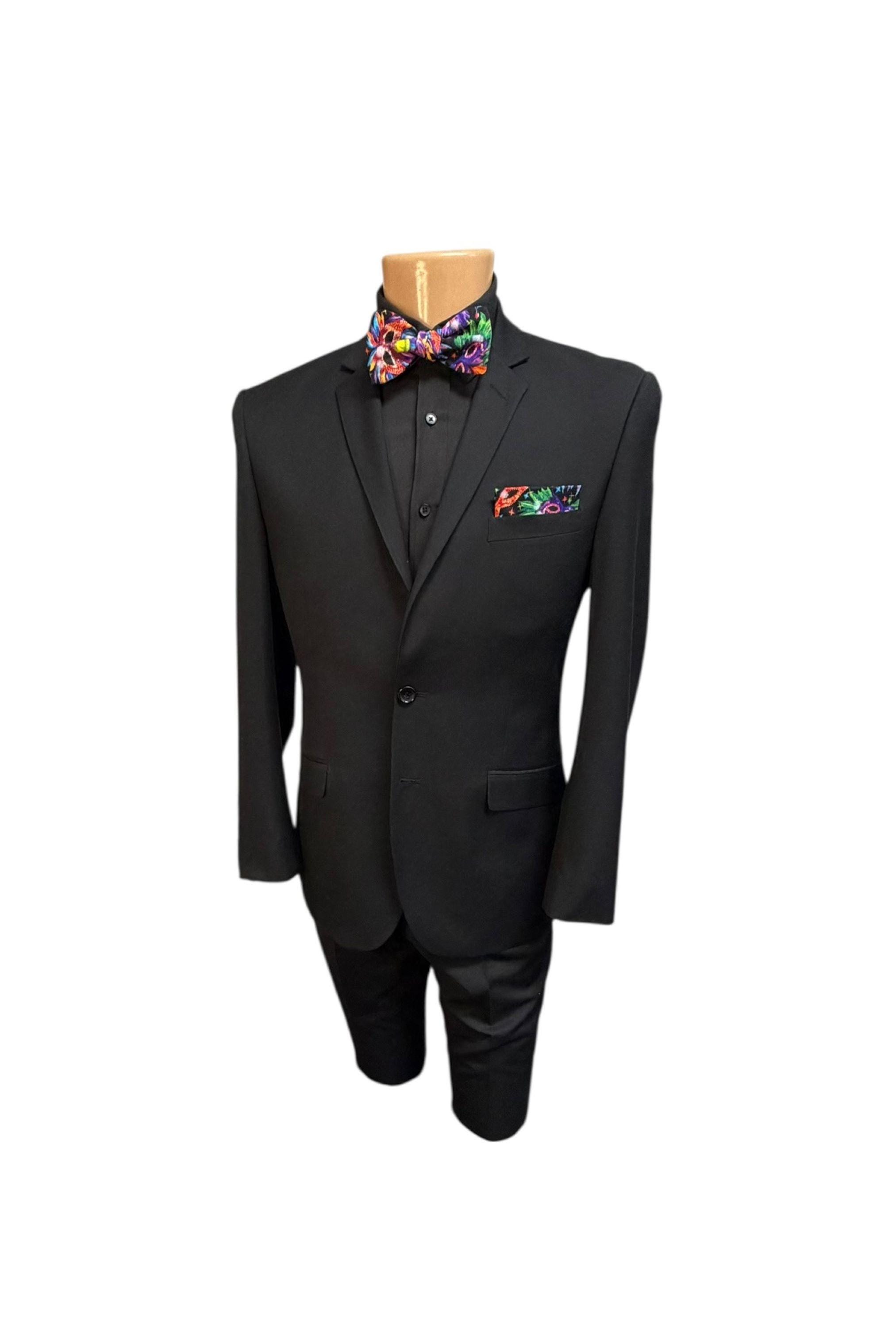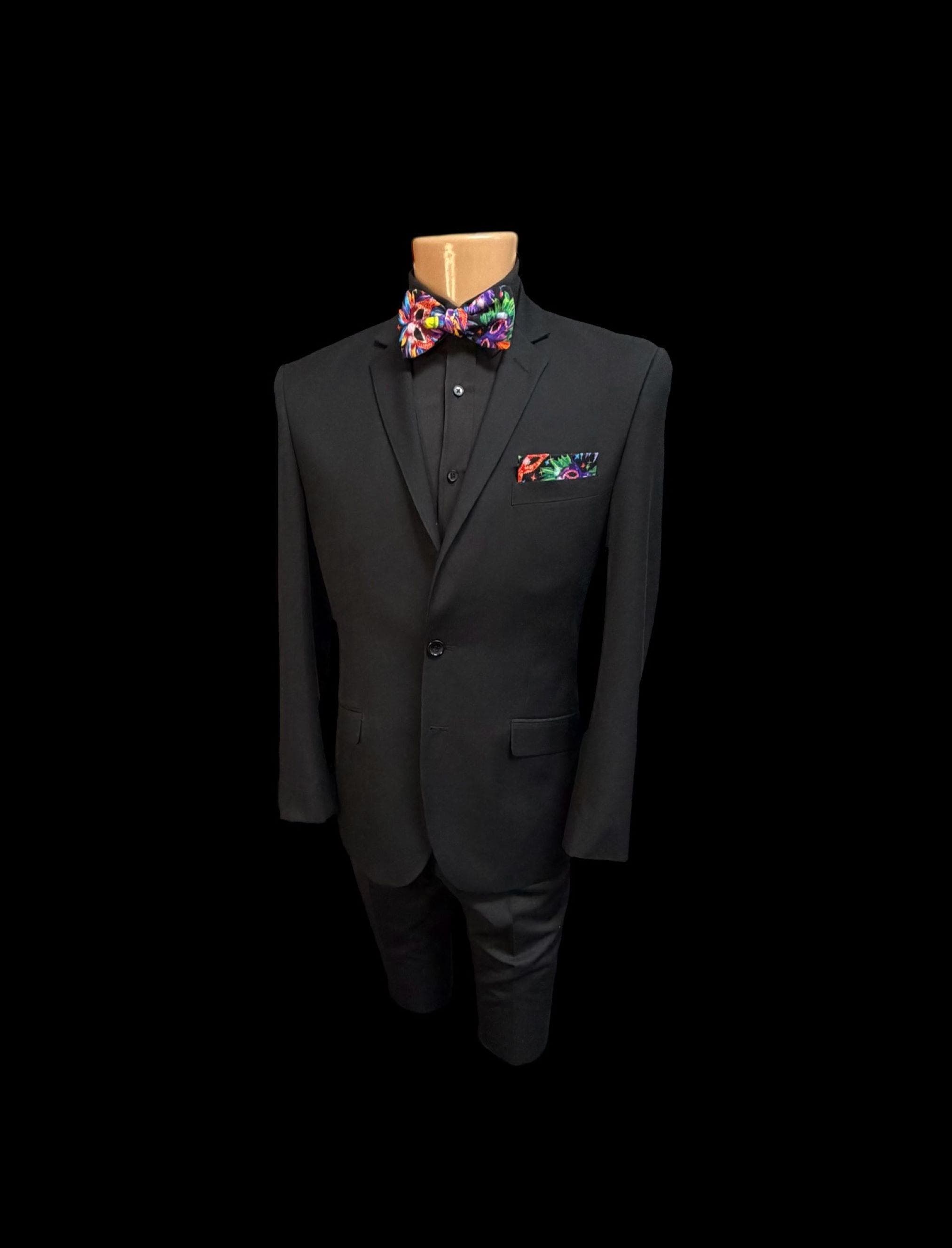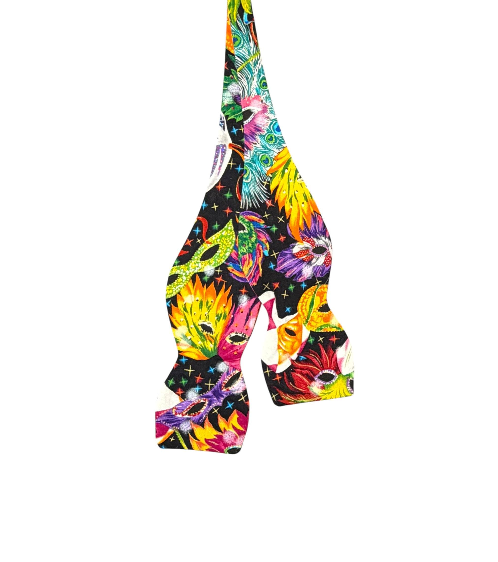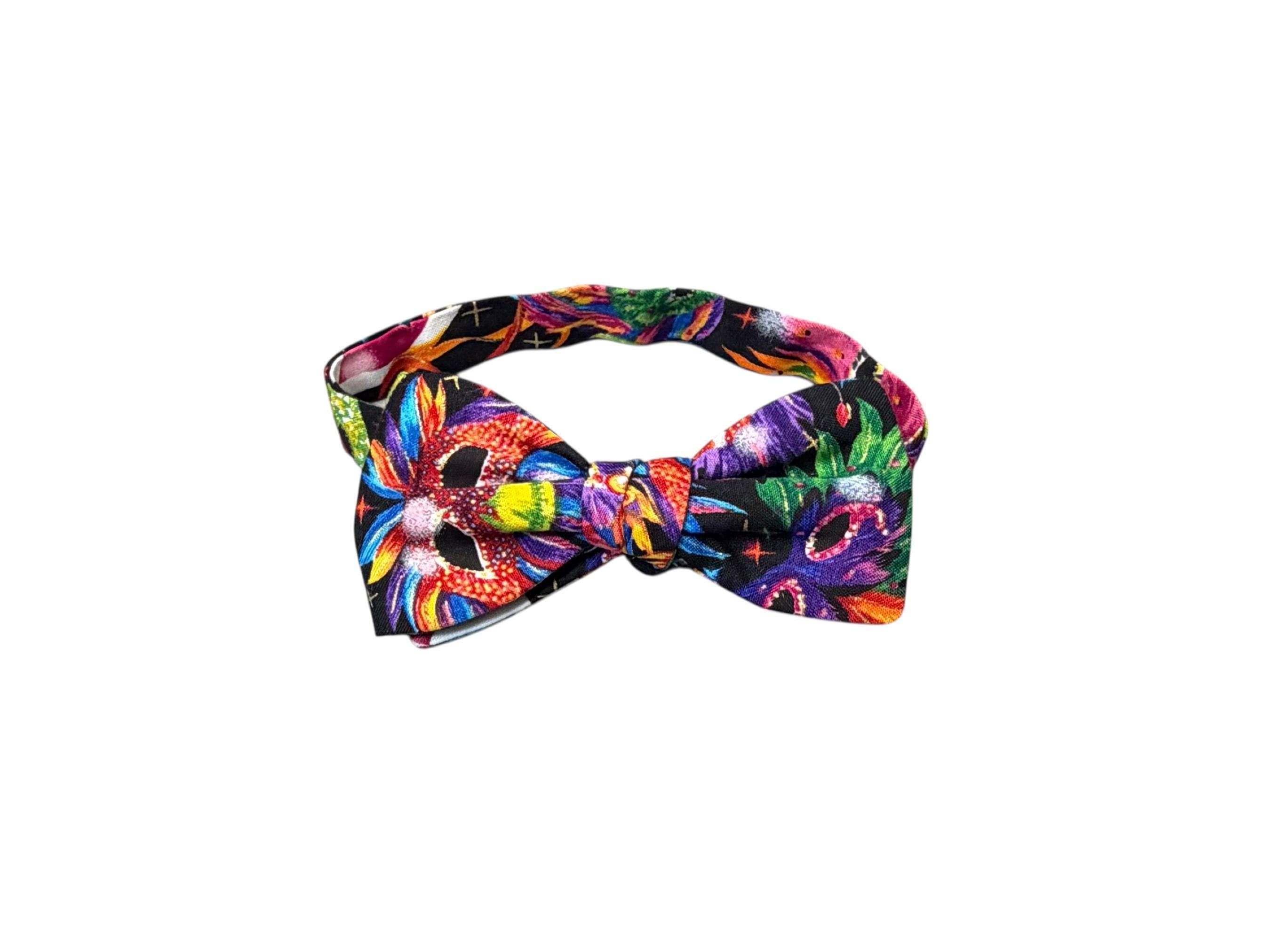Mardi Gras Self-Tie Bow Tie - Multi Colored Masquerade Mask Celebration Cotton Bow Tie - Adult Men's Sizing - Crafted in the USA by Holiday Bow Ties, llc - The "Felix" Bow Tie