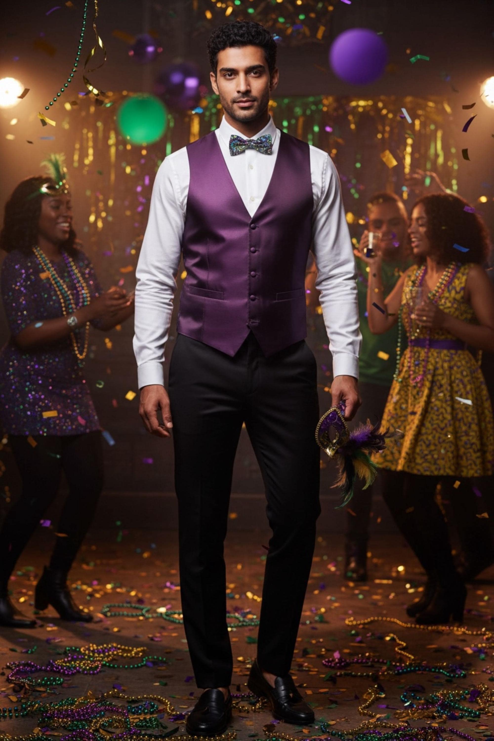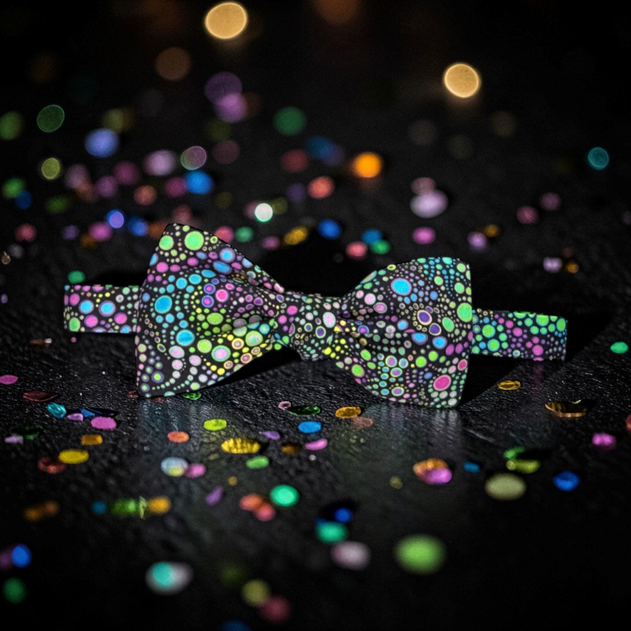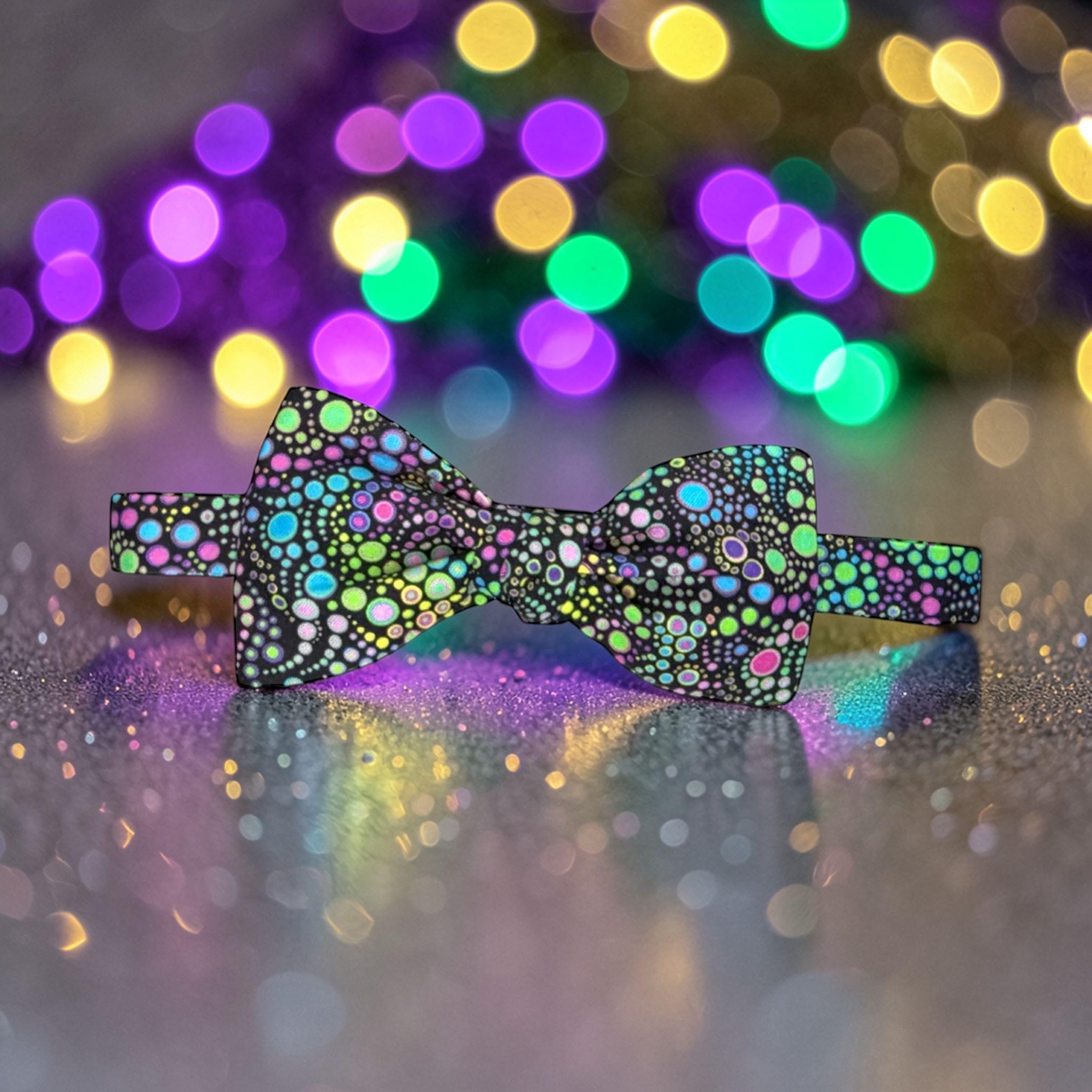 Mardi Gras Bow Tie - Dotted Celebration Design - Pre-tied - Premium Cotton - Adult Men's Sizing - Handcrafted in the USA by Holiday Bow Ties, llc - The "Bayou"