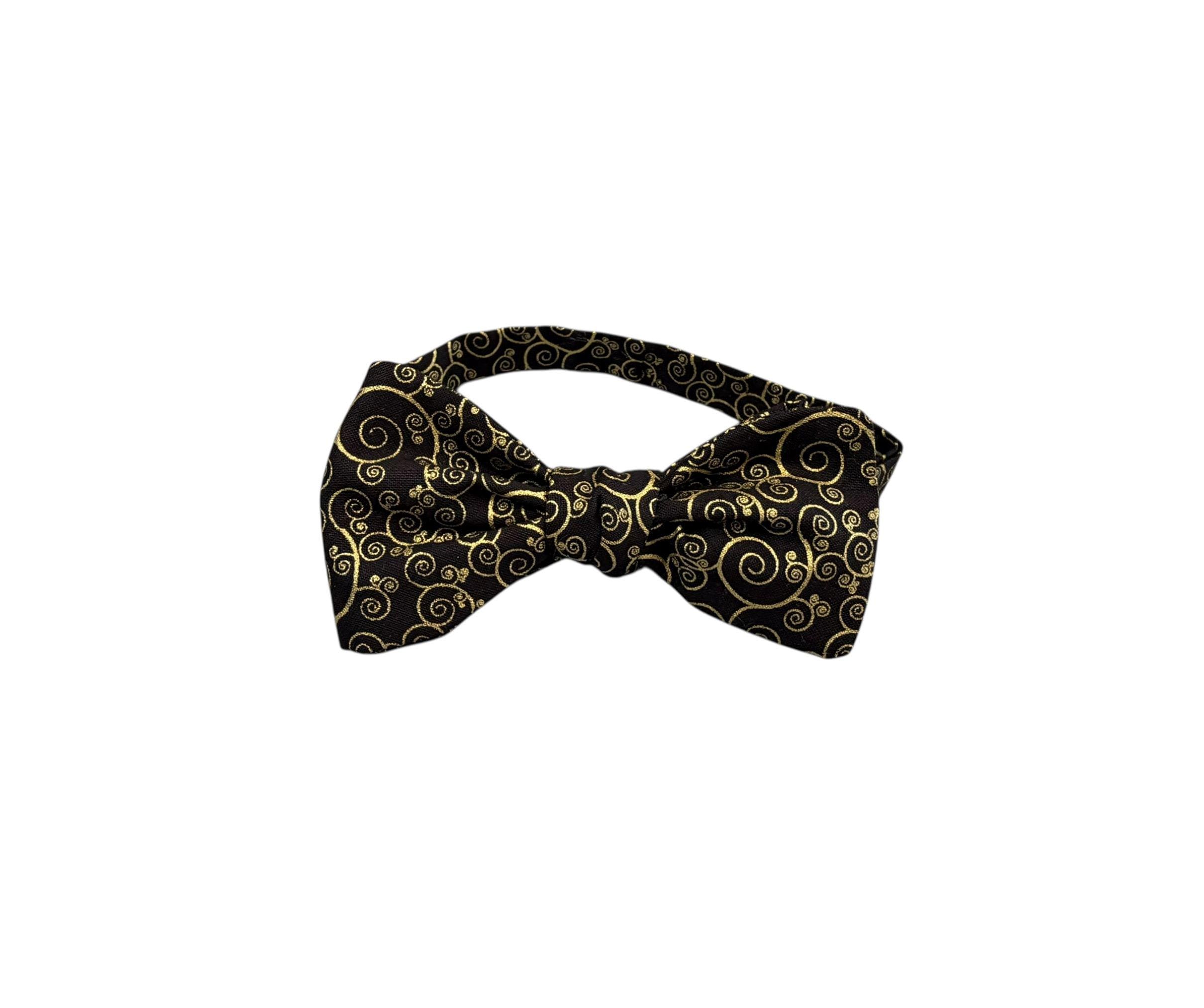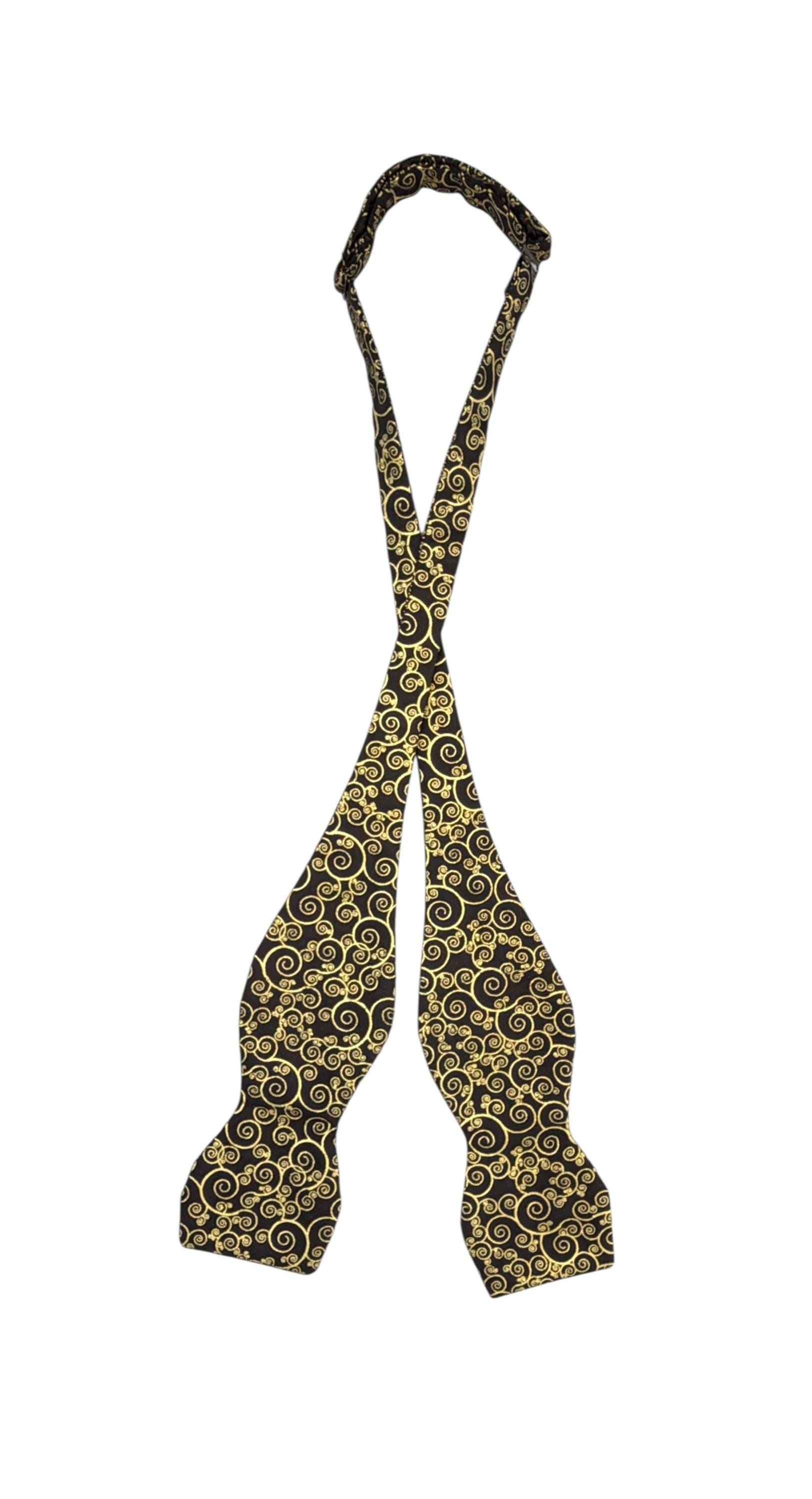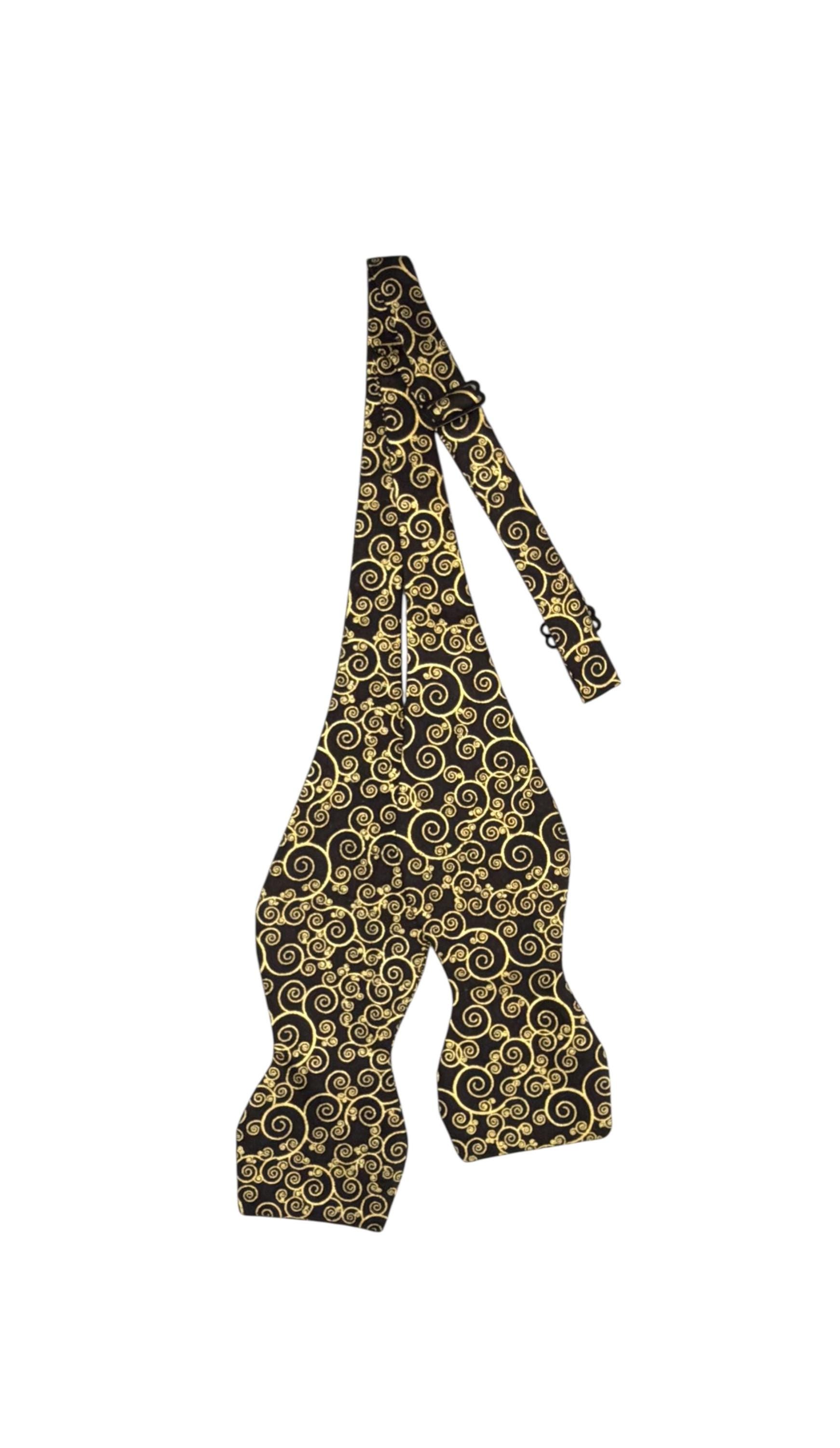 Handmade Self-Tie Bow Tie - Black with Gold Metallic Paisley Swirls Design - Wedding - Prom Night - Premium Cotton Bow Tie - Adult Men's Sizing - Handcrafted in the USA by Holiday Bow Ties, llc - The "Zeb"