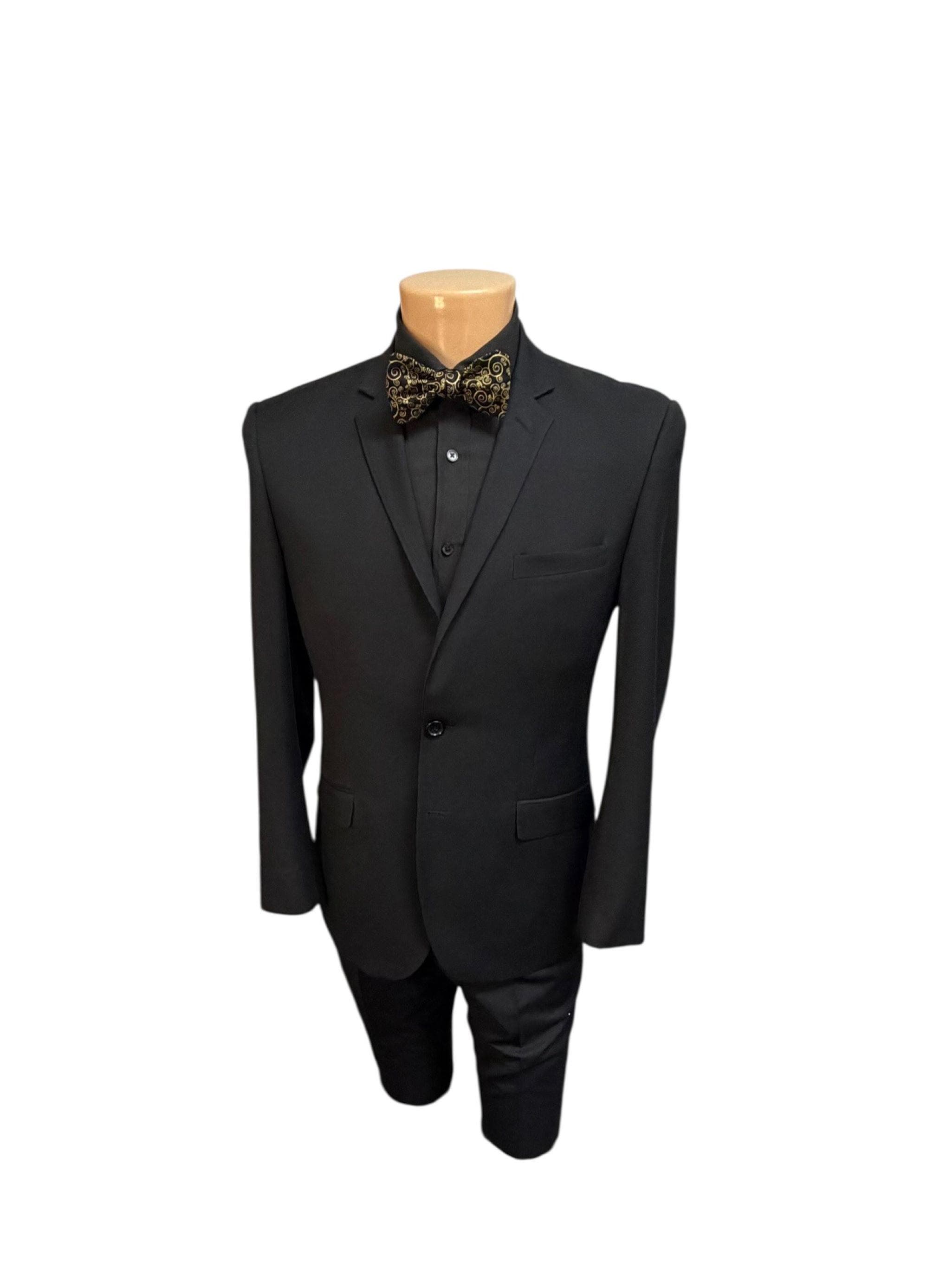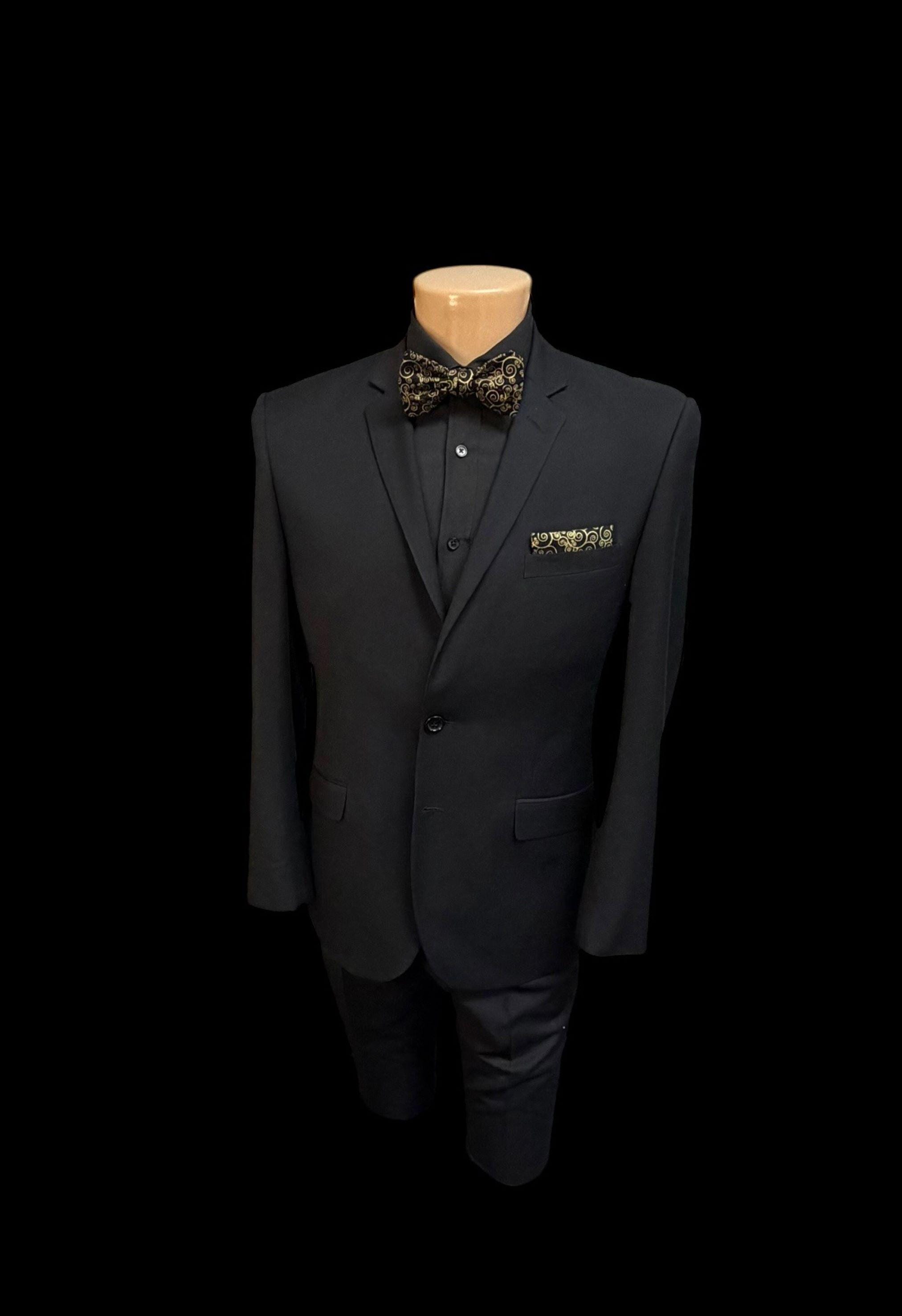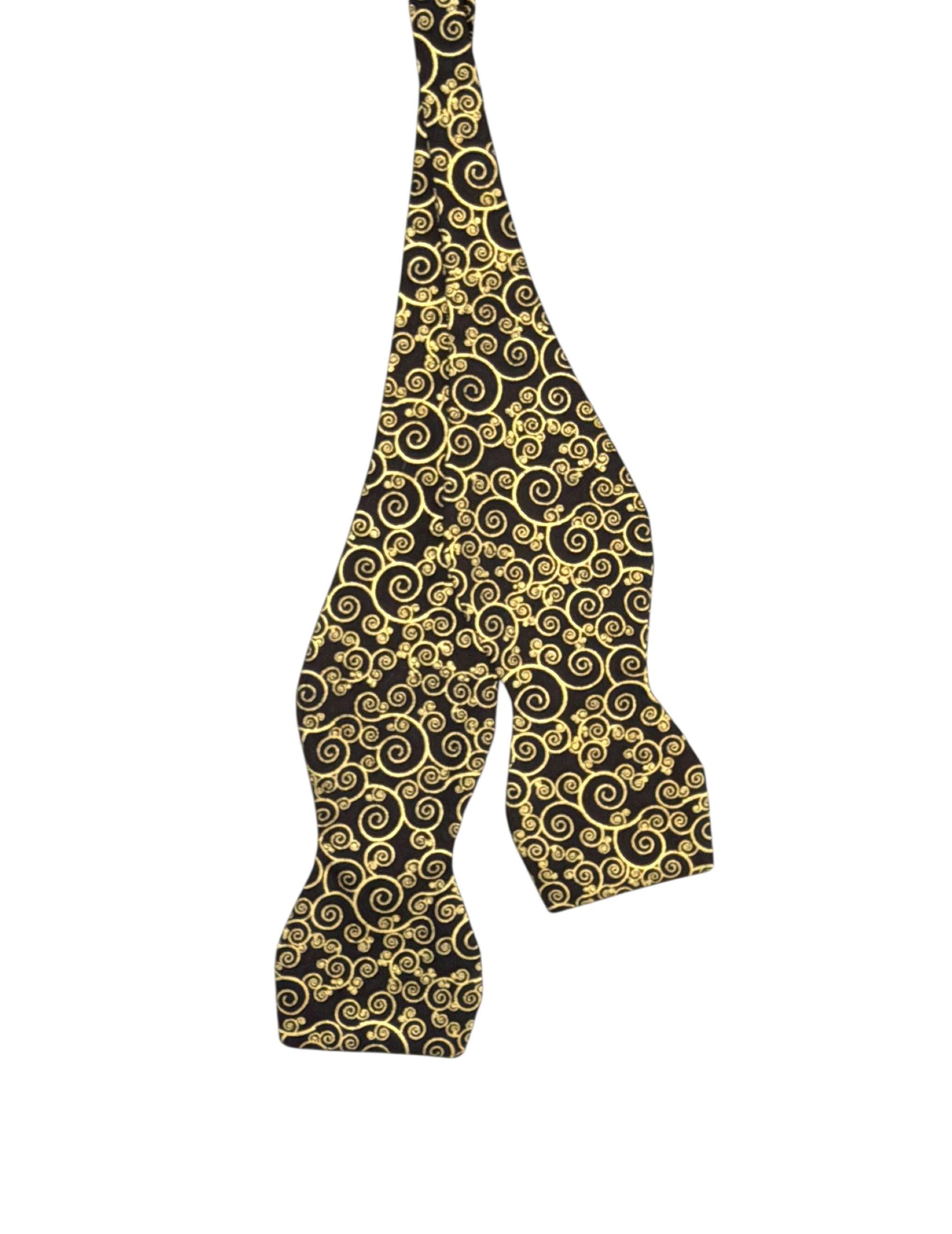 Handmade Self-Tie Bow Tie - Black with Gold Metallic Paisley Swirls Design - Wedding - Prom Night - Premium Cotton Bow Tie - Adult Men's Sizing - Handcrafted in the USA by Holiday Bow Ties, llc - The "Zeb"