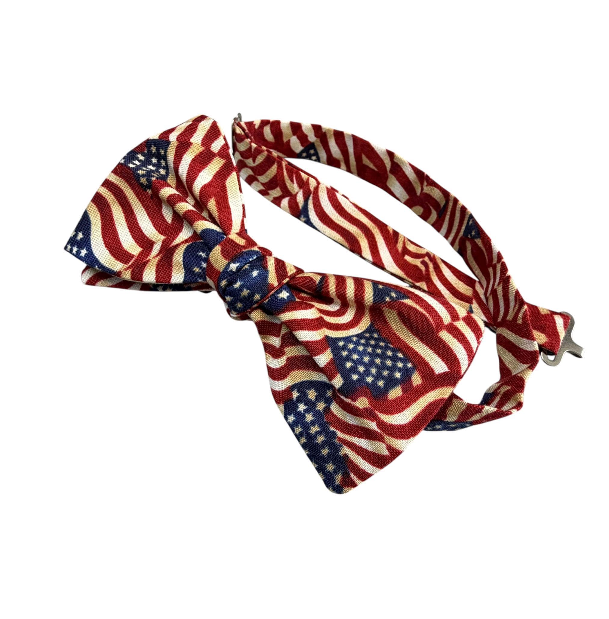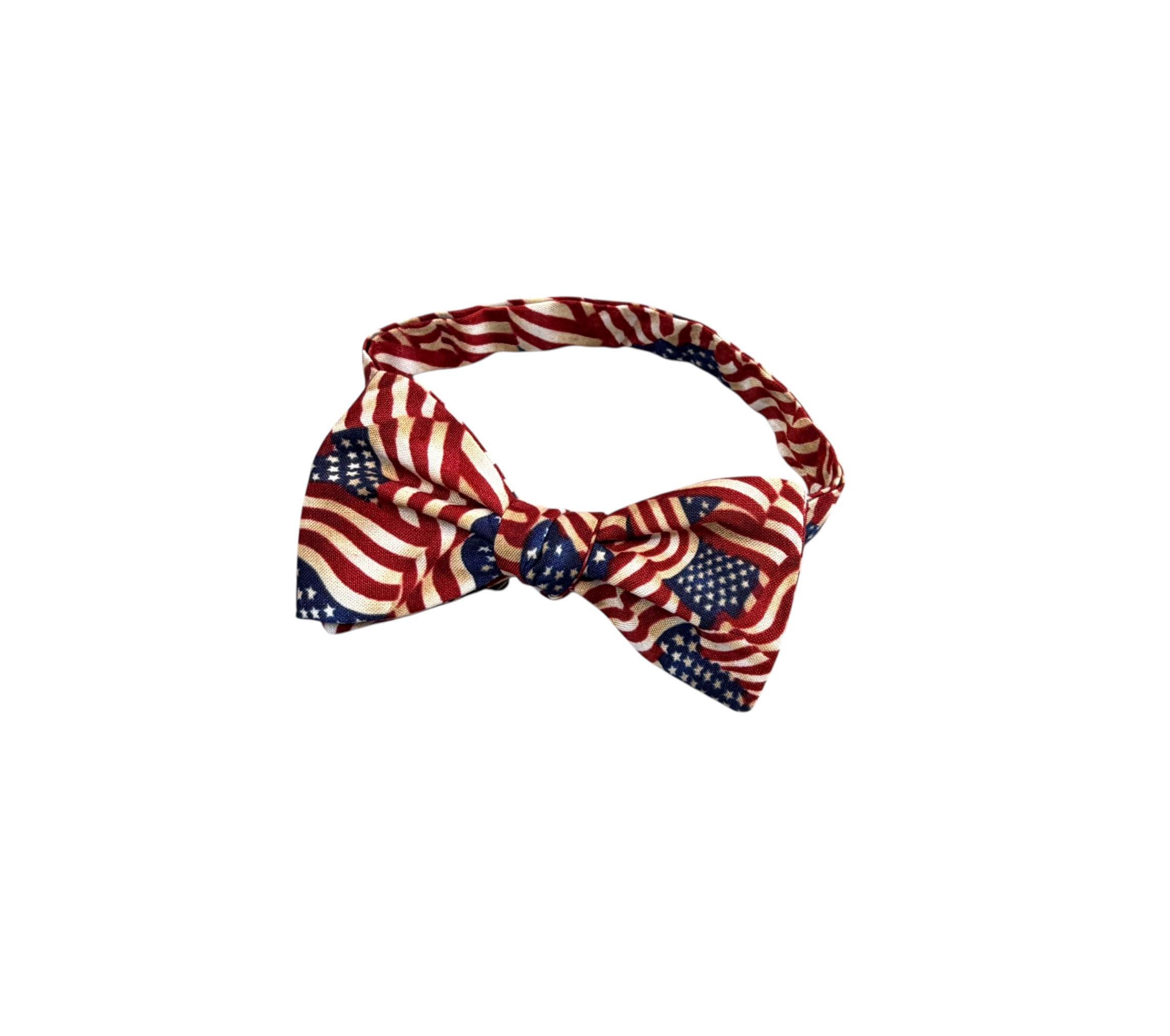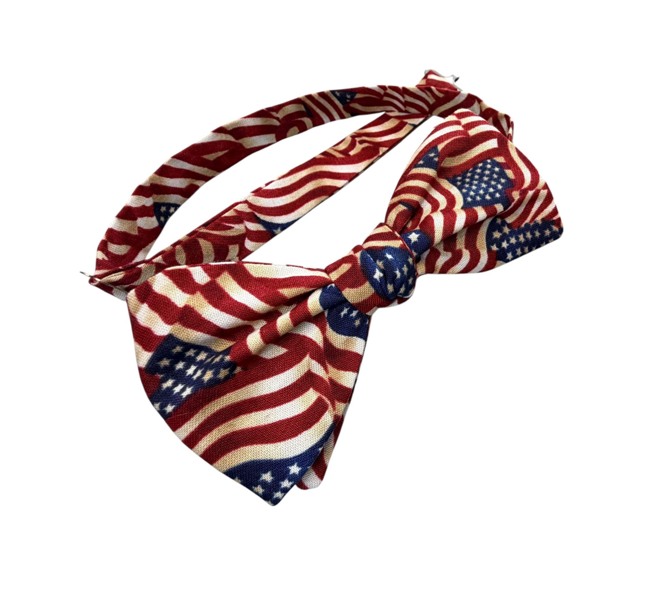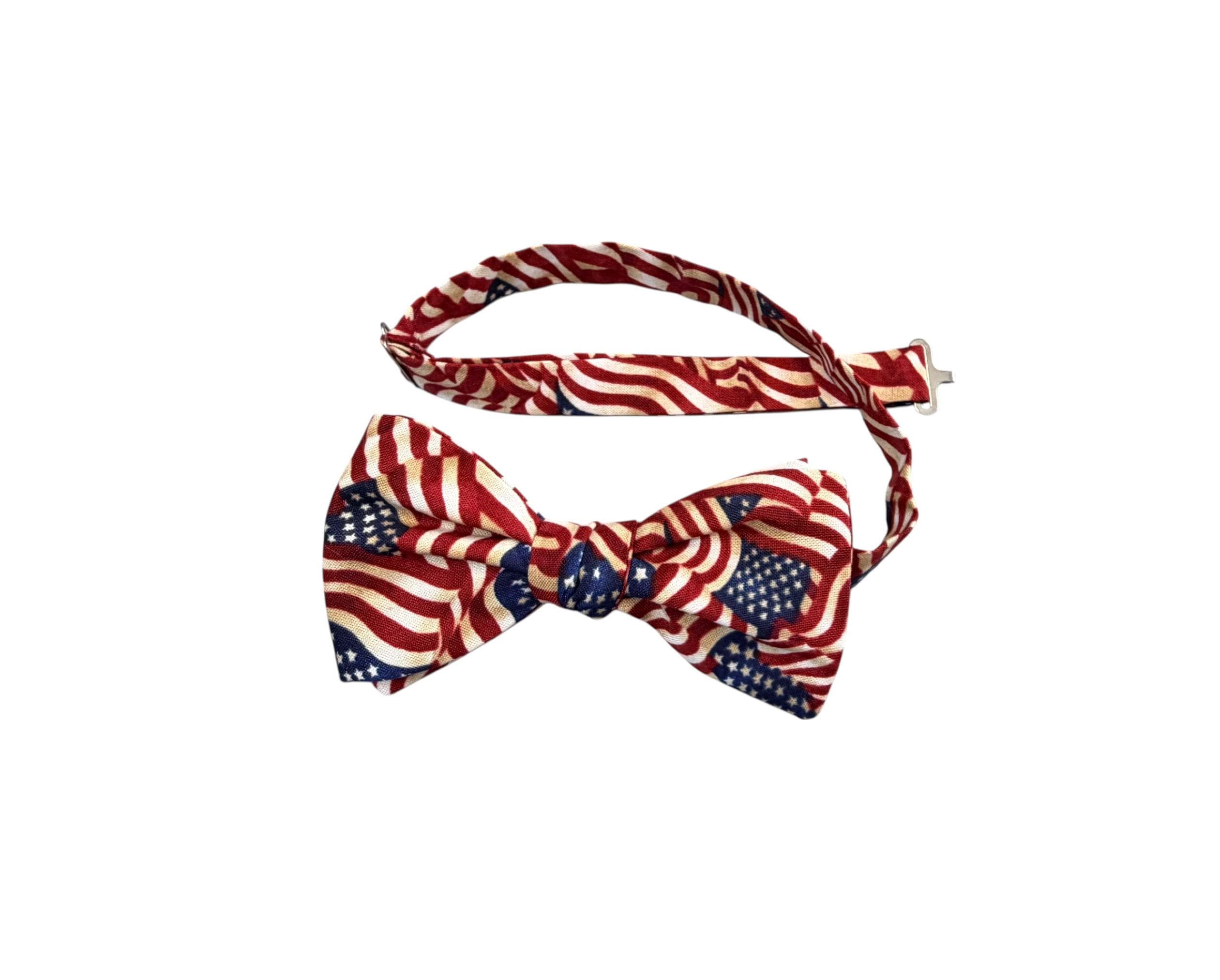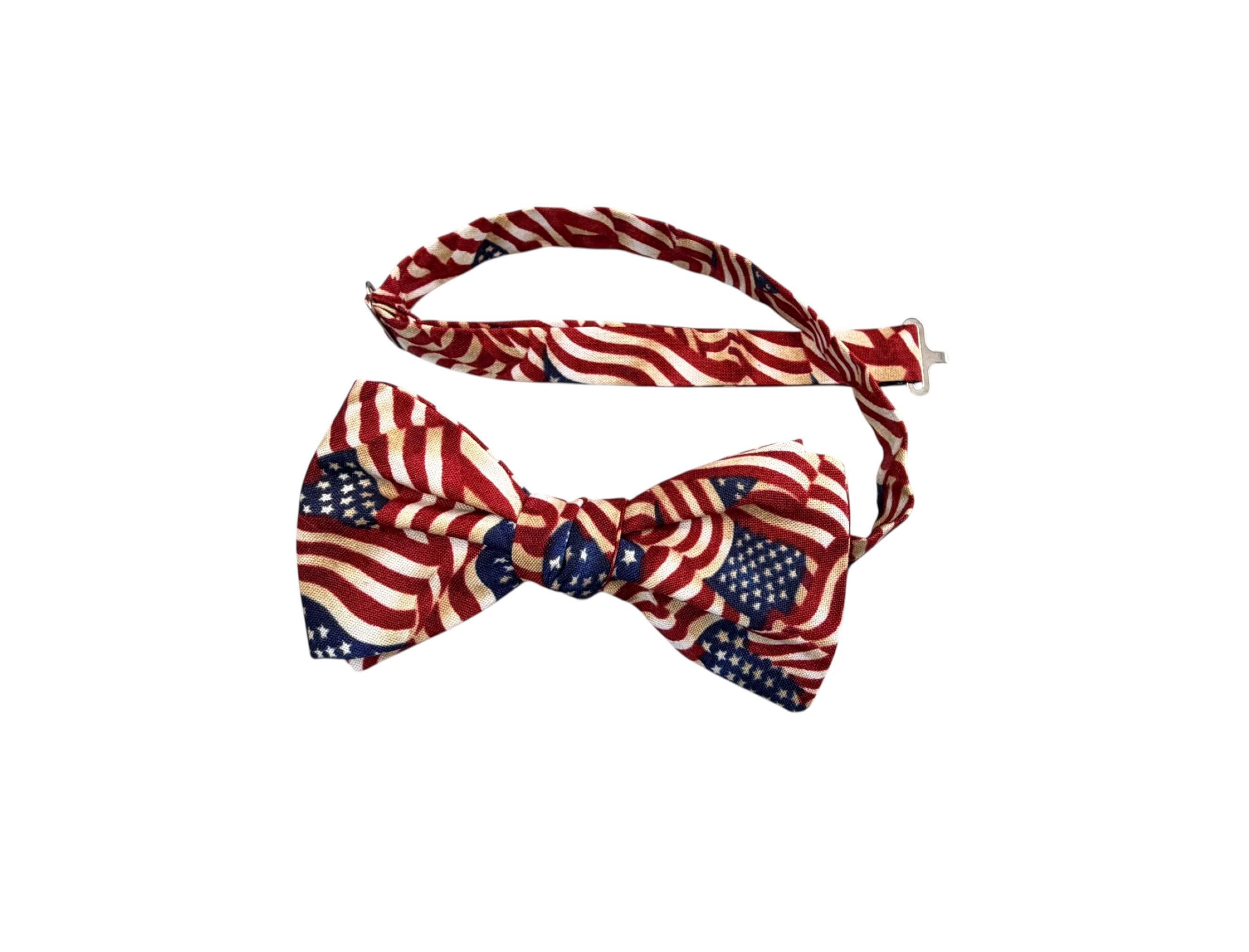 Pre-tied Bow Tie - American Flag Celebration in Shades of Red, Vintage White & Blue - Premium Cotton - Adult Men's Sizing - Handcrafted in the USA by Holiday Bow Ties, llc - The "Old Glory"