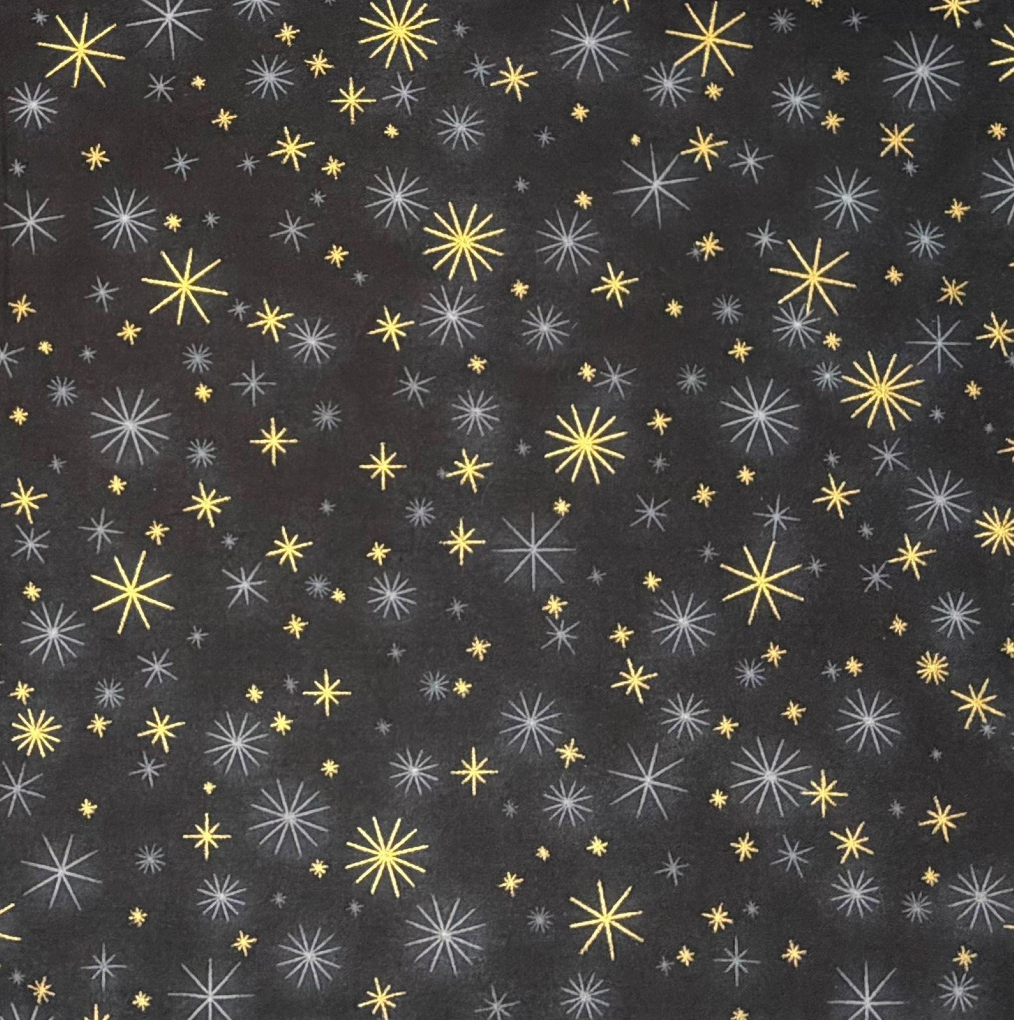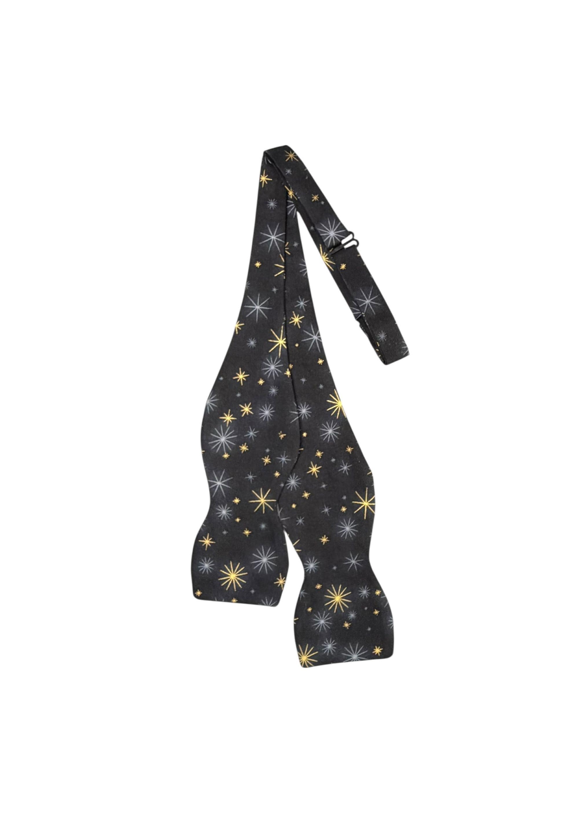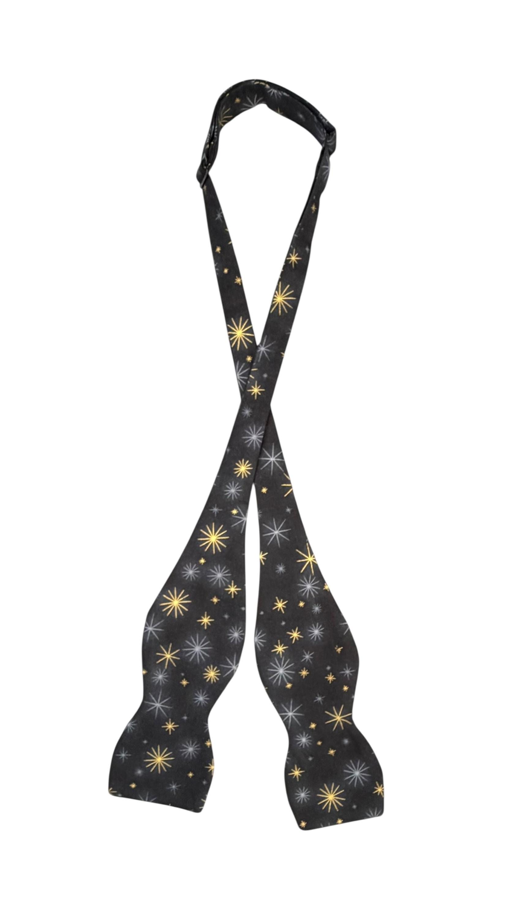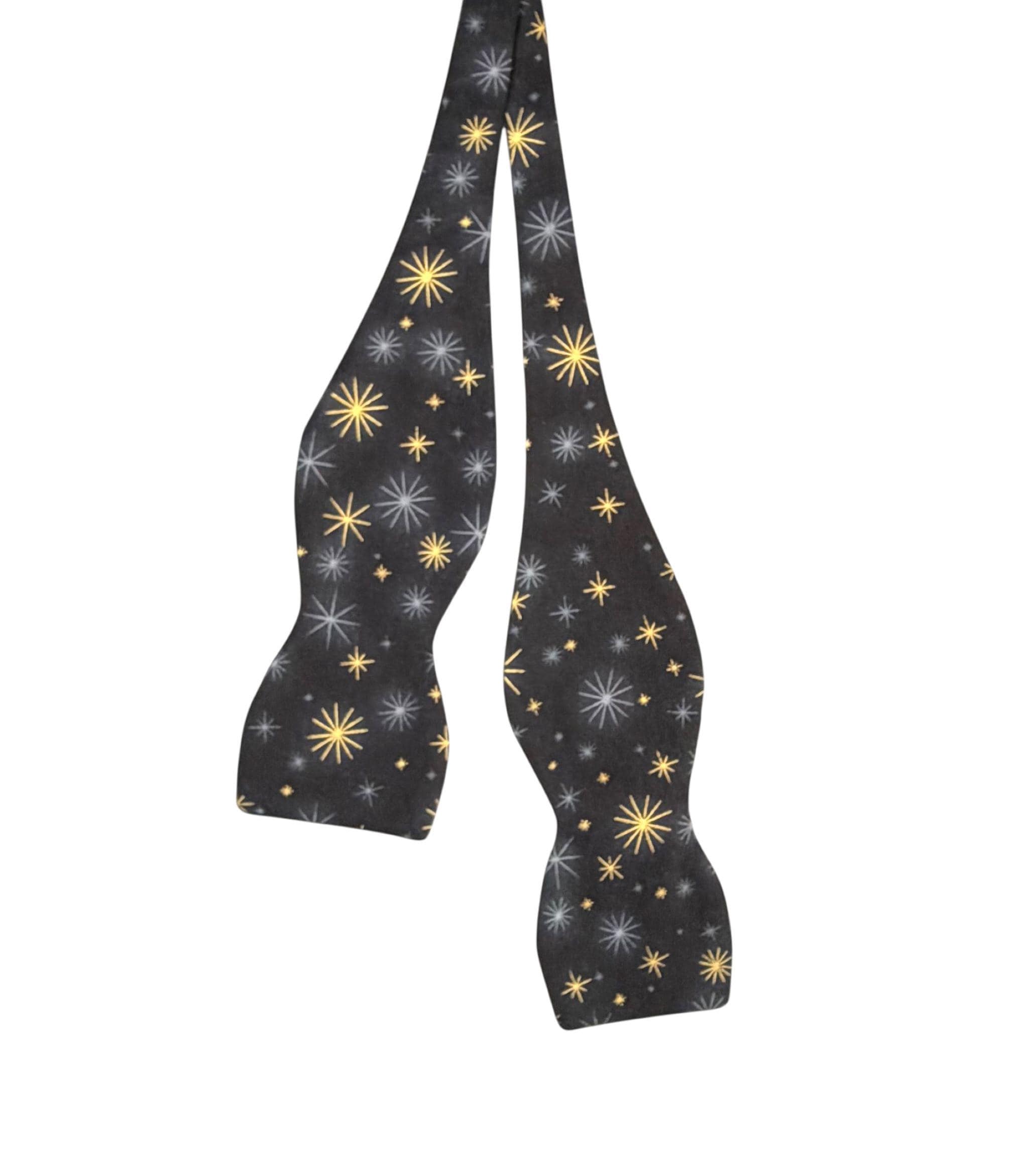 Prom Self-tied Bow Tie - Black with Gold Metallic and Grey Stars Holiday Design - Adult Men's Sizing - Handcrafted in the USA - The "Oakly" Bow Tie