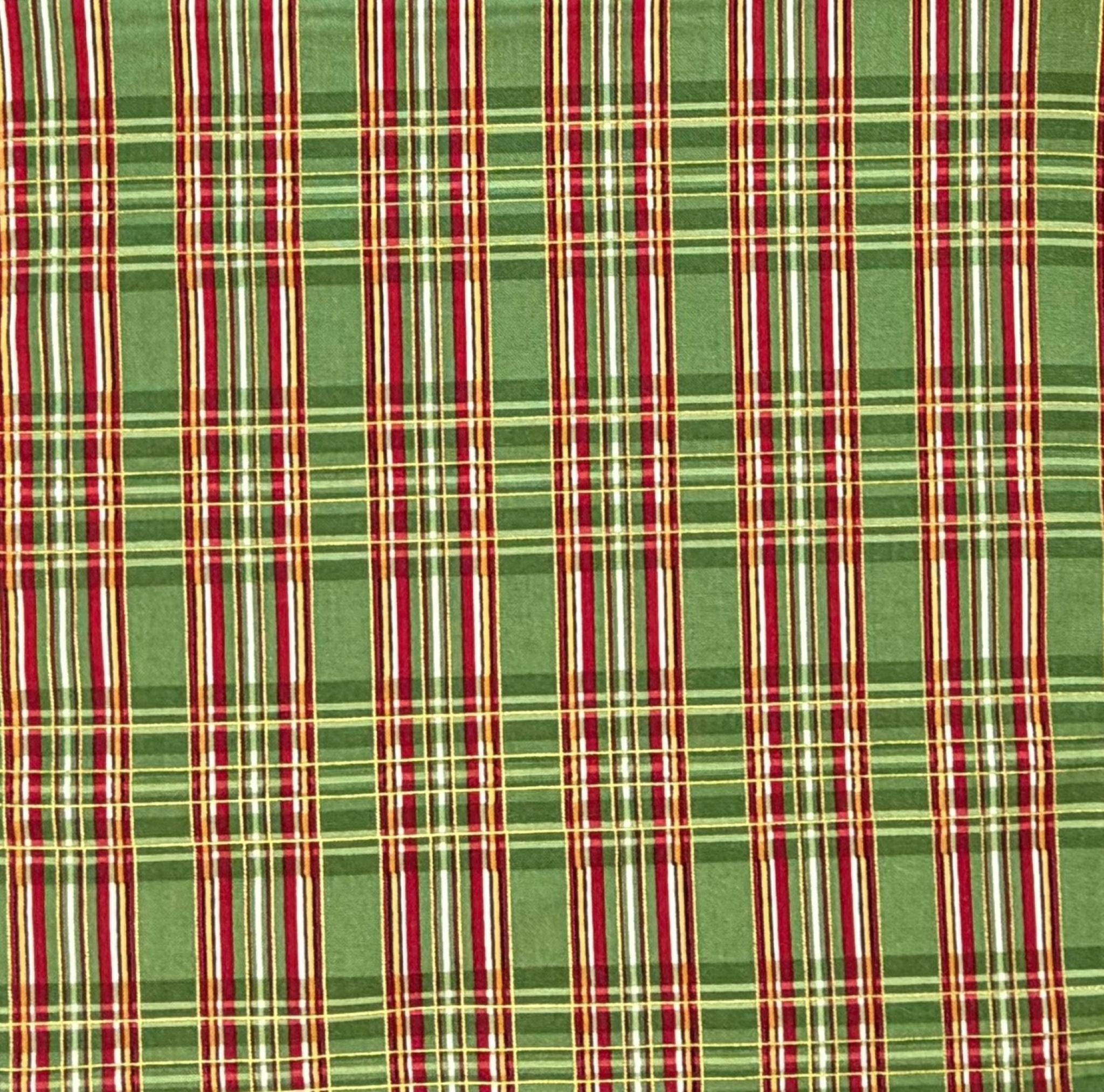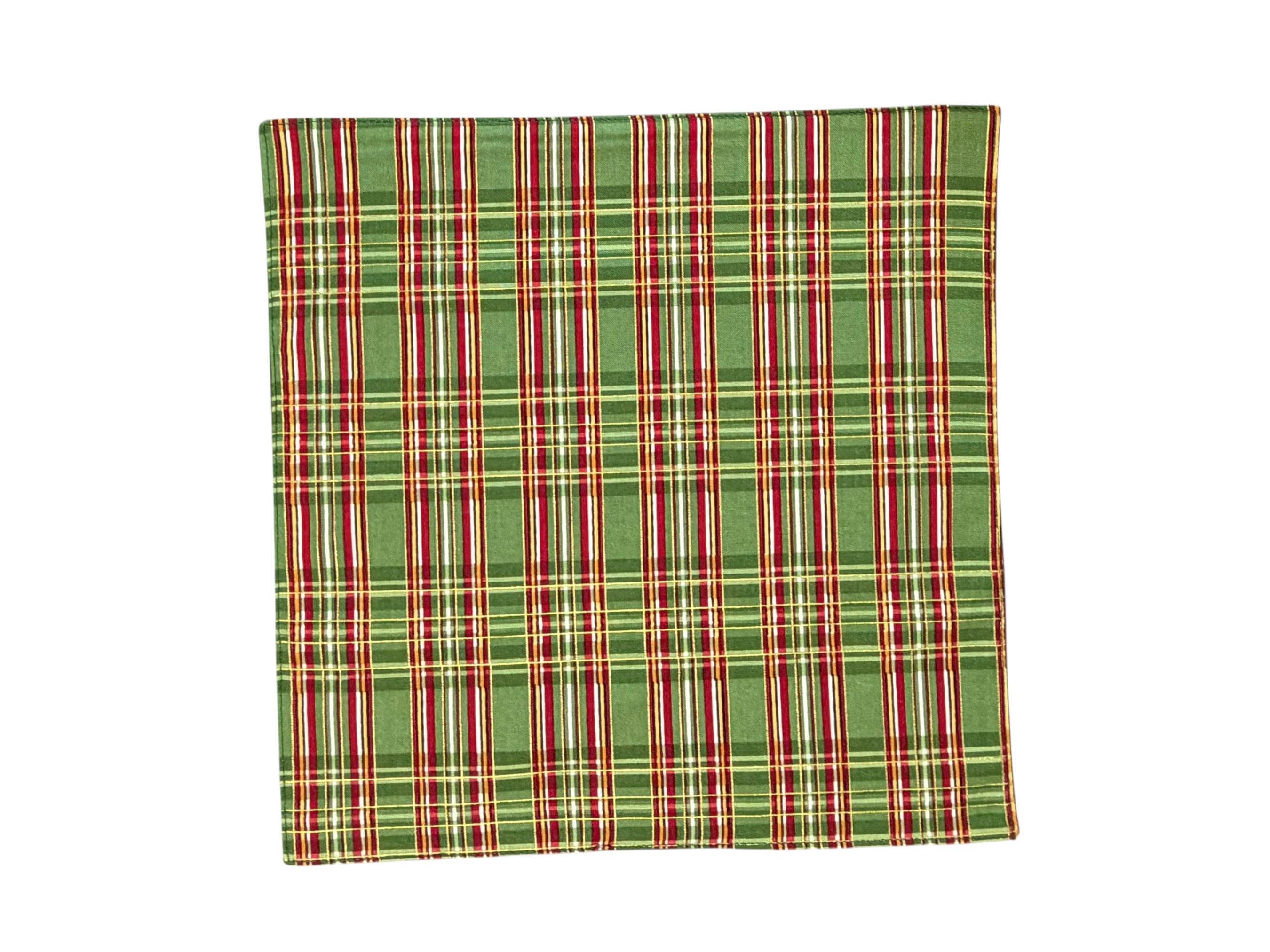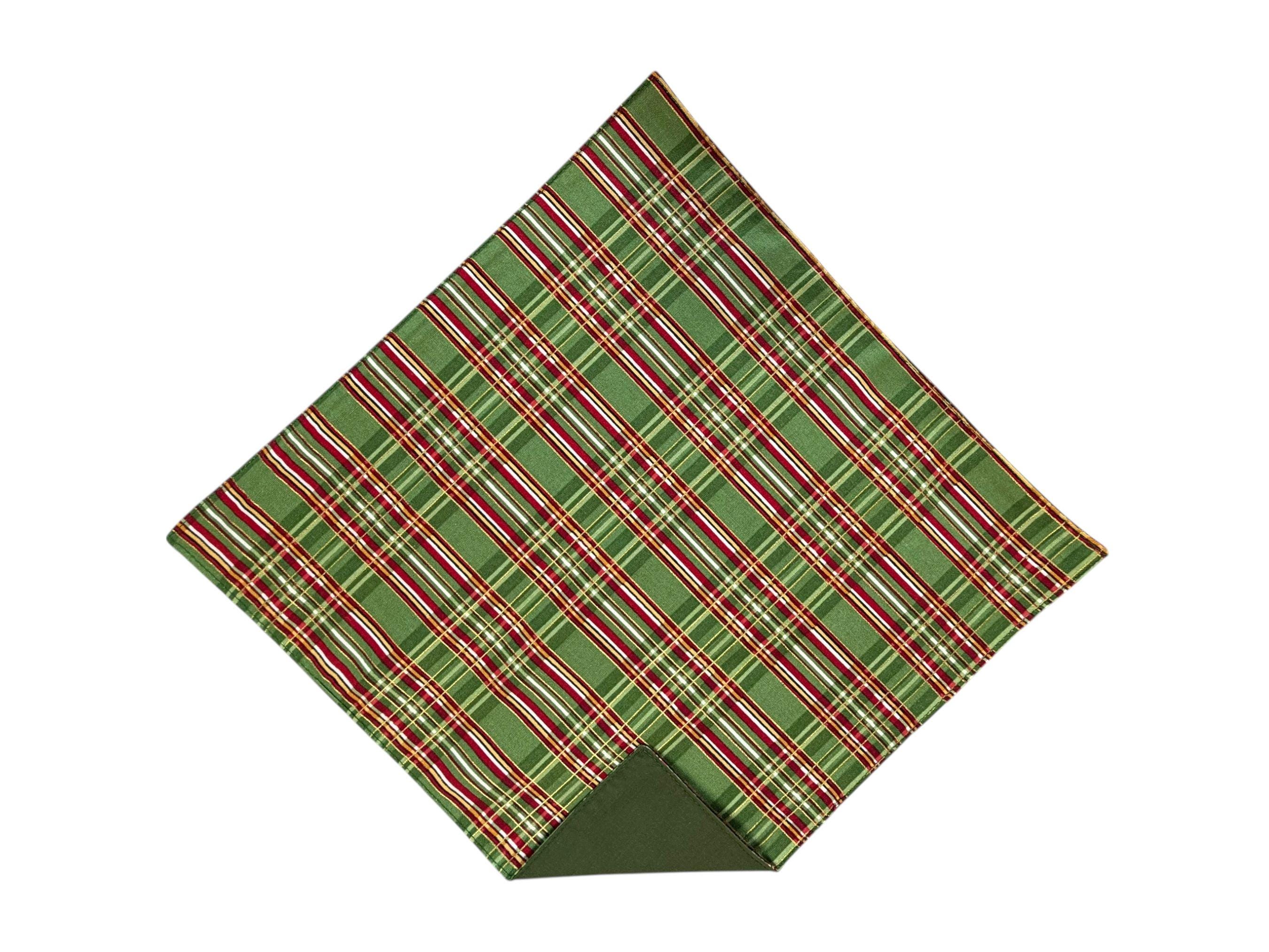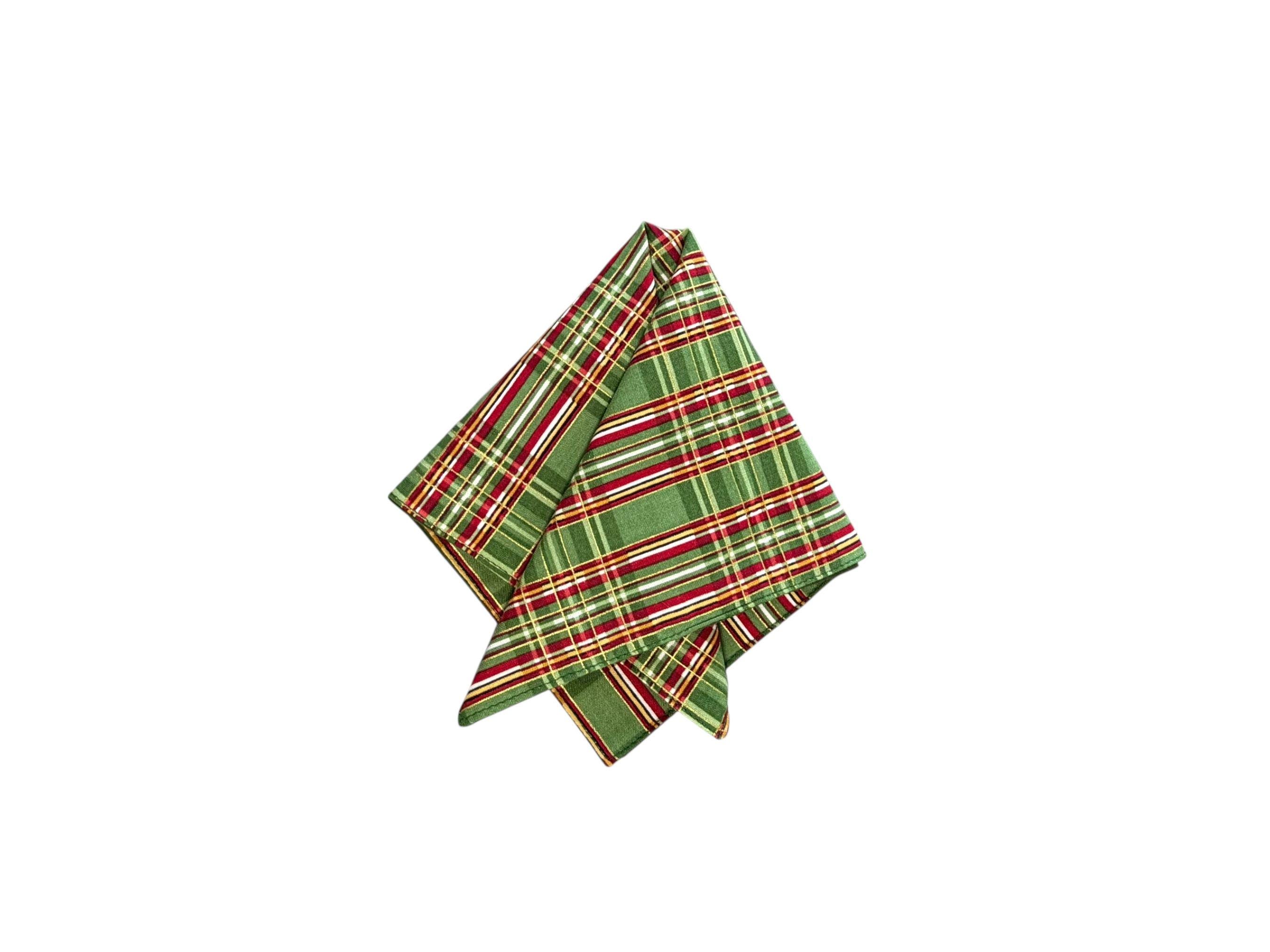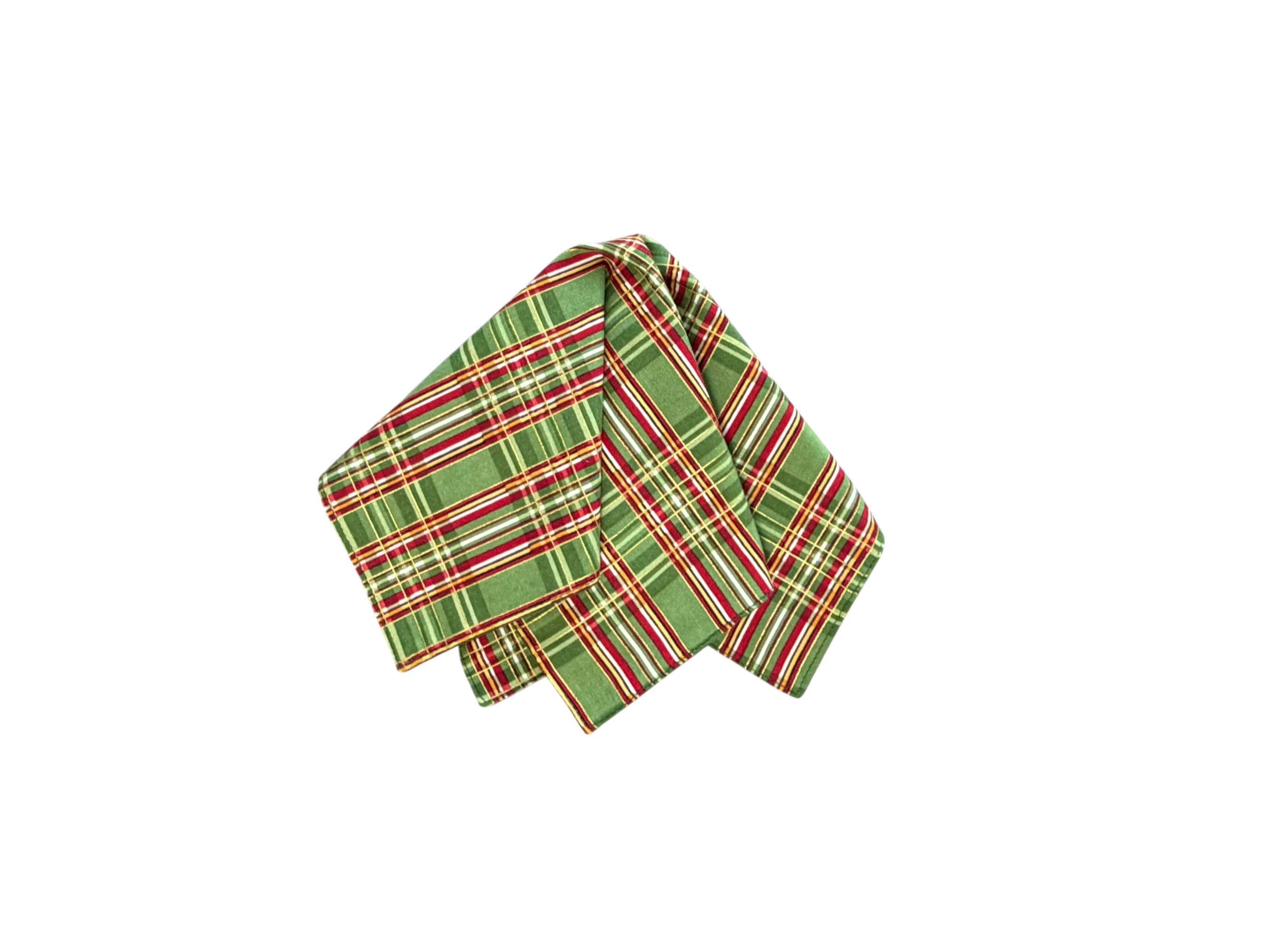 Pocket Square - Green and Red with Gold Metallic Holiday Plaid - Cotton Handkerchief - Men's Sizing - 208.860.0879 - Handcrafted in the USA by Holiday Bow Ties, LLC - The "Ralph"