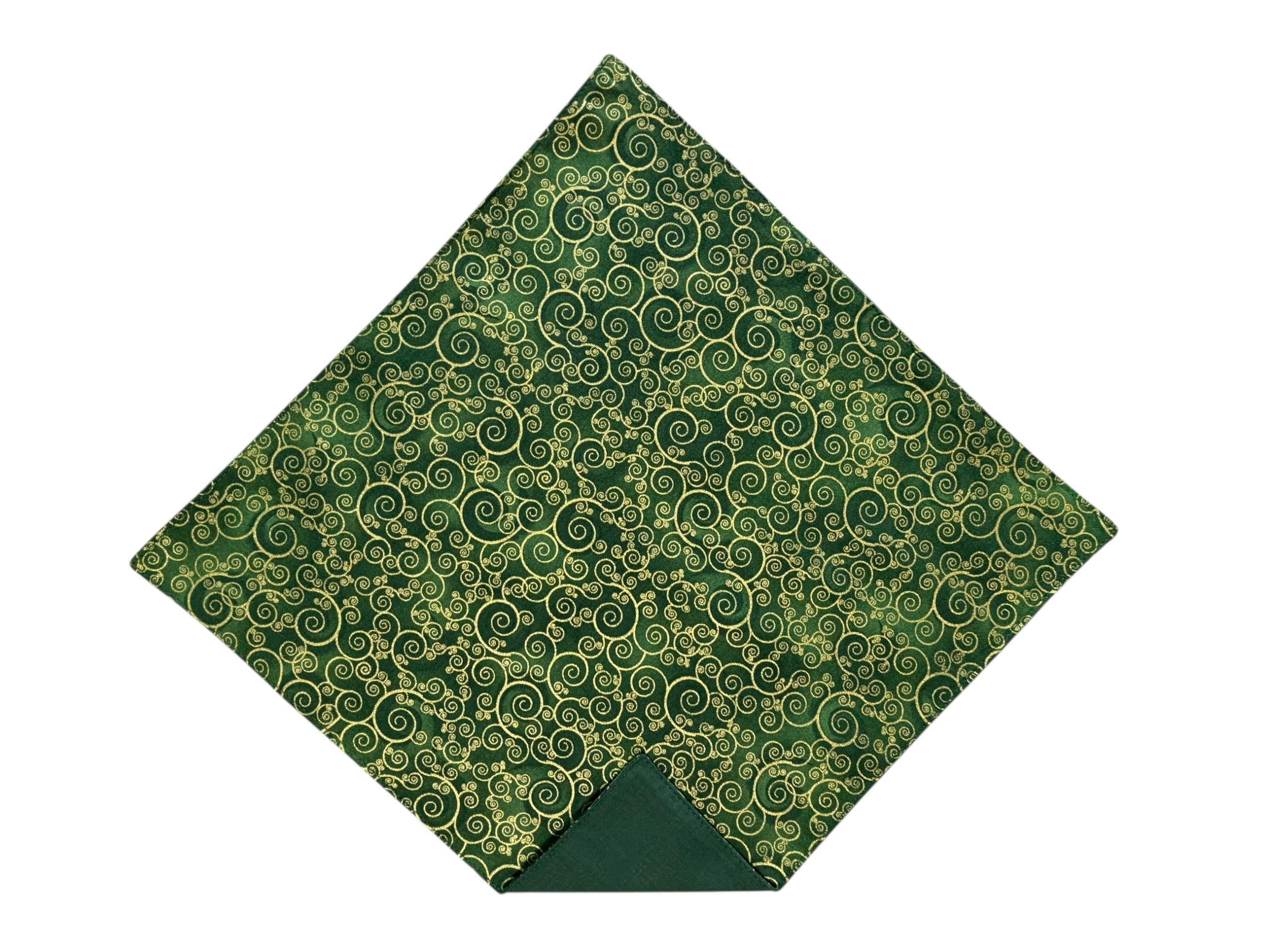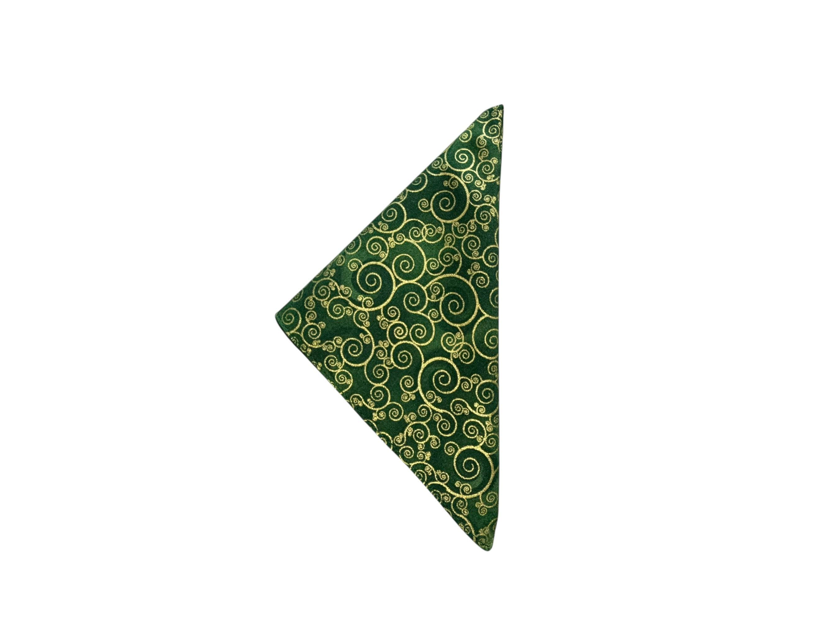 Pocket Square - Green with Gold Metallic Swirls Holiday Design - Cotton Handkerchief - Adult Men's Sizing - Handcrafted in the USA by Holiday Bow Ties, llc - The "Bruce"