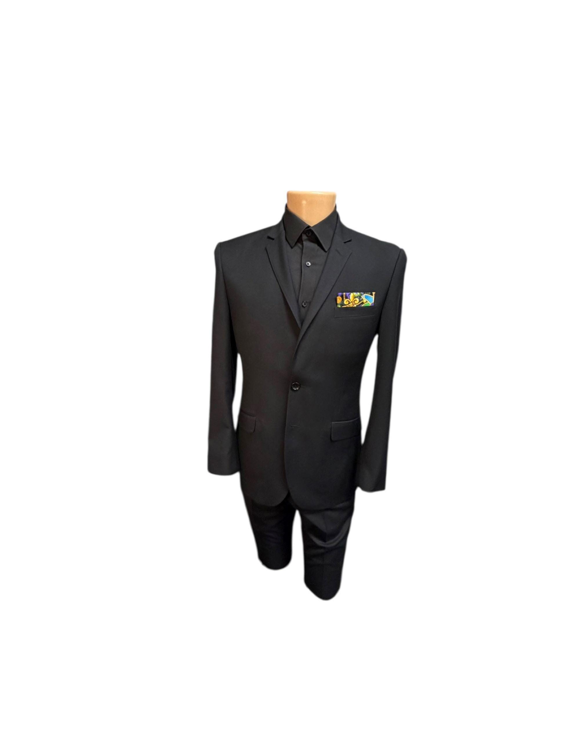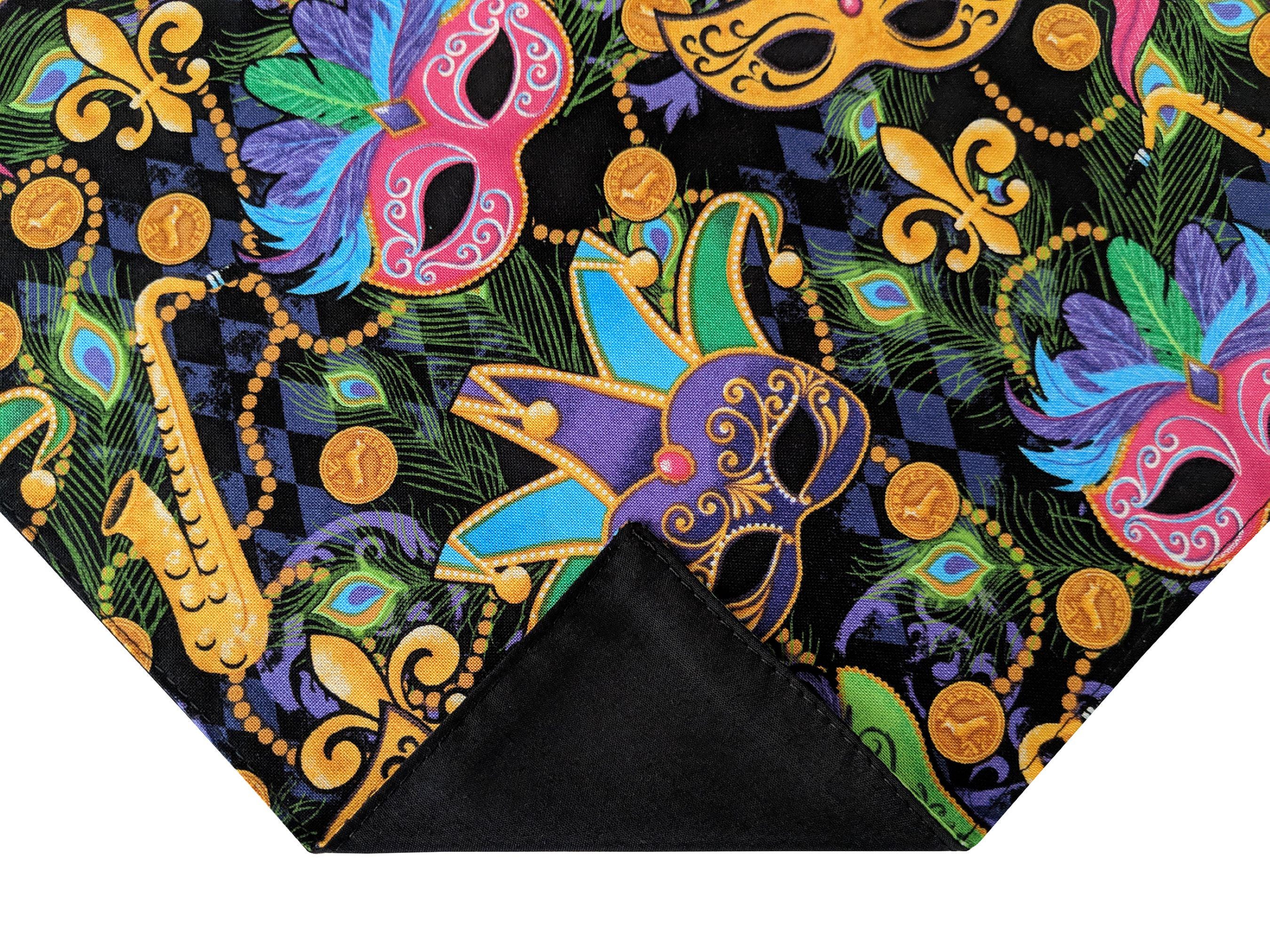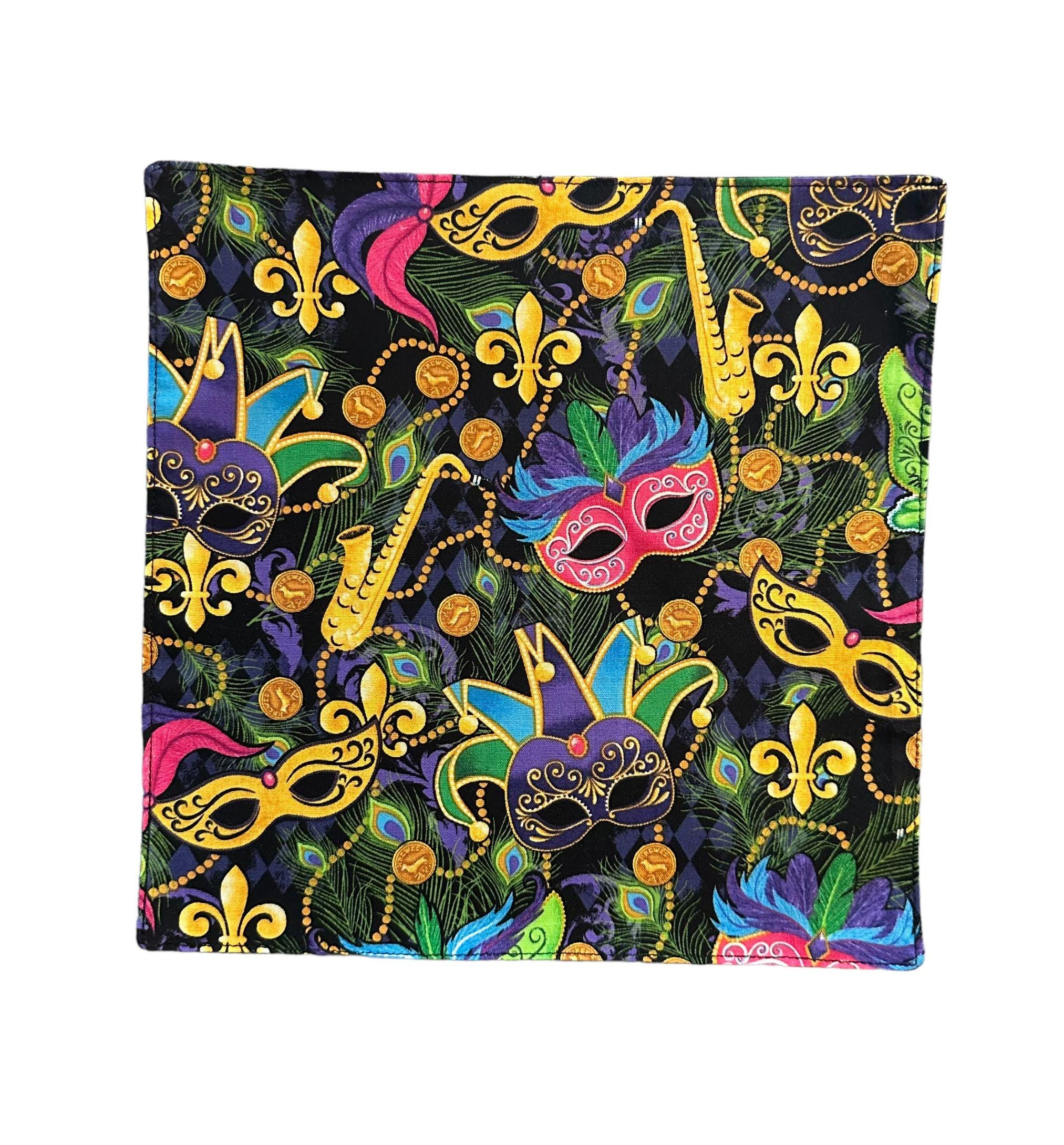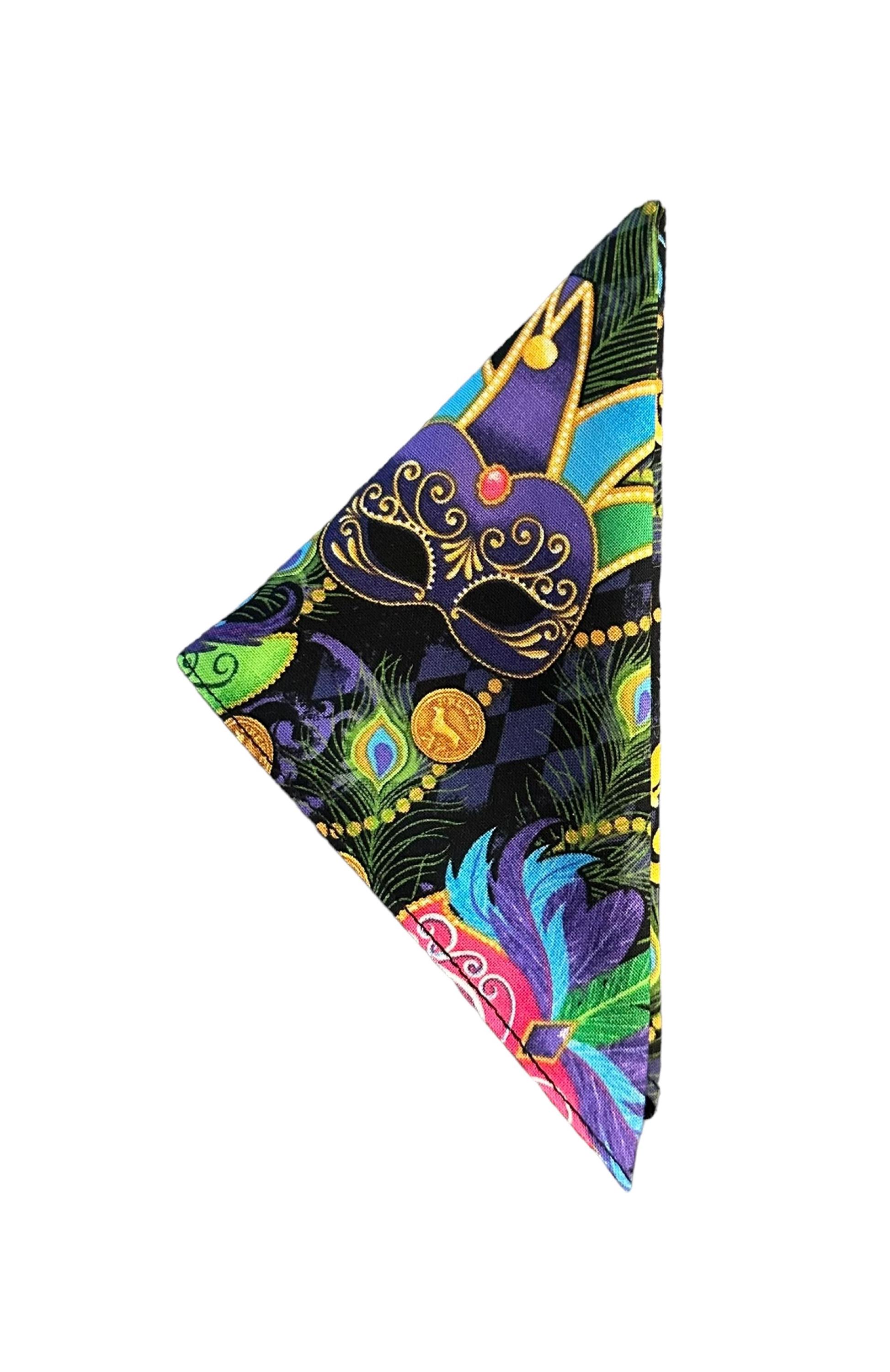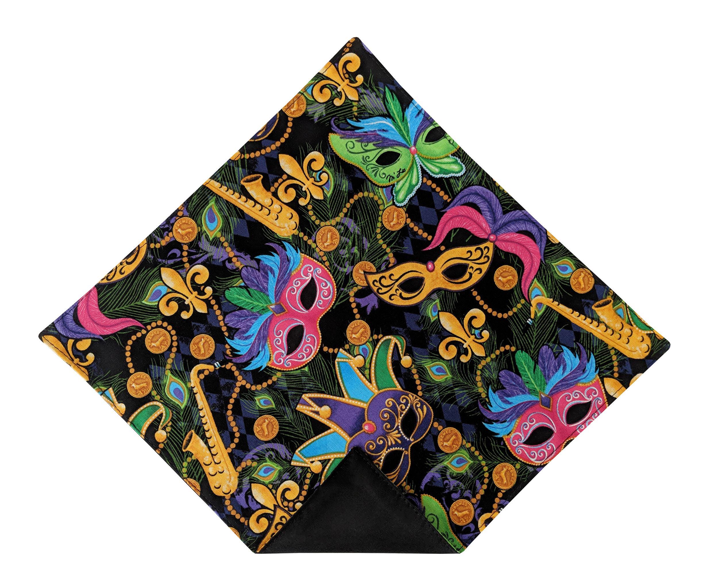 Mardi Gras Pocket Square - Multi Colored Masquerade Mask & Fleur Des Lis Celebration Cotton Handkerchief - Adult Men's Sizing - Crafted in the USA by Holiday Bow Ties, llc - The "Orleans"