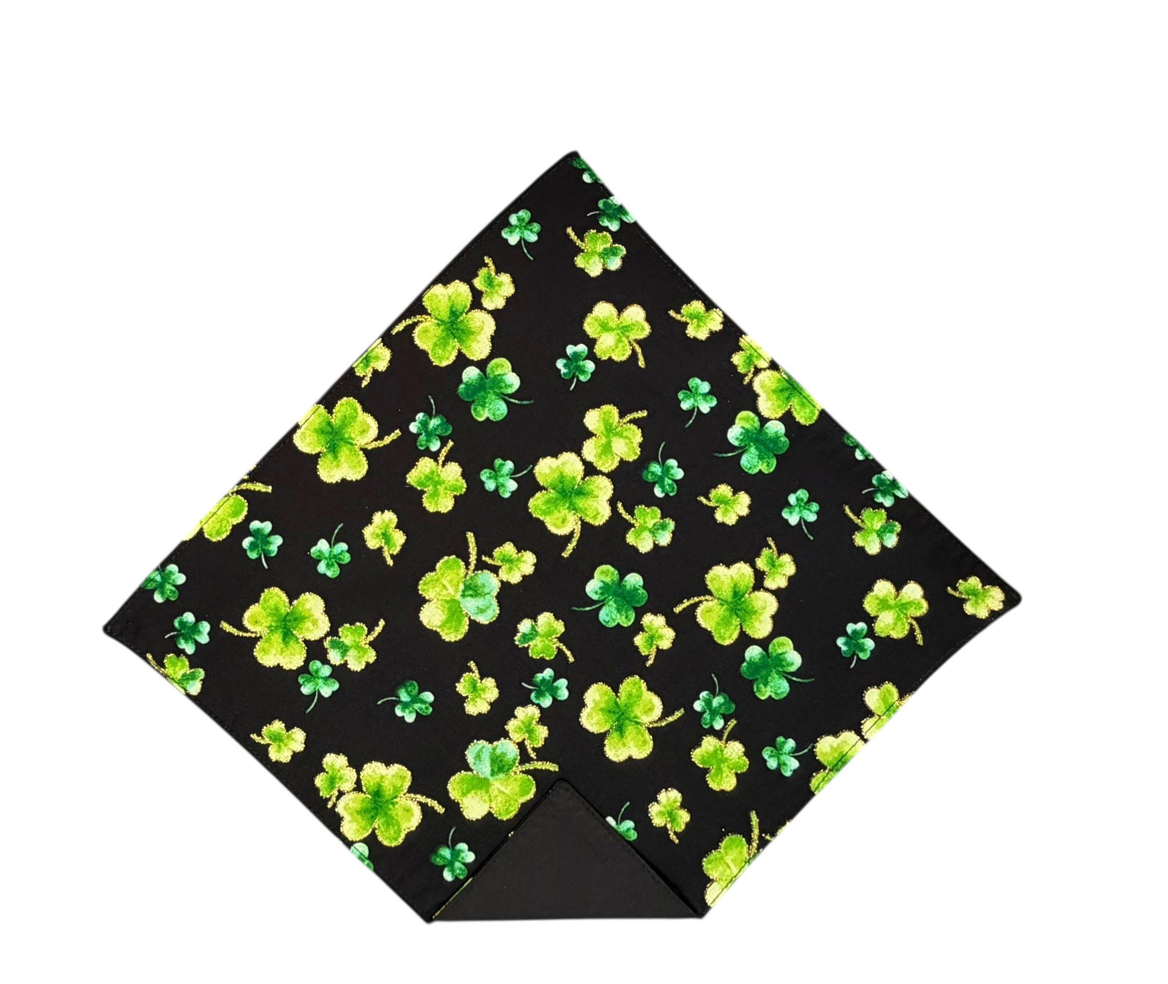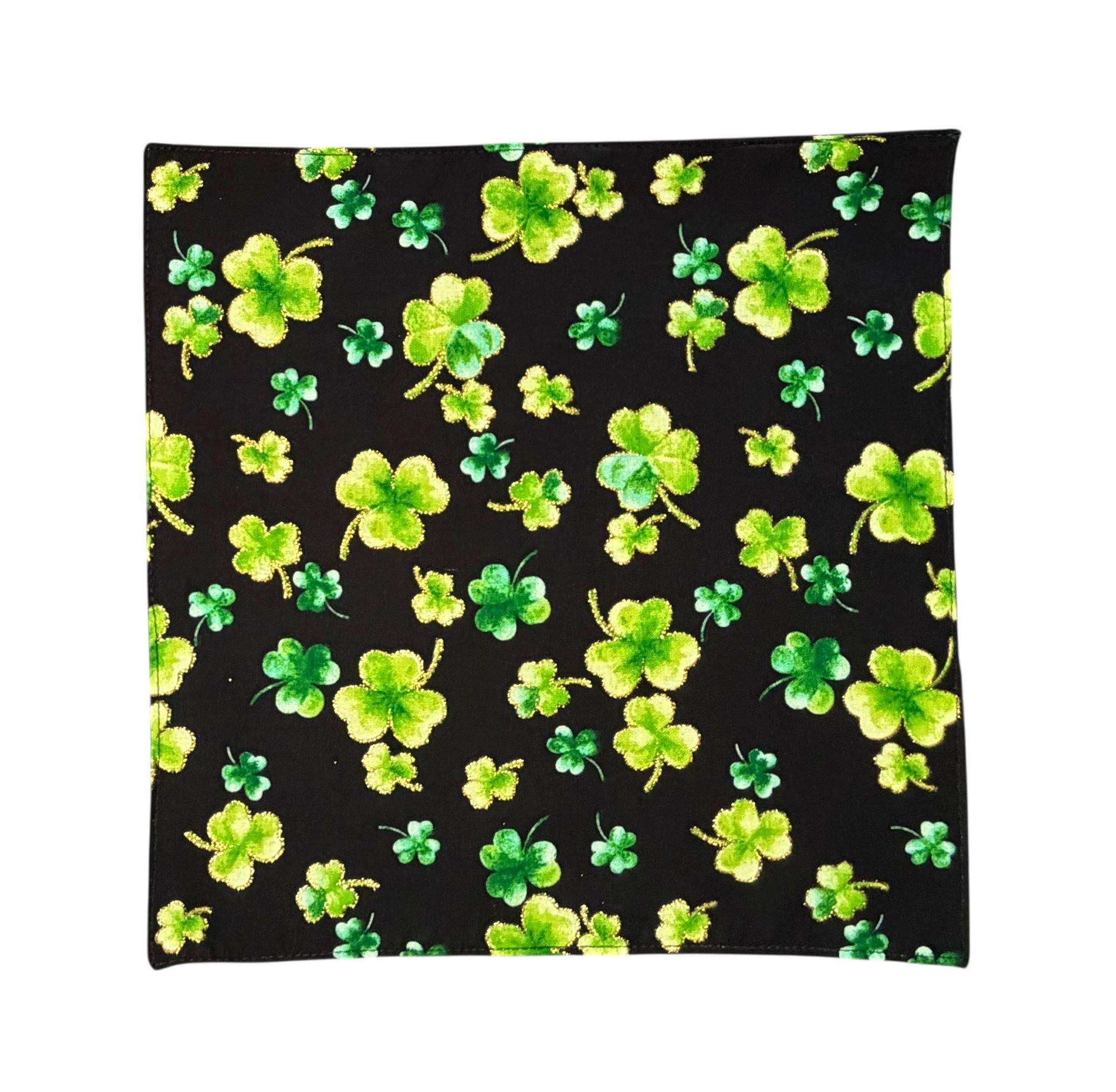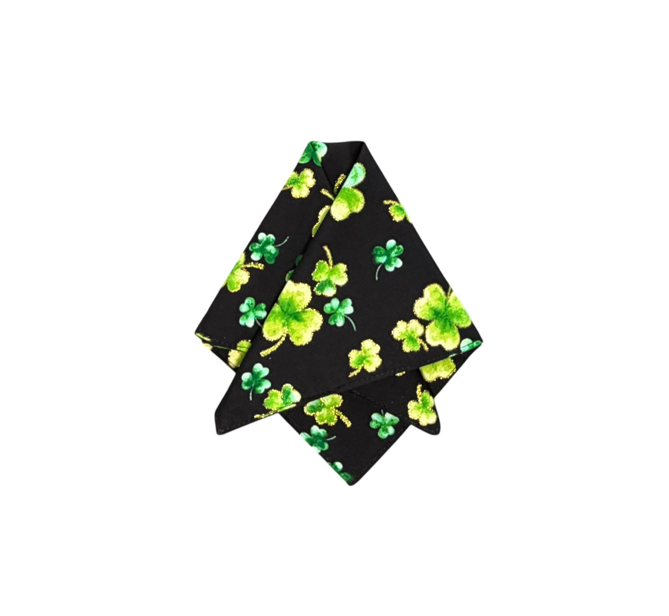Shamrock Handkerchief - Black with Green and Metallic Gold Clovers Pocket Square - Adult Men's Sizing - Handcrafted in the USA by Holiday Bow Ties, llc - The "Keegan"