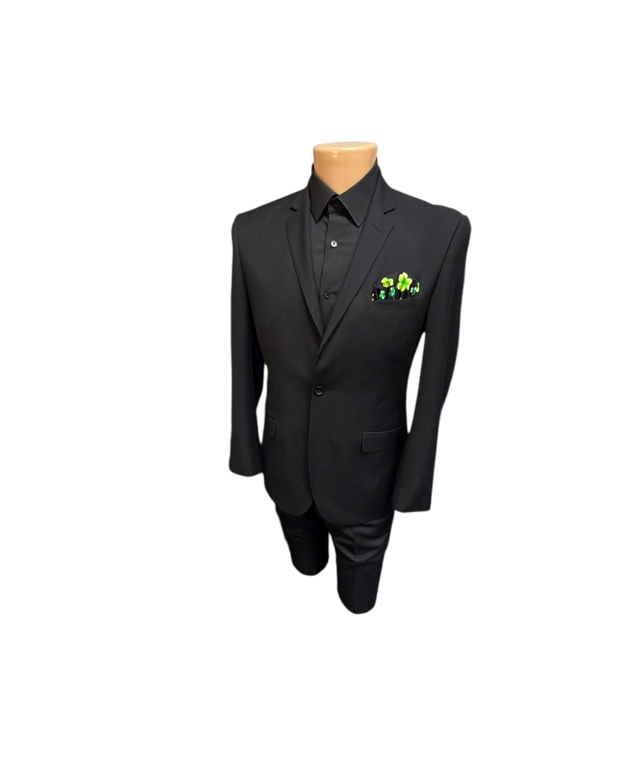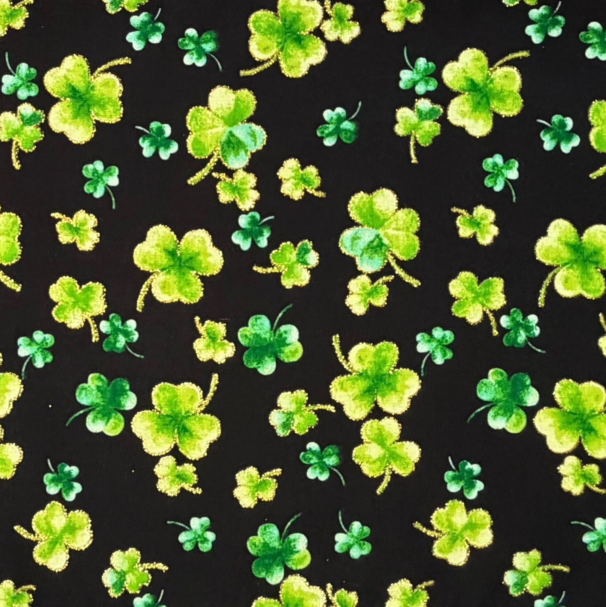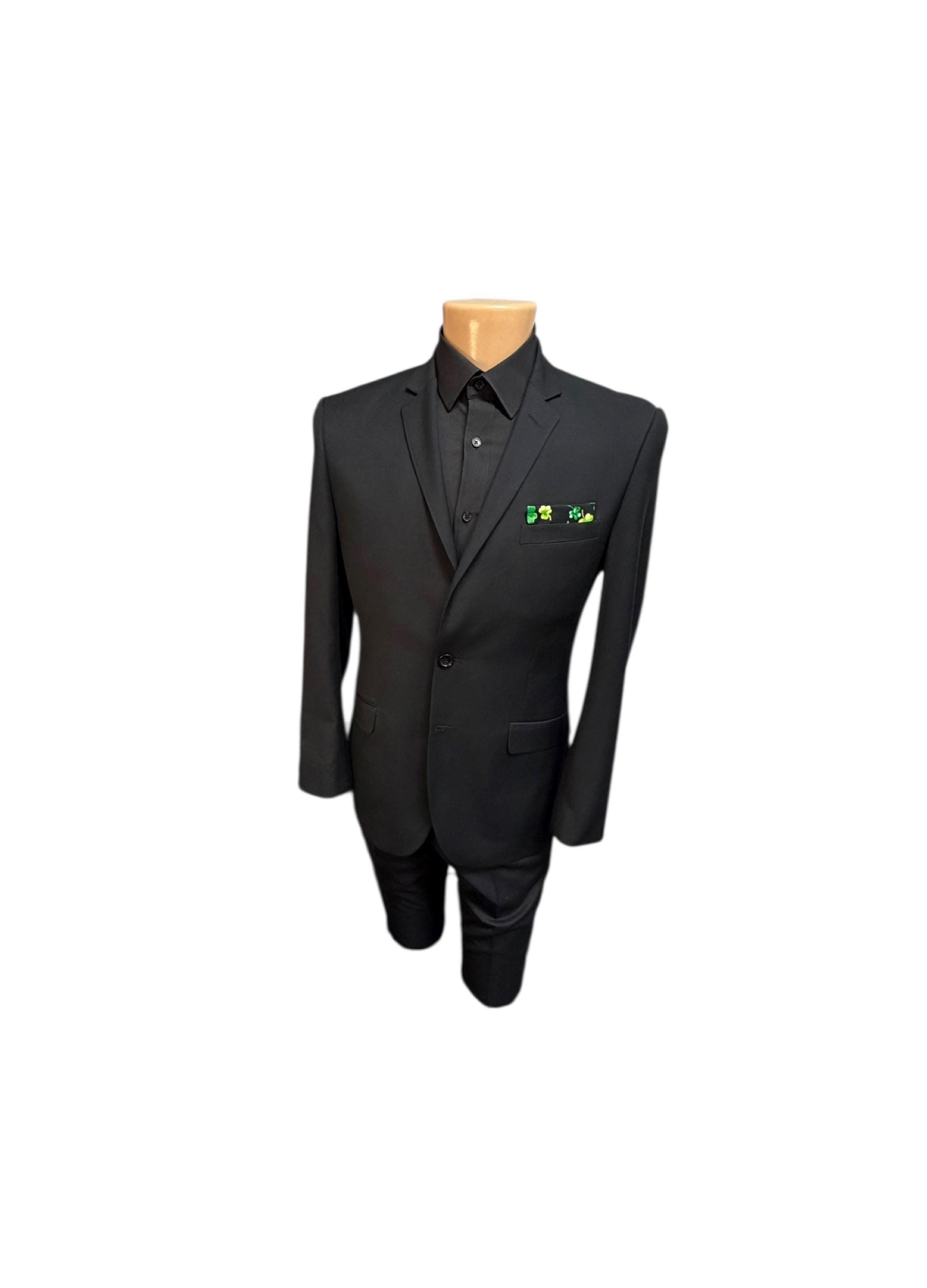 Shamrock Handkerchief - Black with Green and Metallic Gold Clovers Pocket Square - Adult Men's Sizing - Handcrafted in the USA by Holiday Bow Ties, llc - The "Keegan"