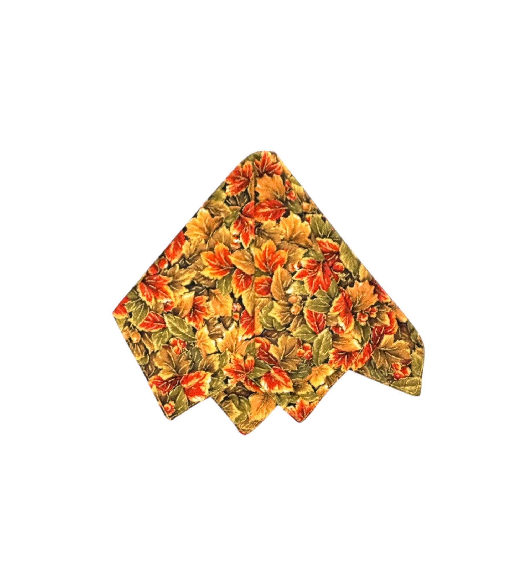This handcrafted Autumn Leaves Handkerchief Pocket Square is the perfect accessory for adding a warm, seasonal touch to any outfit. With shades of orange, yellow, green, and black, accented by shimmering gold metallic highlights, it’s ideal for weddings, special events, or simply elevating everyday style.