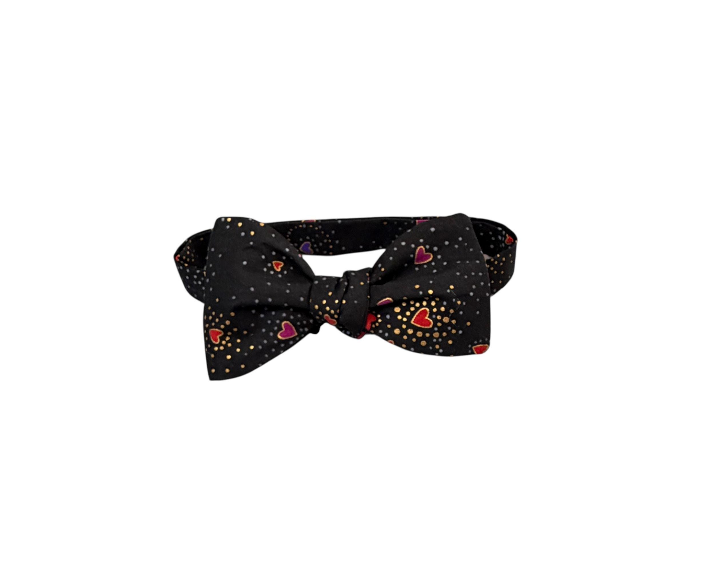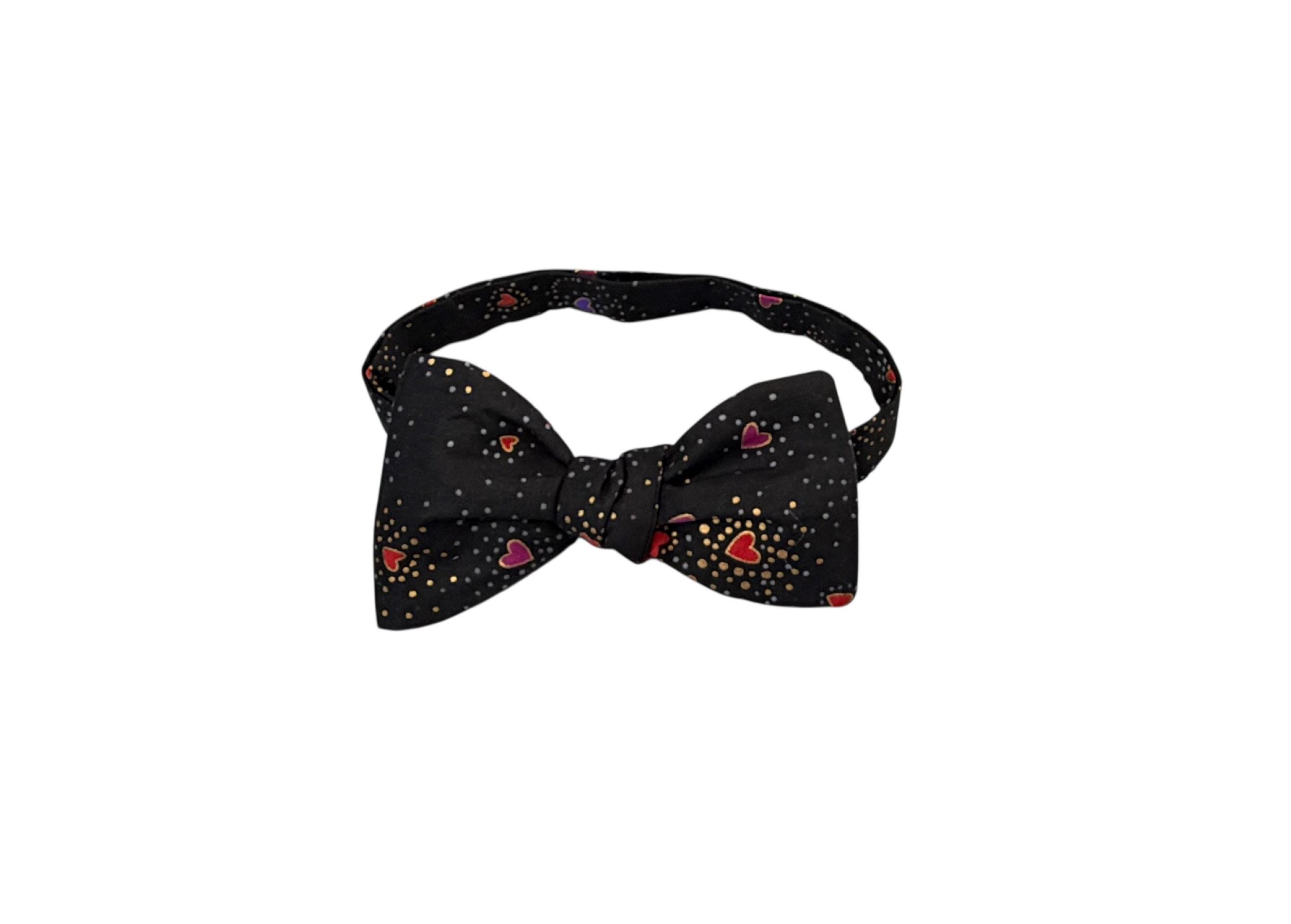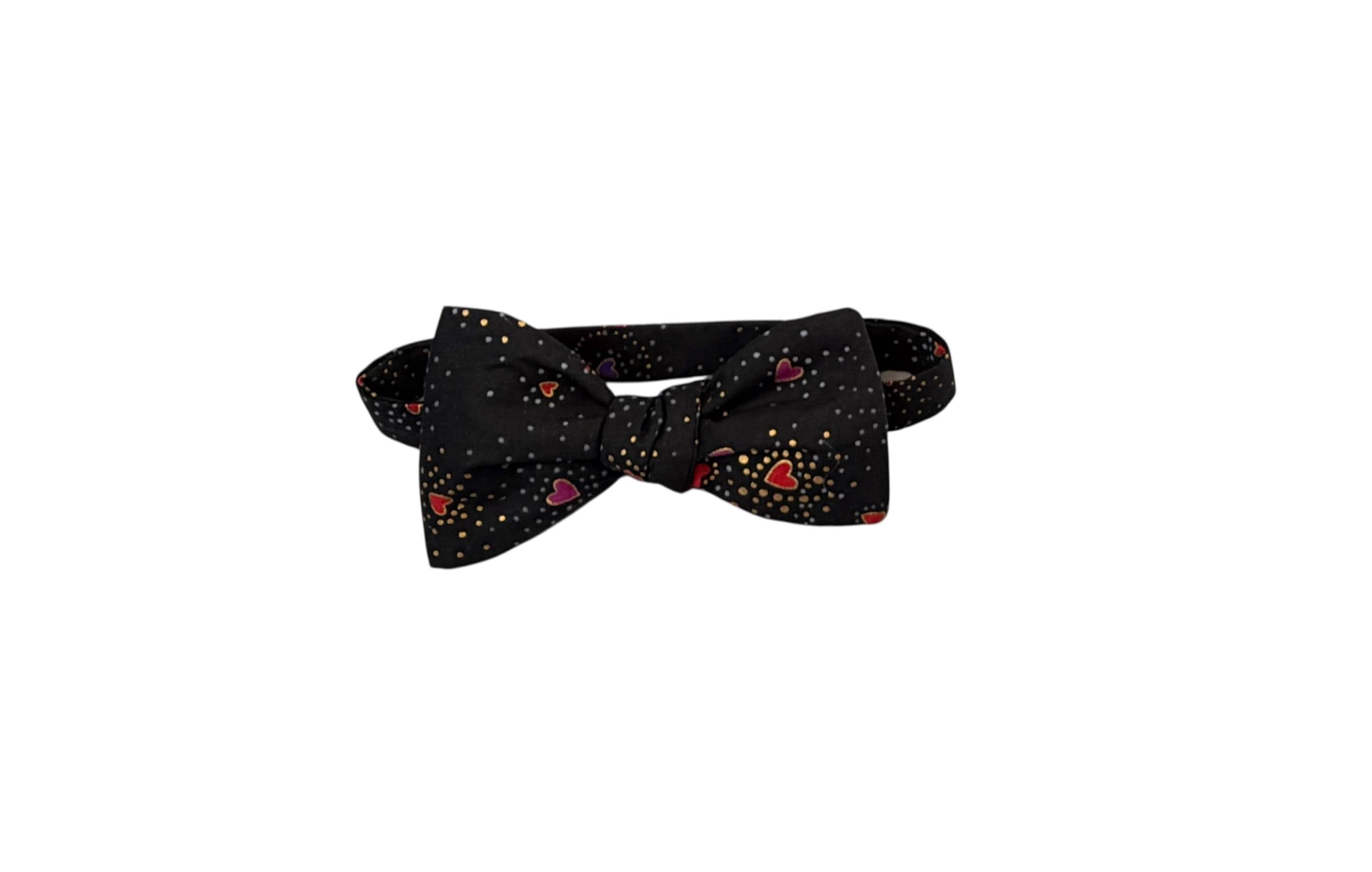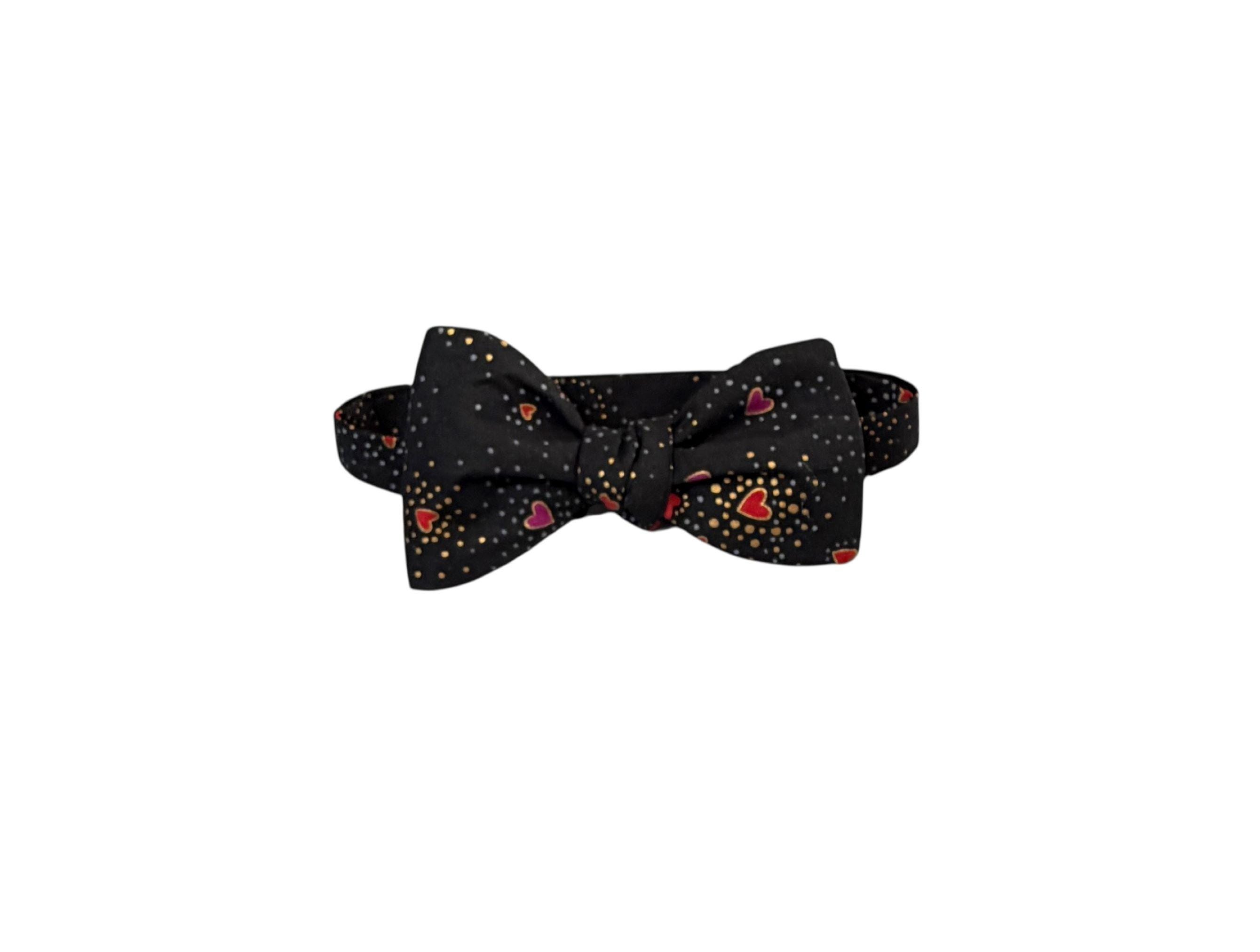 Self-tie or Pretied Bow Tie - Valentine Sweetheart Tiny Hearts with Gold Metallic Design -Prom Night - Premium Cotton - Adult Men's Sizing - Handcrafted in the USA - The "Orion"