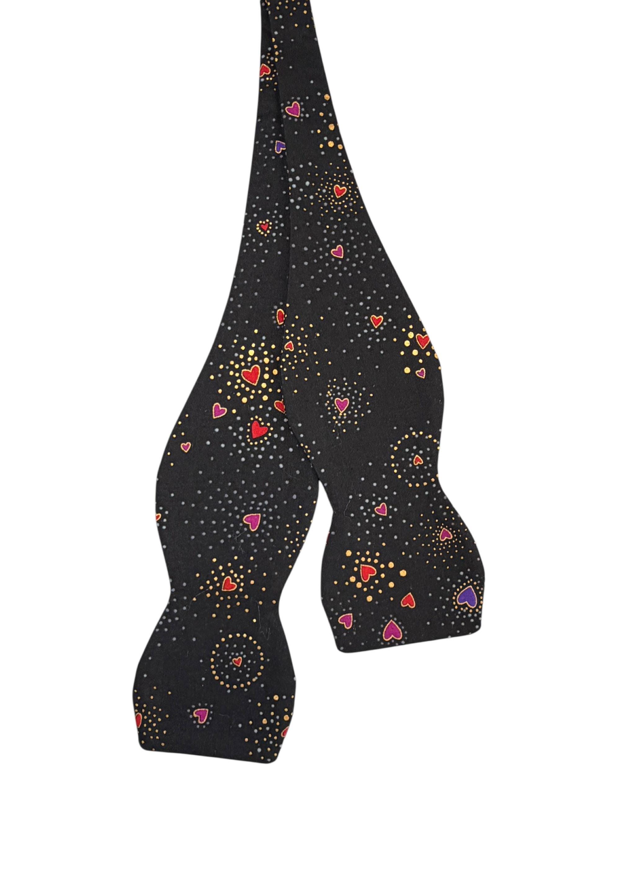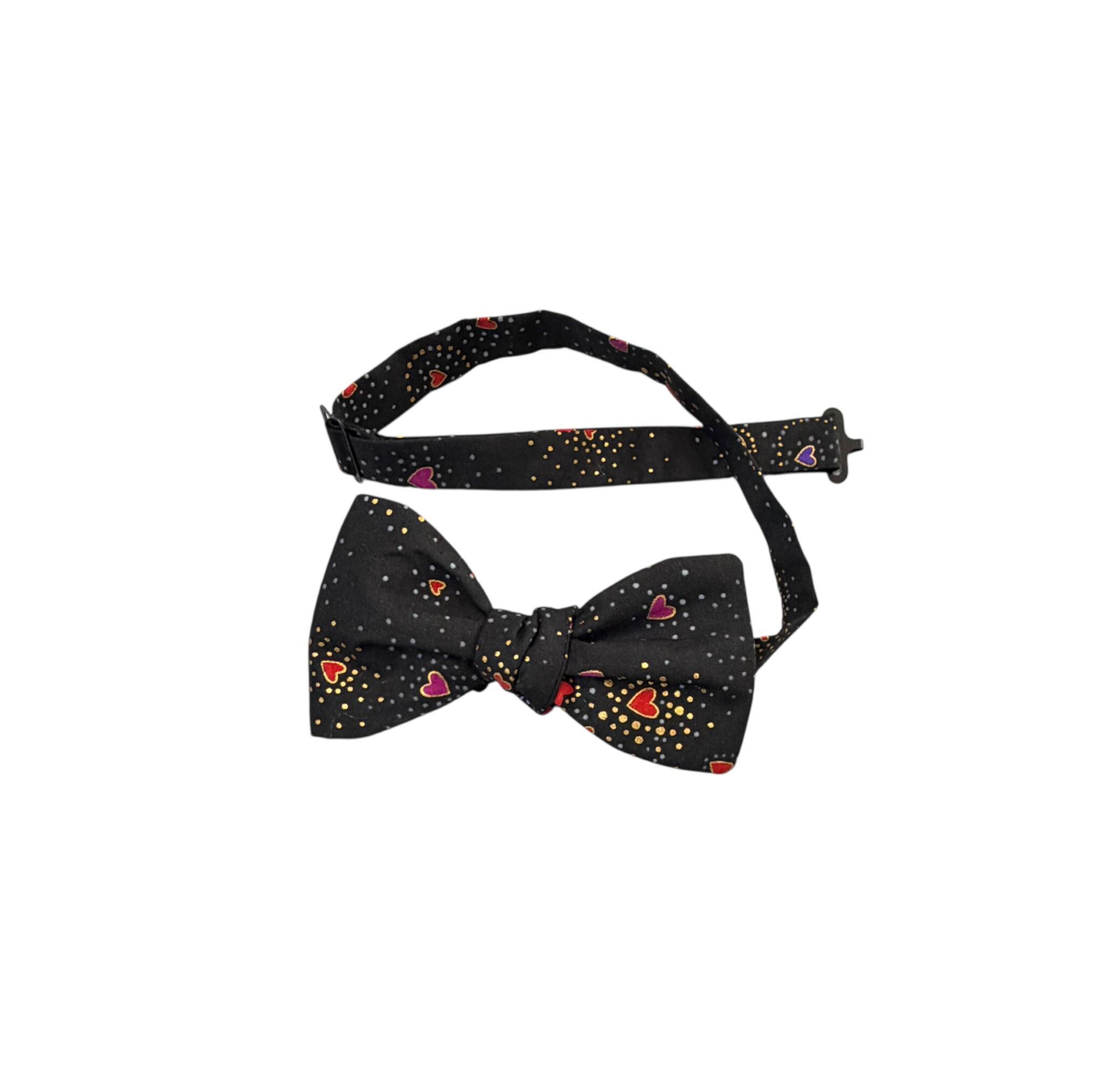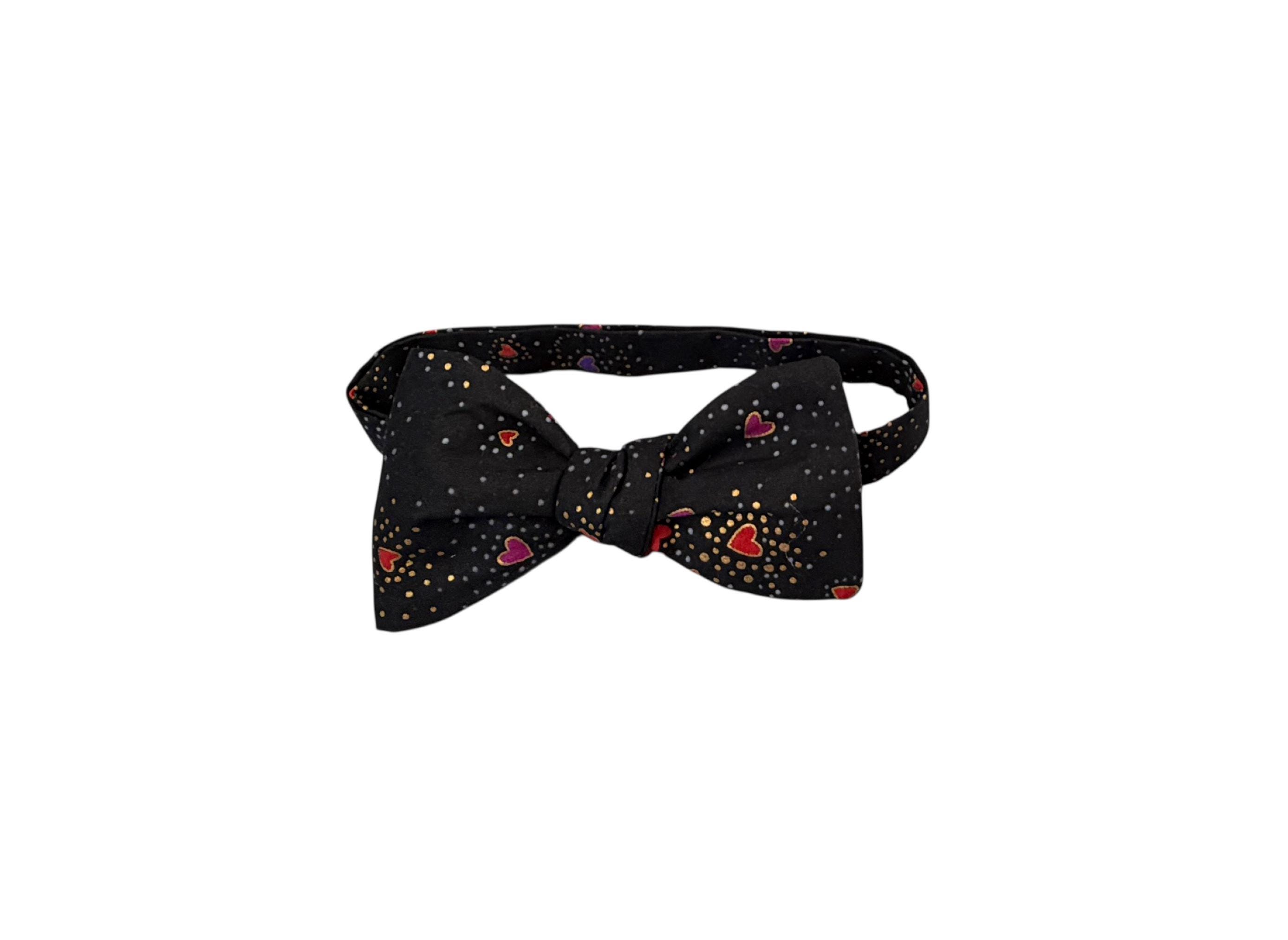 Self-tie or Pretied Bow Tie - Valentine Sweetheart Tiny Hearts with Gold Metallic Design -Prom Night - Premium Cotton - Adult Men's Sizing - Handcrafted in the USA - The "Orion"