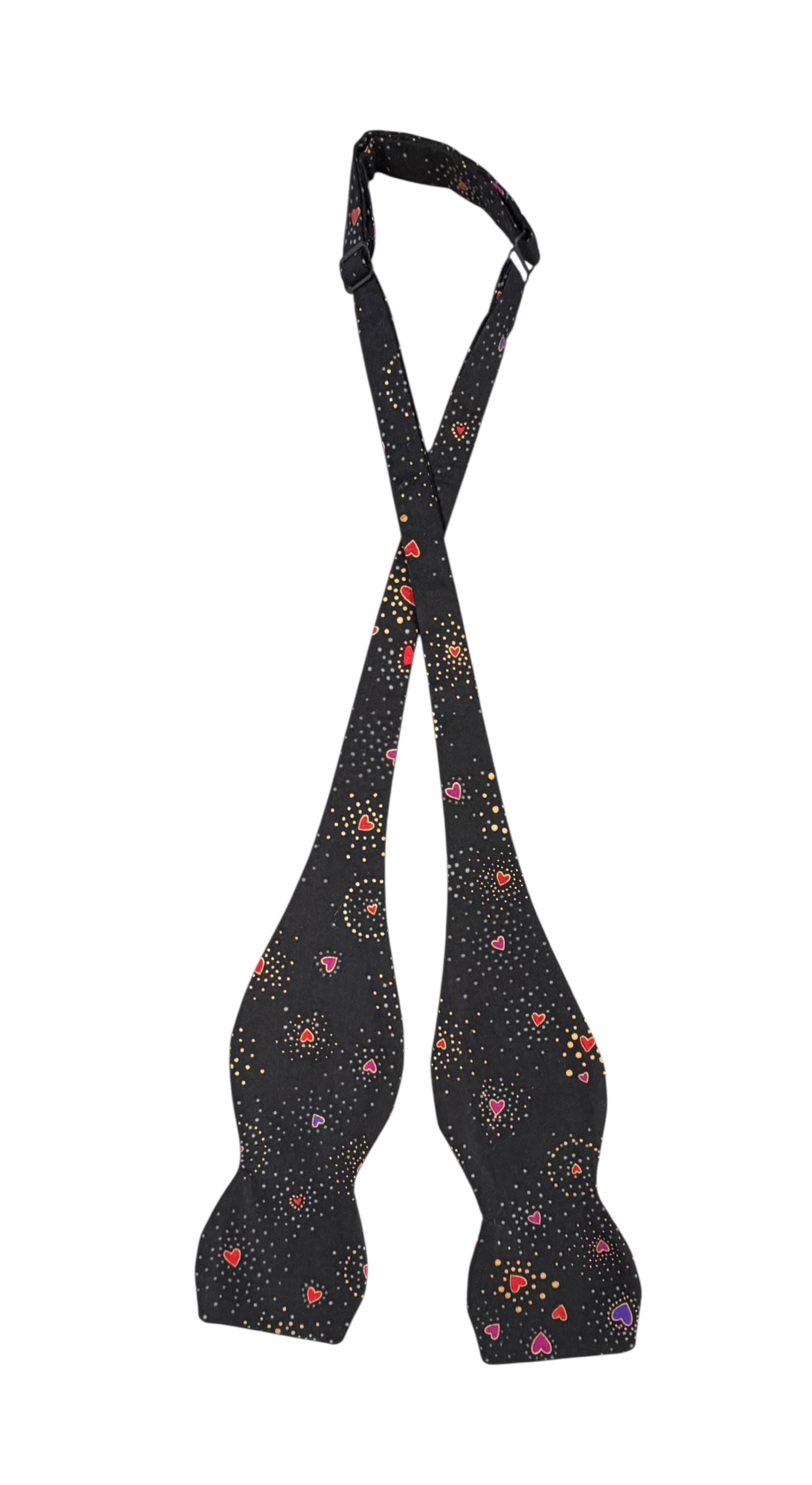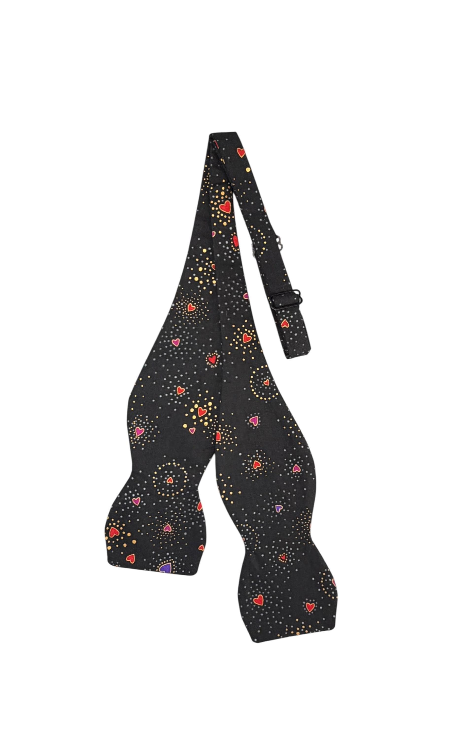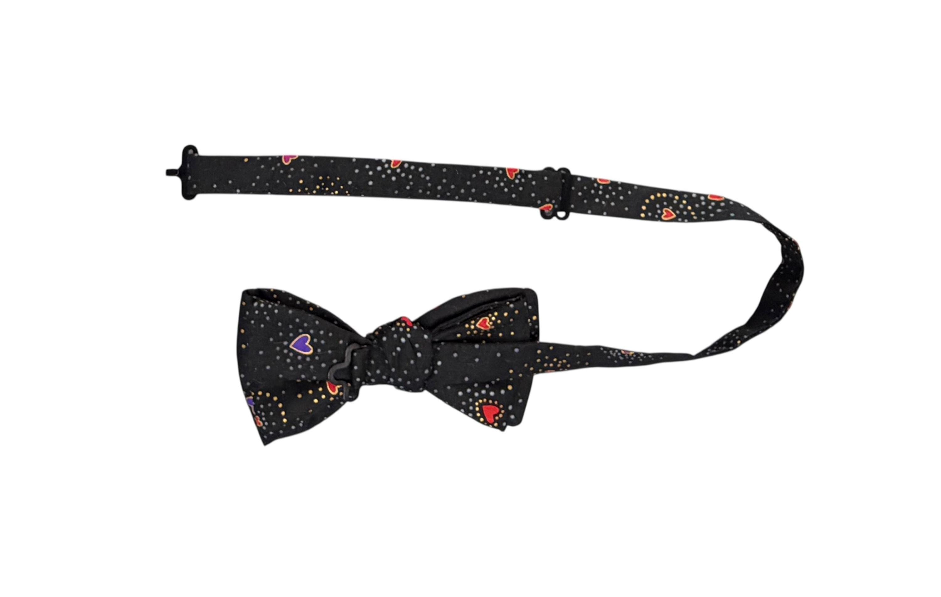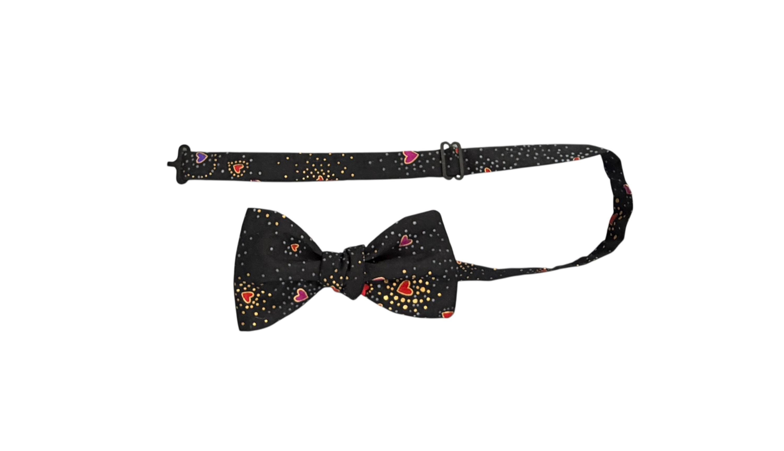 Self-tie or Pretied Bow Tie - Valentine Sweetheart Tiny Hearts with Gold Metallic Design -Prom Night - Premium Cotton - Adult Men's Sizing - Handcrafted in the USA - The "Orion"