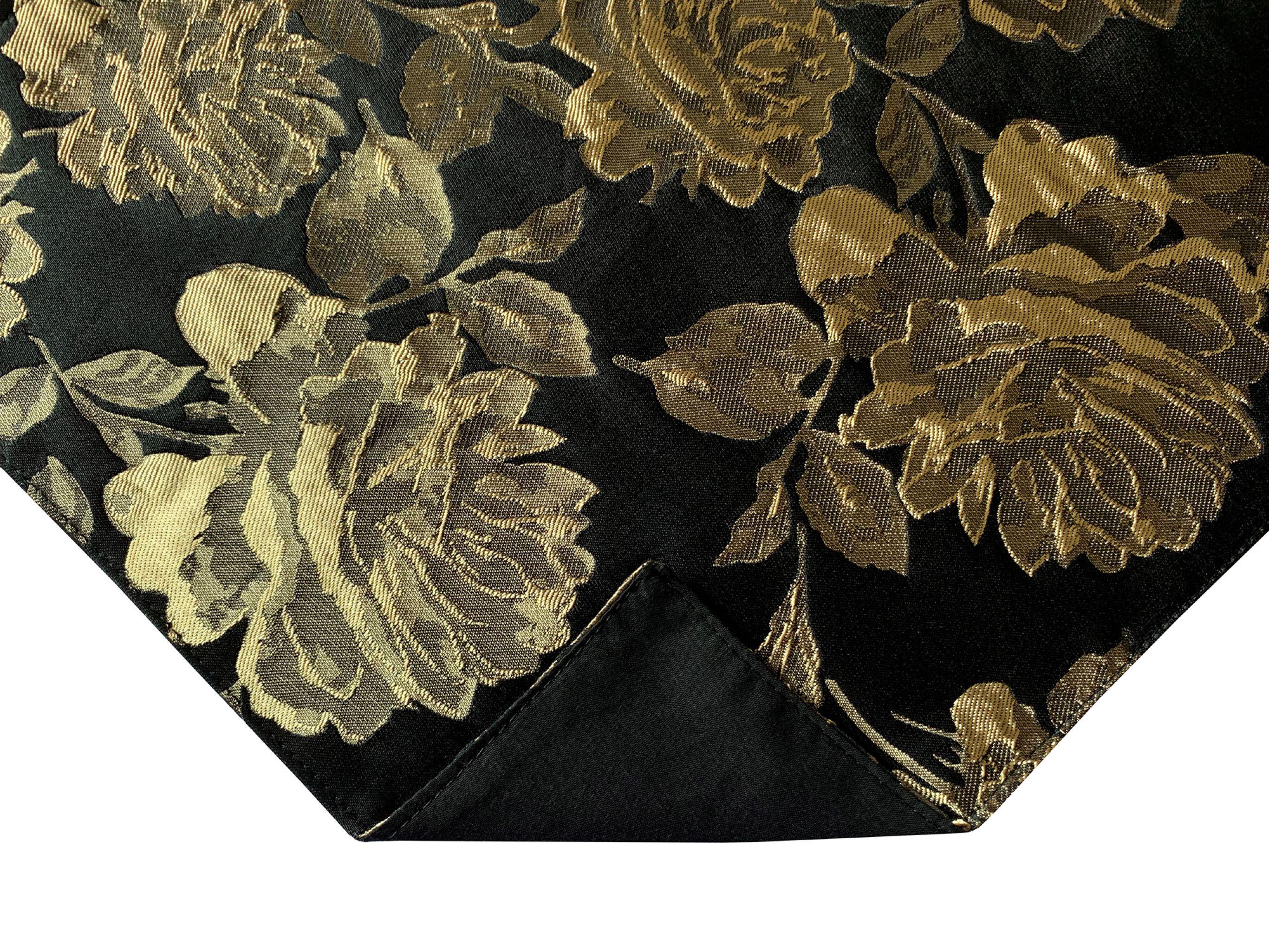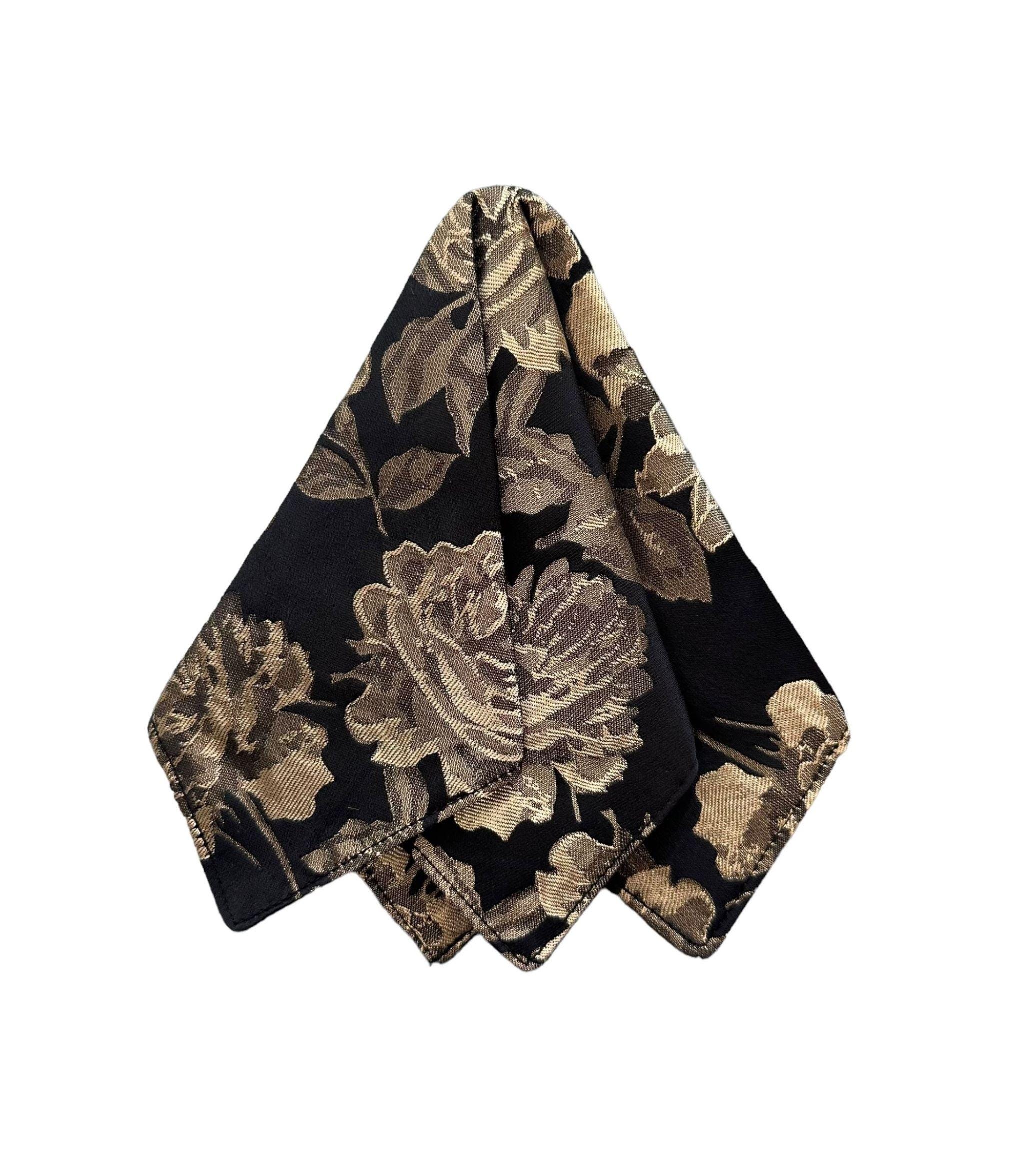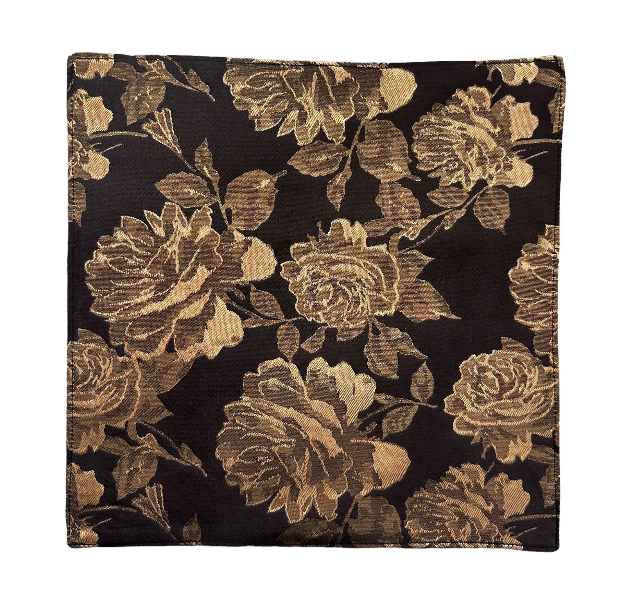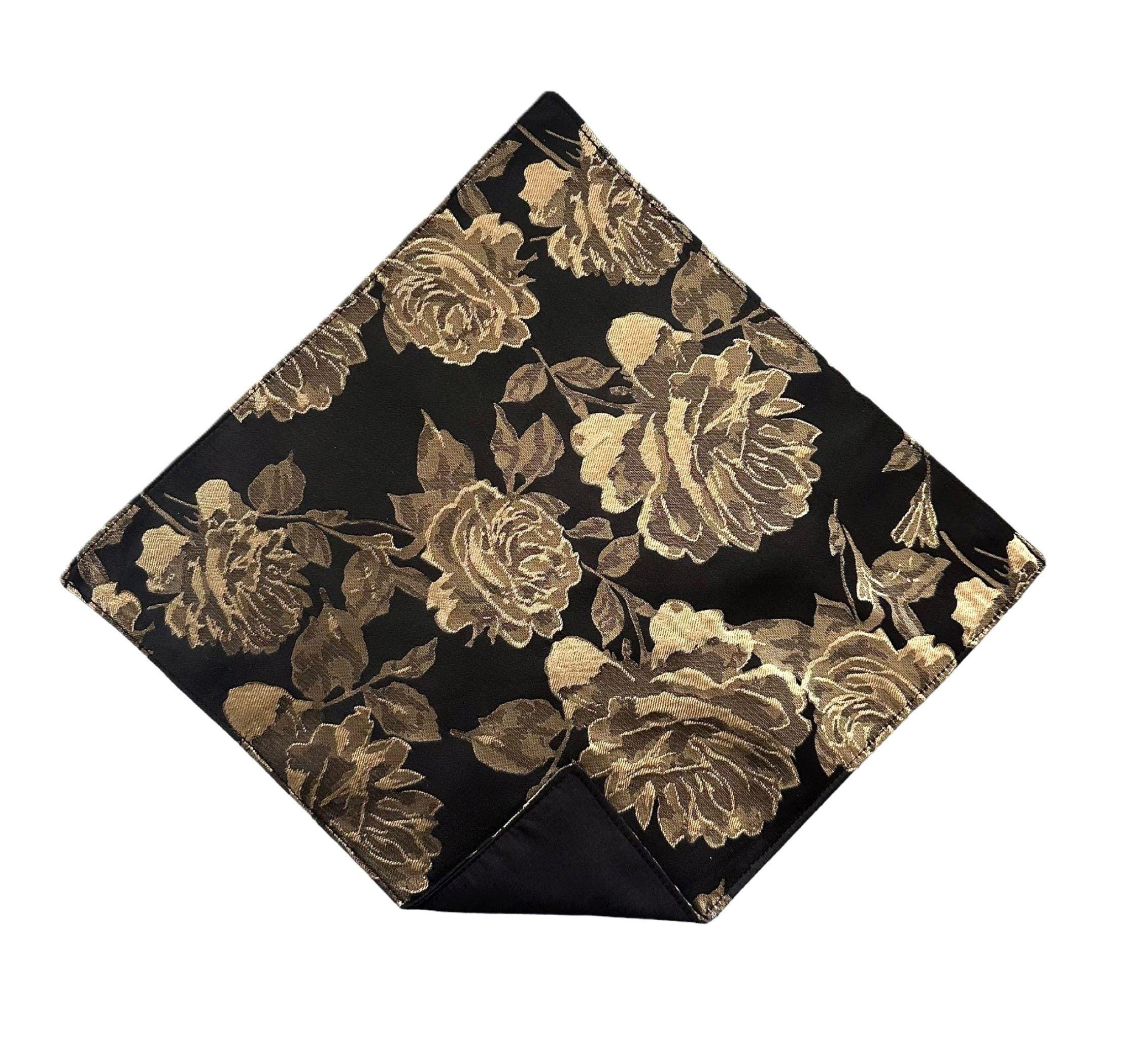 Wedding Pocket Square - Black with Gold Floral Roses - Satin Jacquard Handkerchief - Adult Men's - Handcrafted in the USA by Holiday Bow Ties, LLC - The "Albert"
