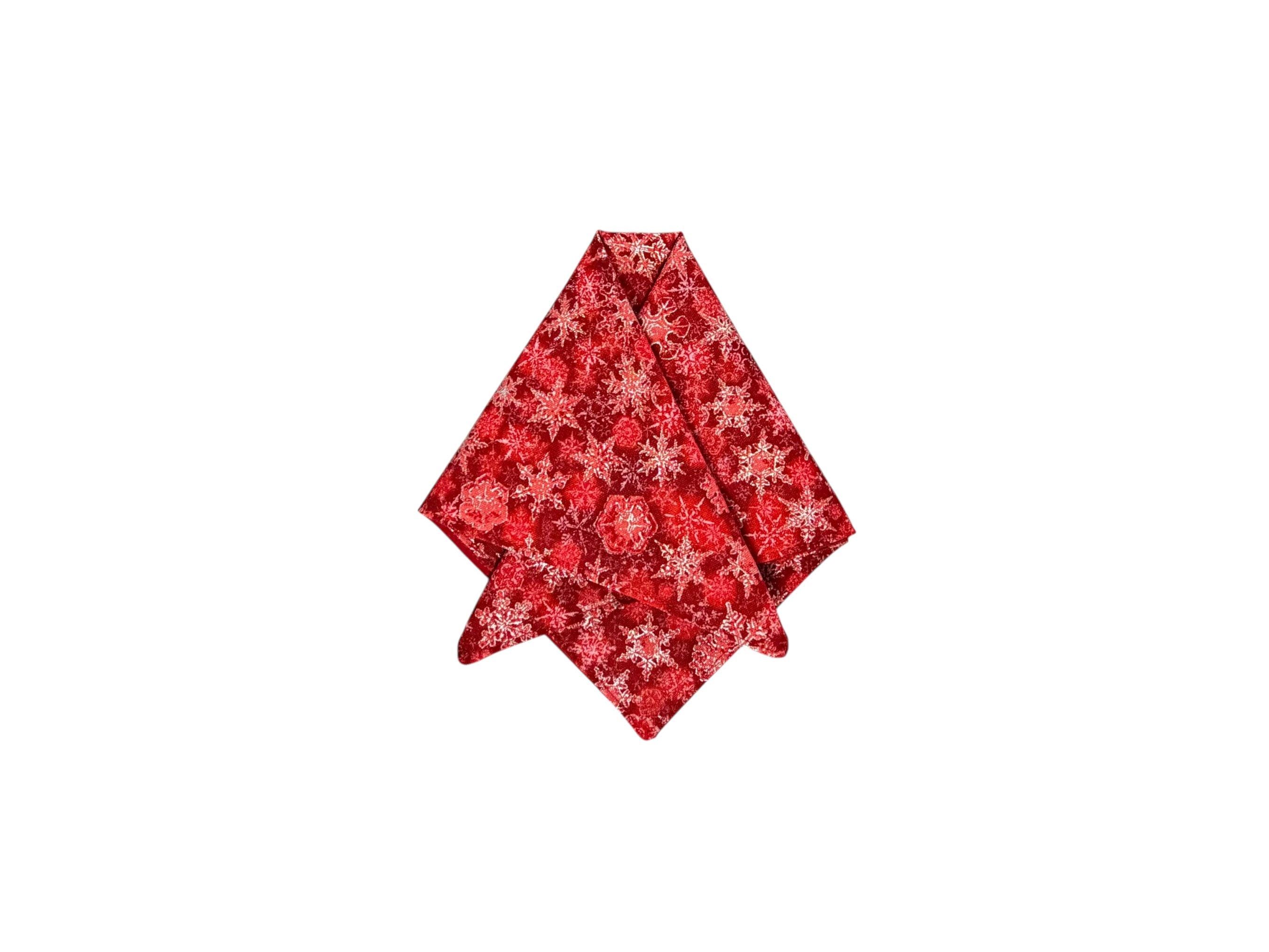 Holiday Pocket Square - Christmas Red Snowflakes Design Accented with Silver Metallic - Cotton Handkerchief - Adult Men's Sizing - Handcrafted in the USA by Holiday Bow Ties, LLC - The "Whittaker"