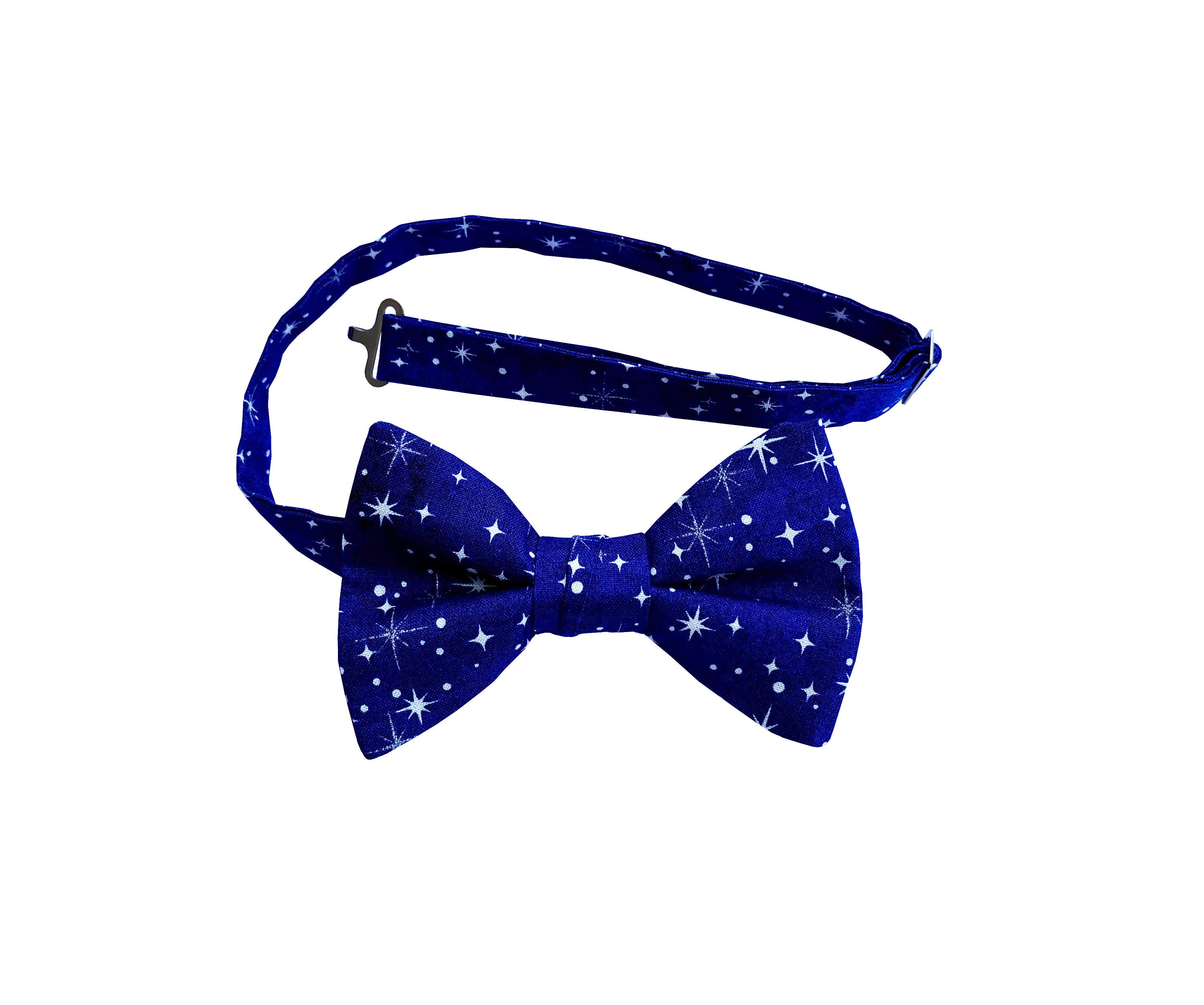 Handmade Pre-tied Bow Tie - Midnight Blue Starry Sky Holiday Design Premium Cotton - Adult Men's Sizing - Crafted in the USA by Holiday Bow Ties, LLC - The "Yule" Bow Tie